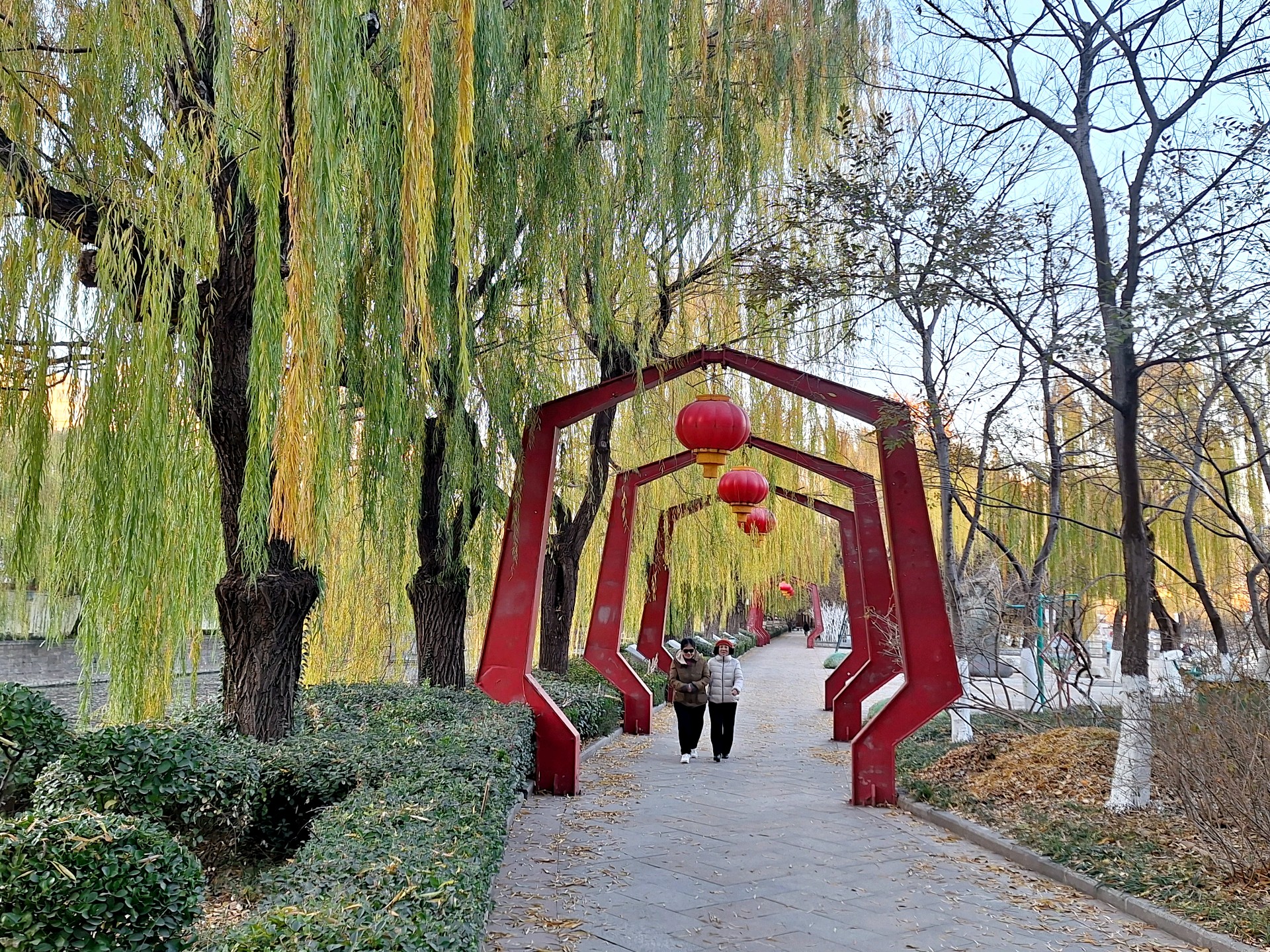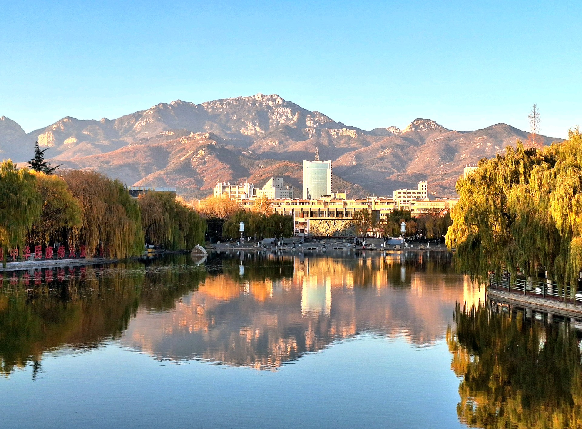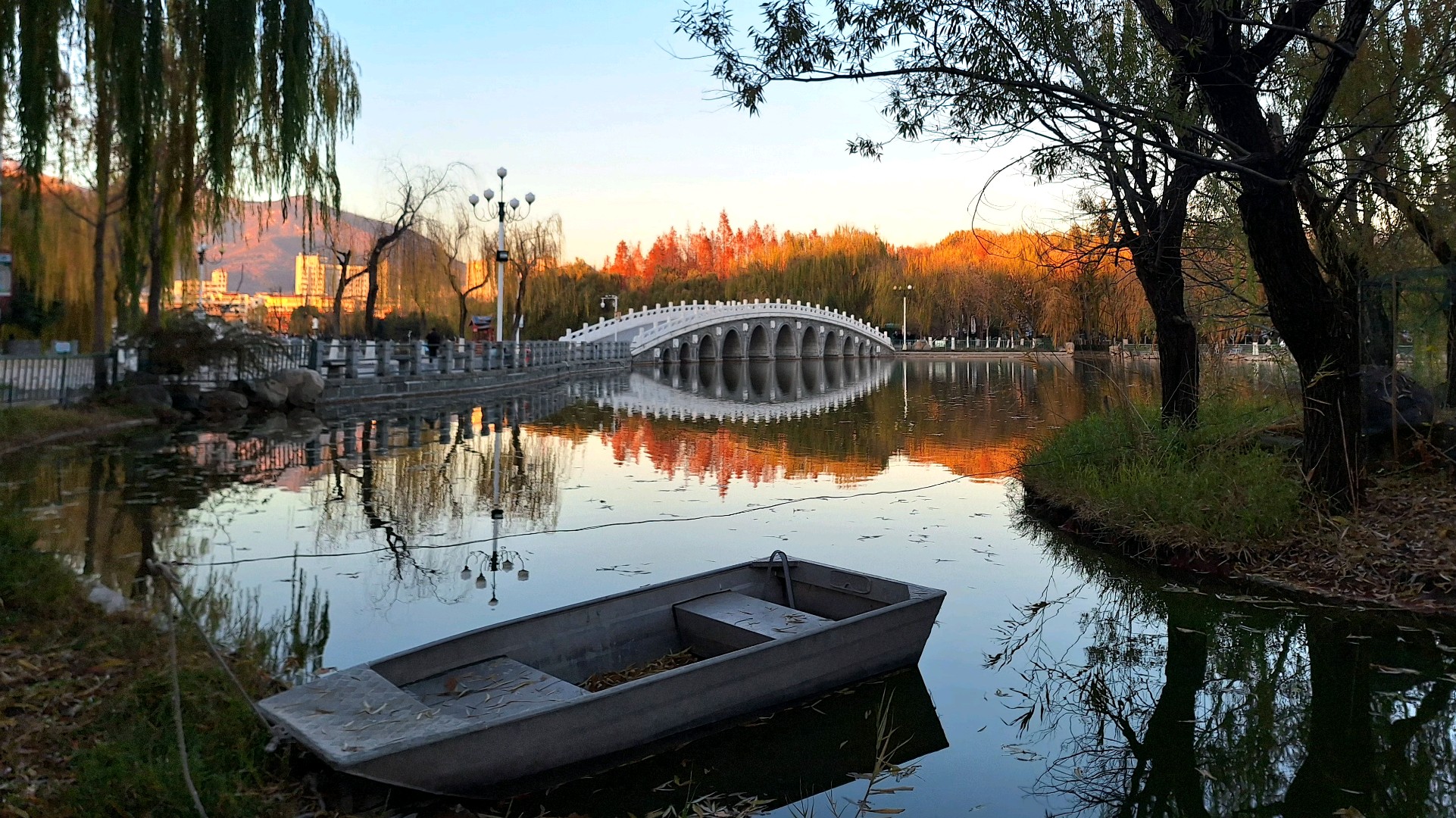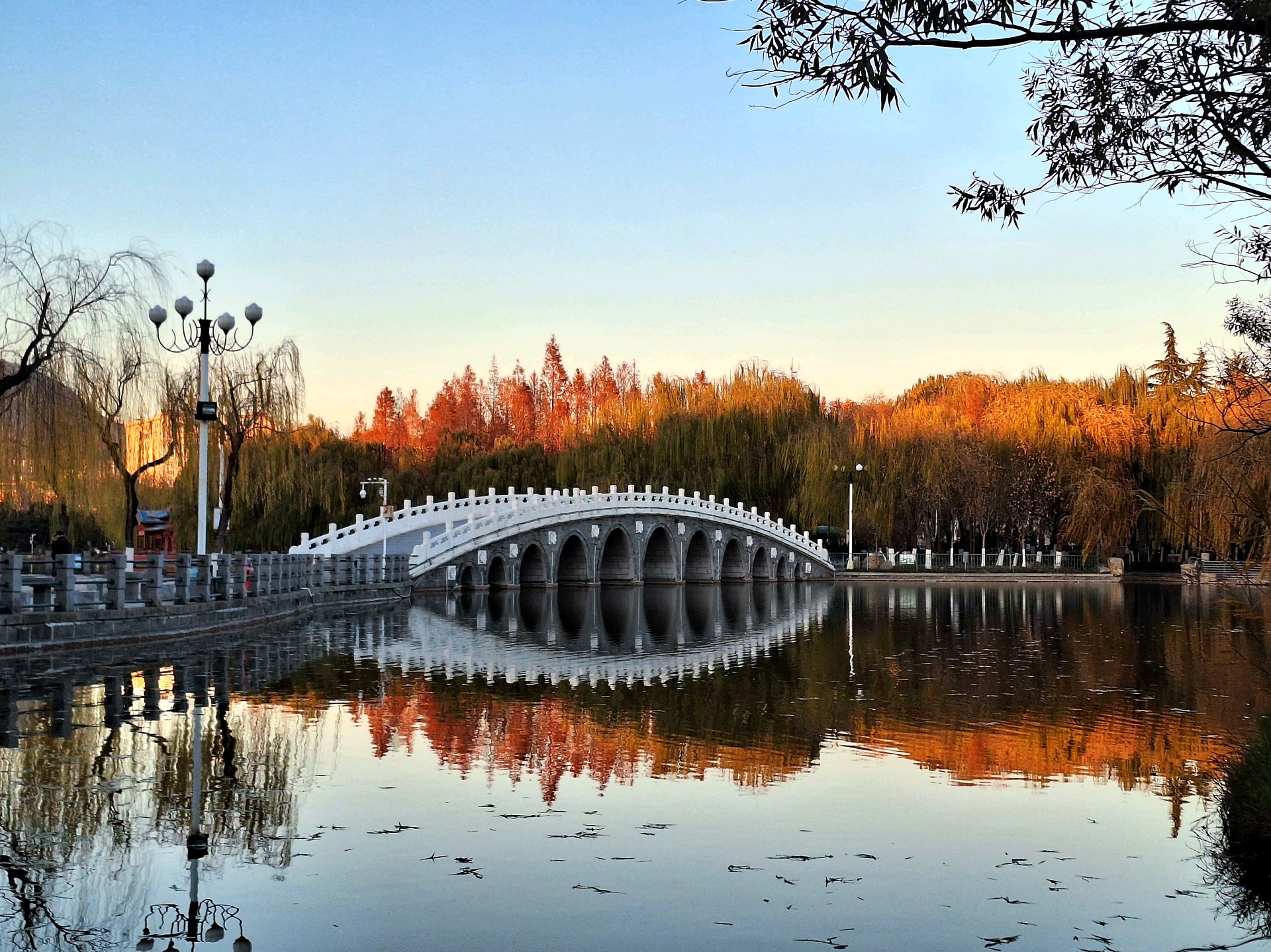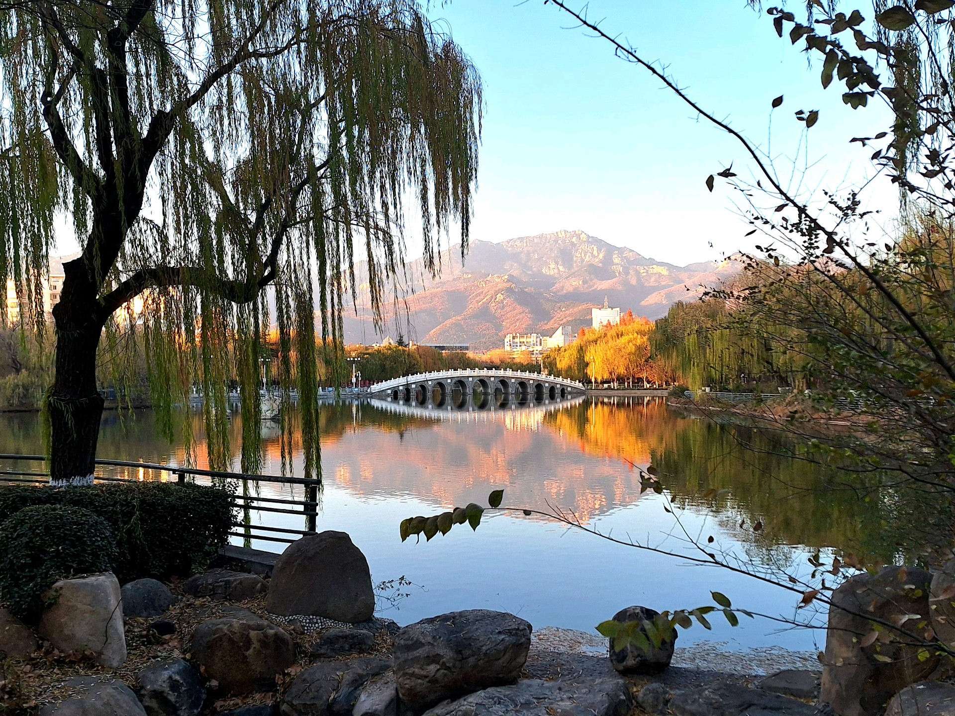 泰安:半湖彩影半湖冬,金柳丹枫映碧空