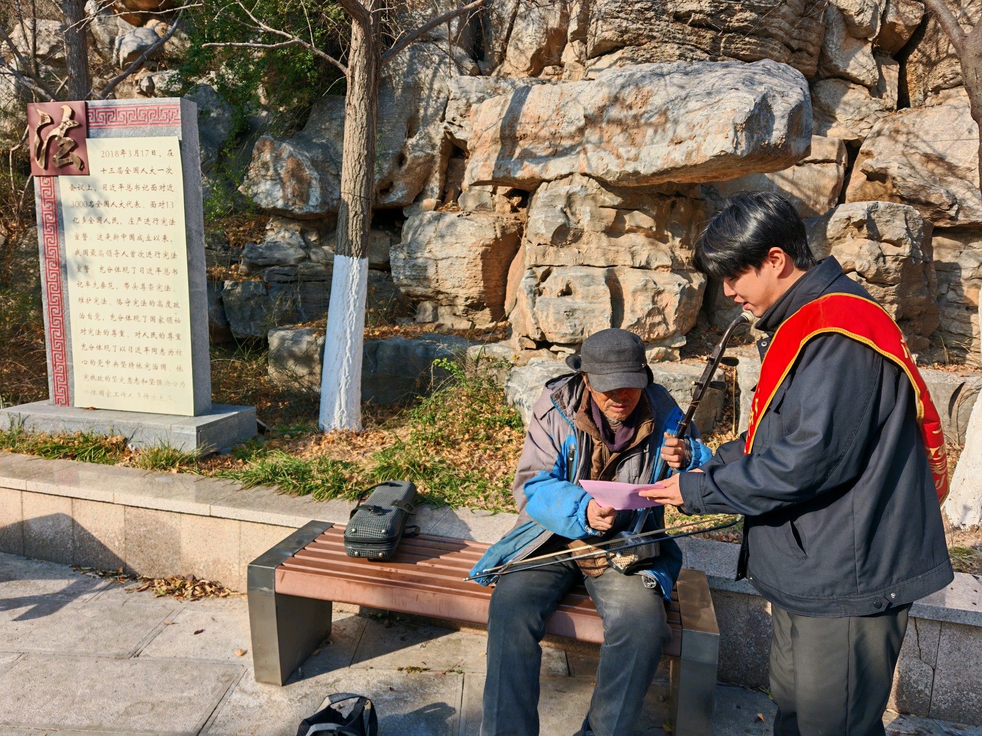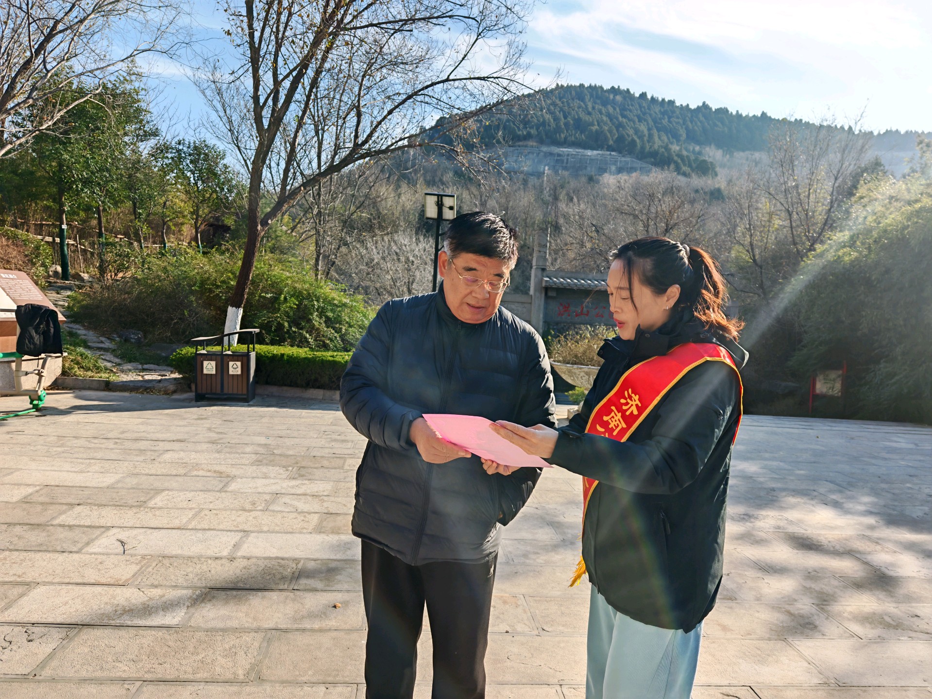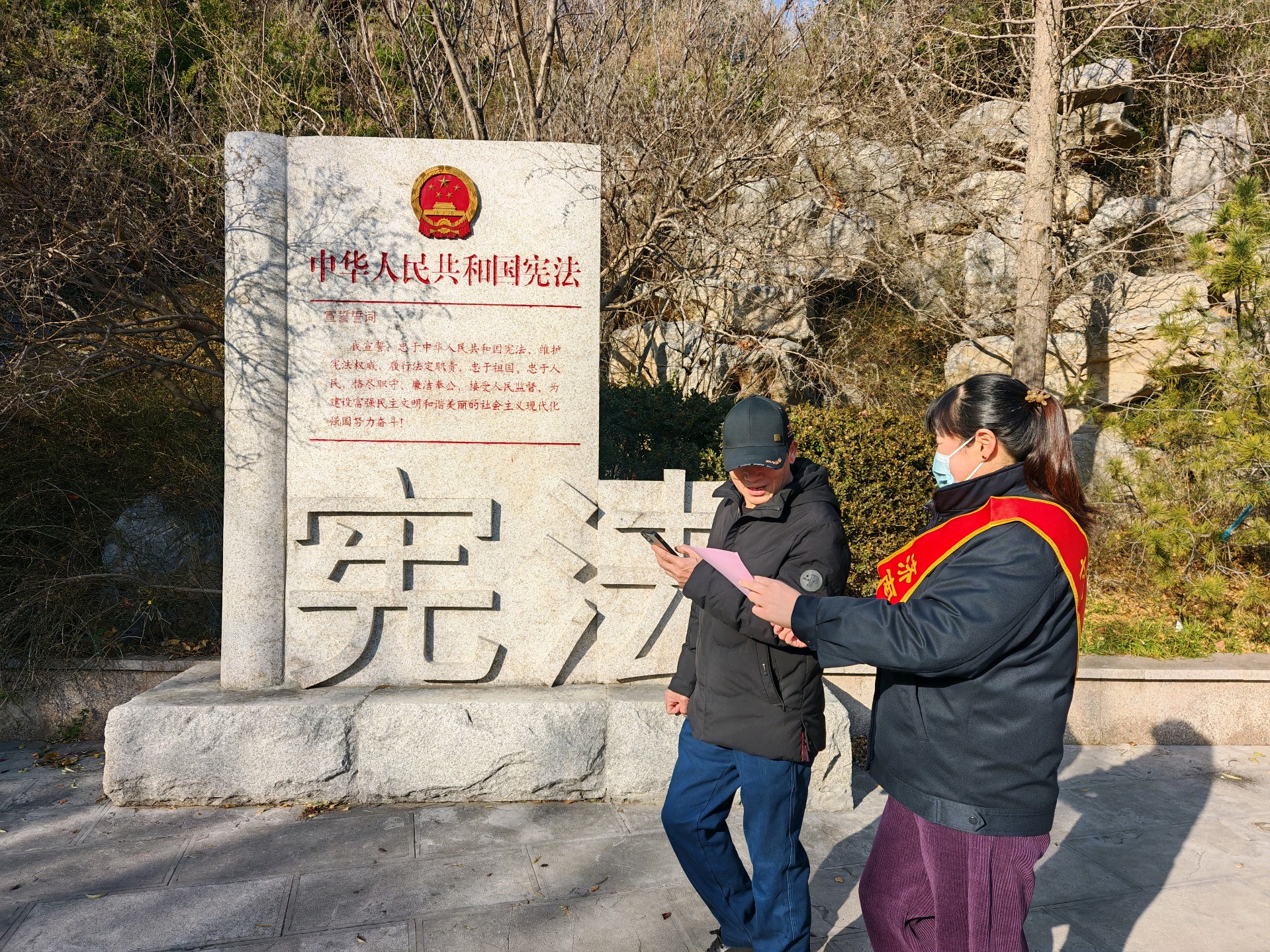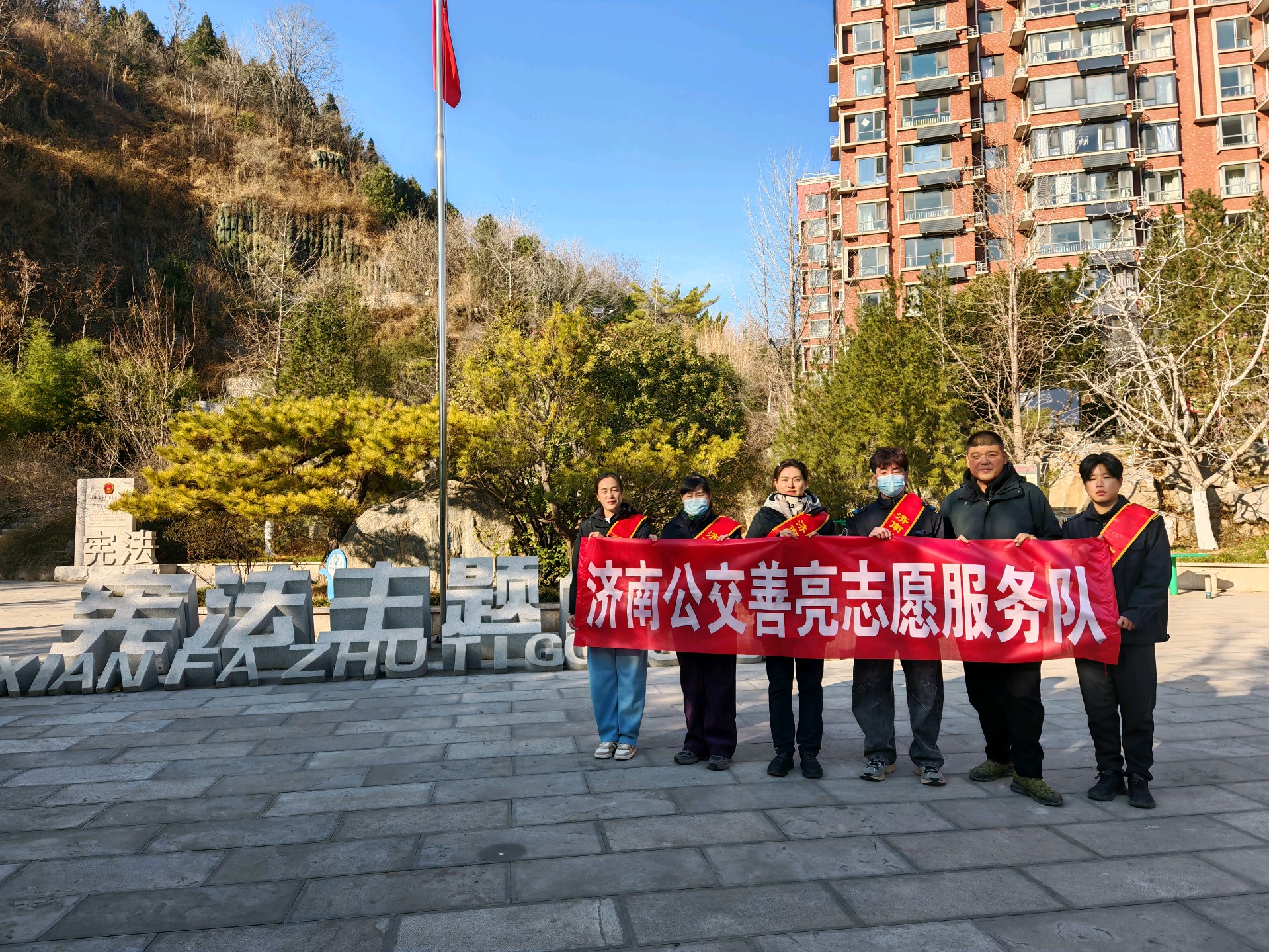 在第12个国家宪法日来临之际,济南公交善亮志愿服务队走进宪法主题公园,开展普法志愿服务活动,以实际行动弘扬宪法精神。