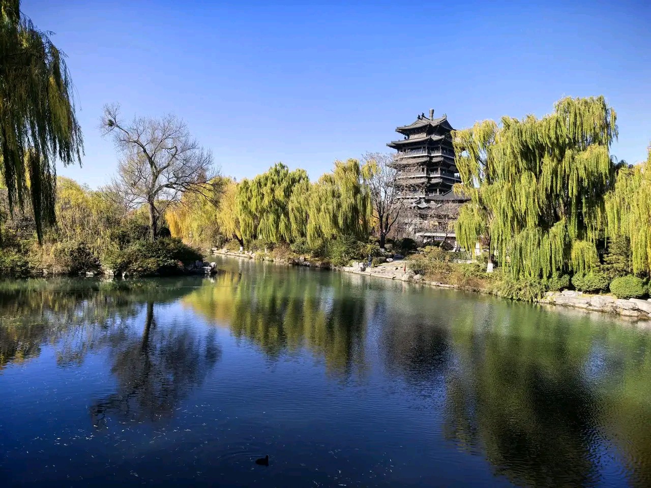 济南的秋冬季,泉水绕城清澈明亮杨柳依依,风景秀美魅力无限。