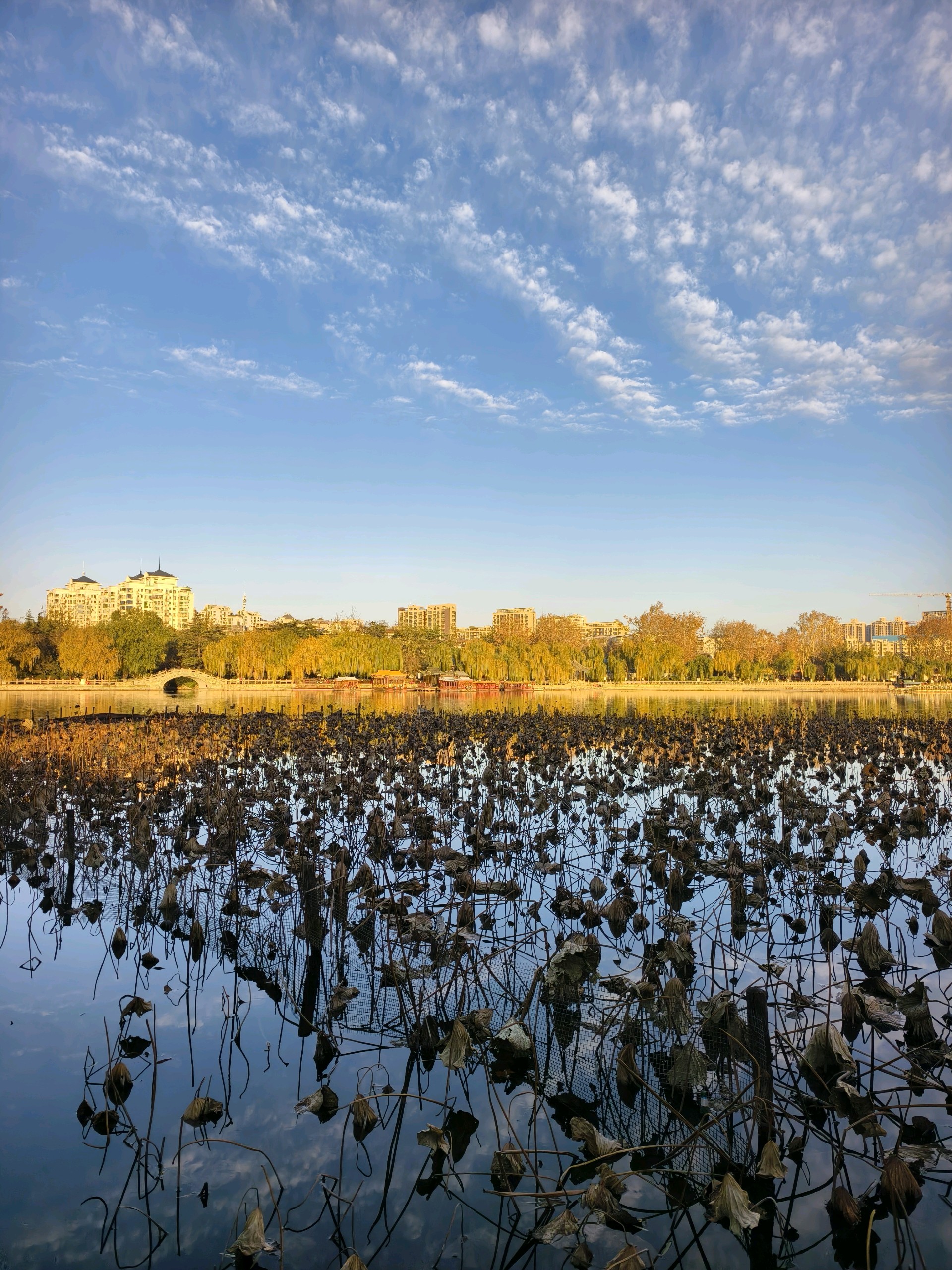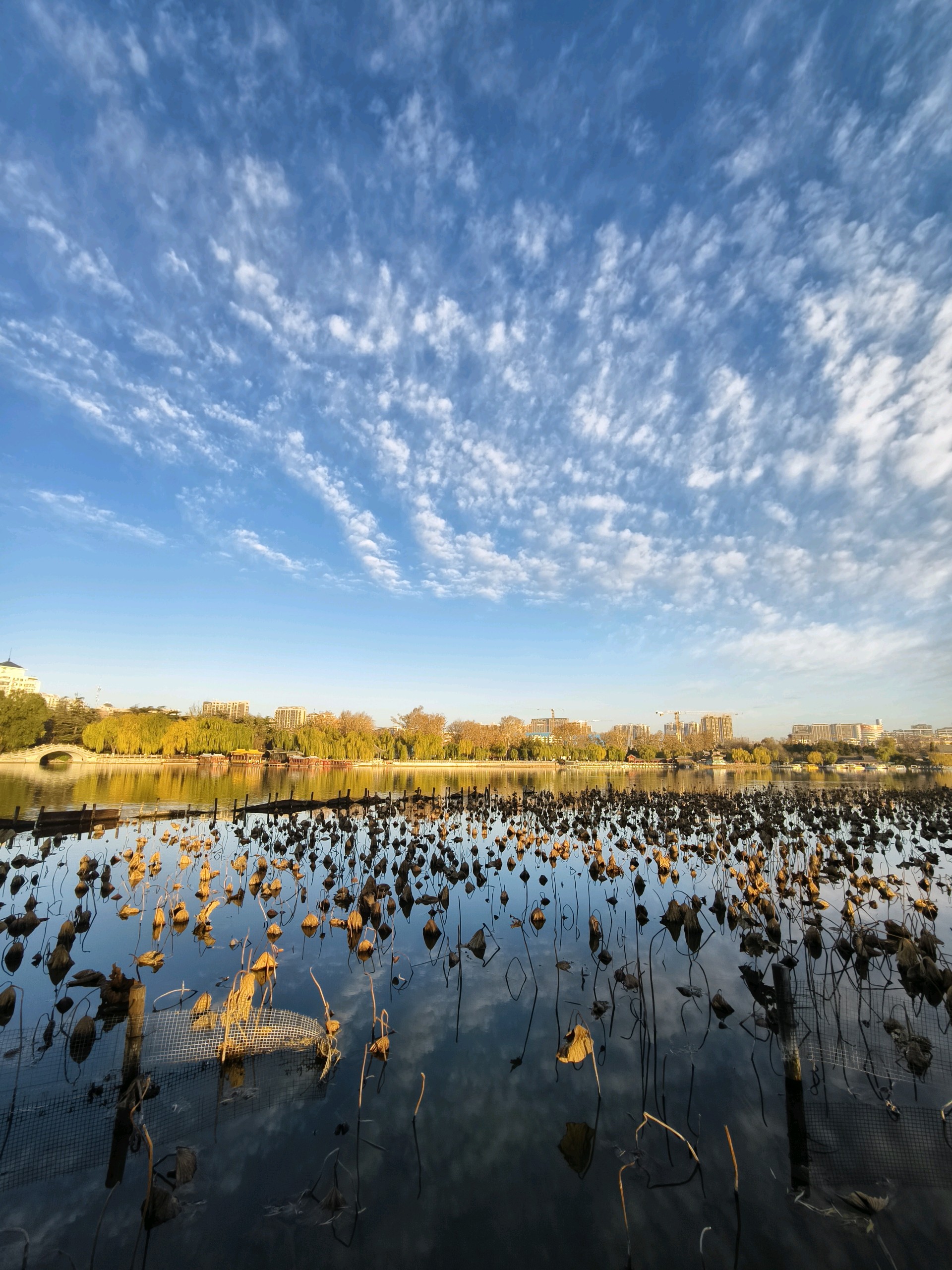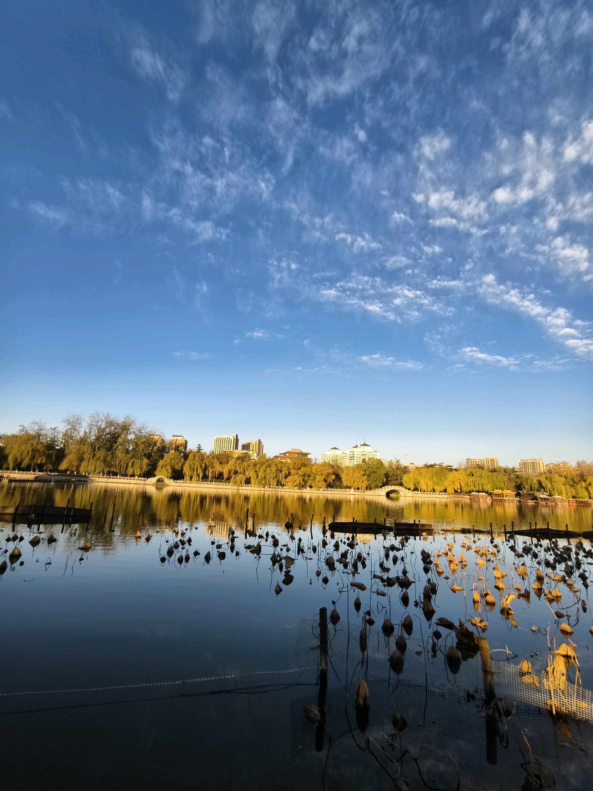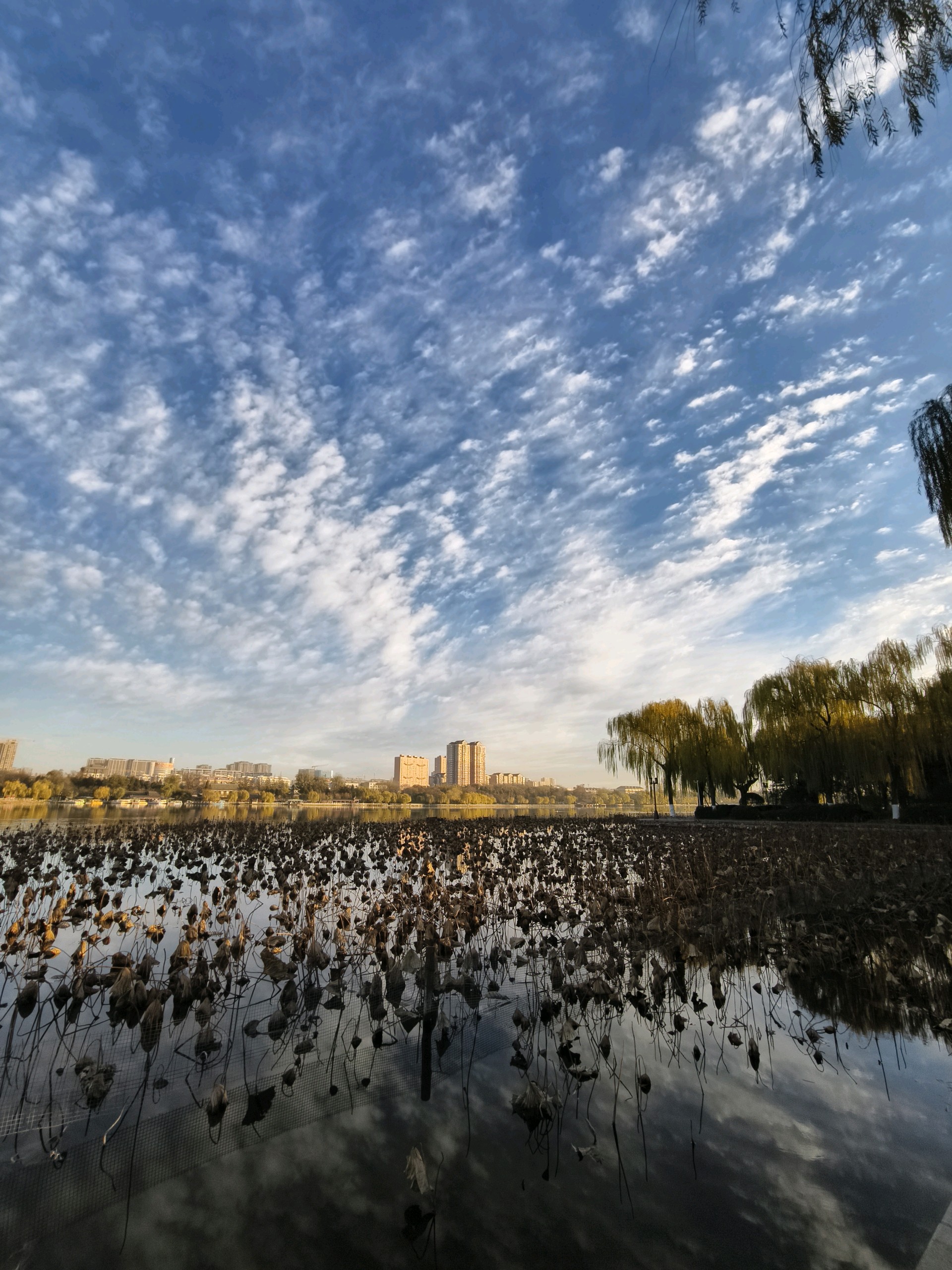 冬日暖阳好天气,今天早上济南的天空美爆啦湛蓝的天空布满絮状的云朵,白云悠悠,仰望天空令人陶醉,高楼林立映入眼帘,美不胜收。