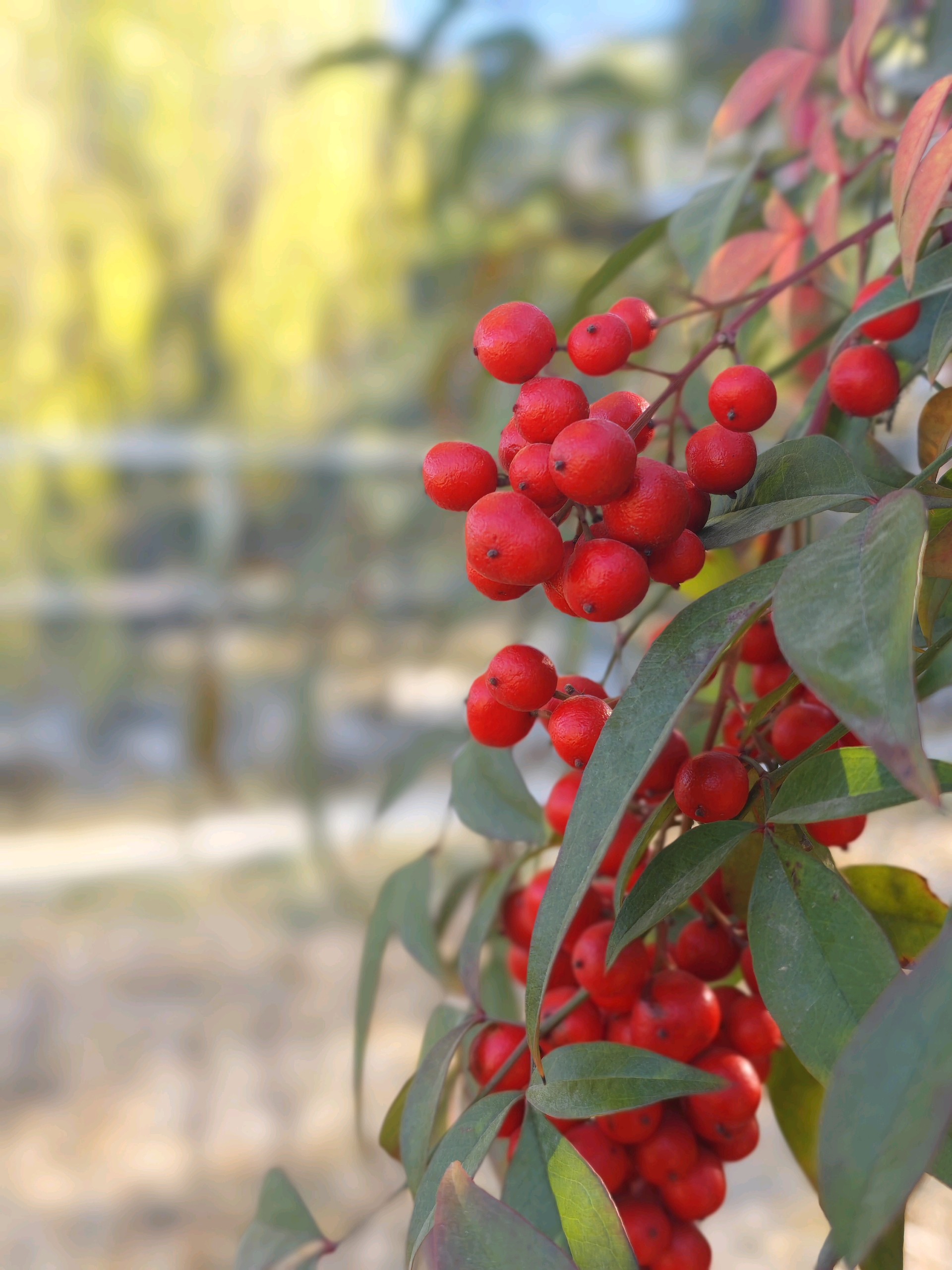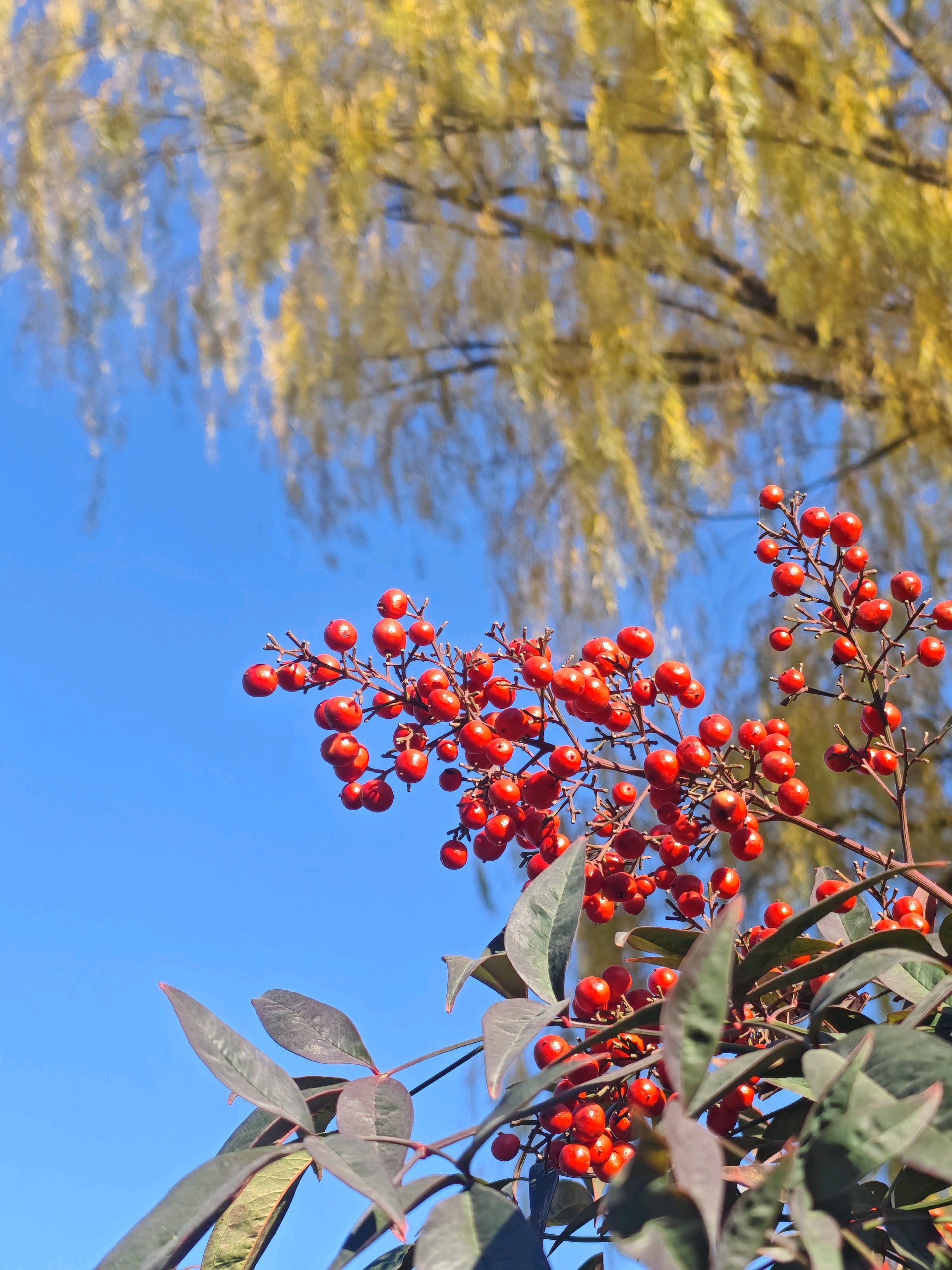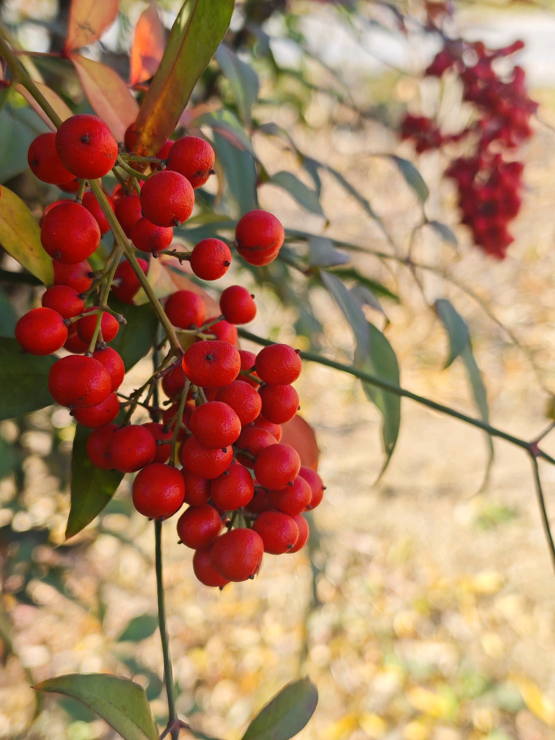 泉城公园里南天竹的红果,一串串的,颗颗似红色的玛瑙,好看极了,成为冬日里最热烈的一抹色彩。
