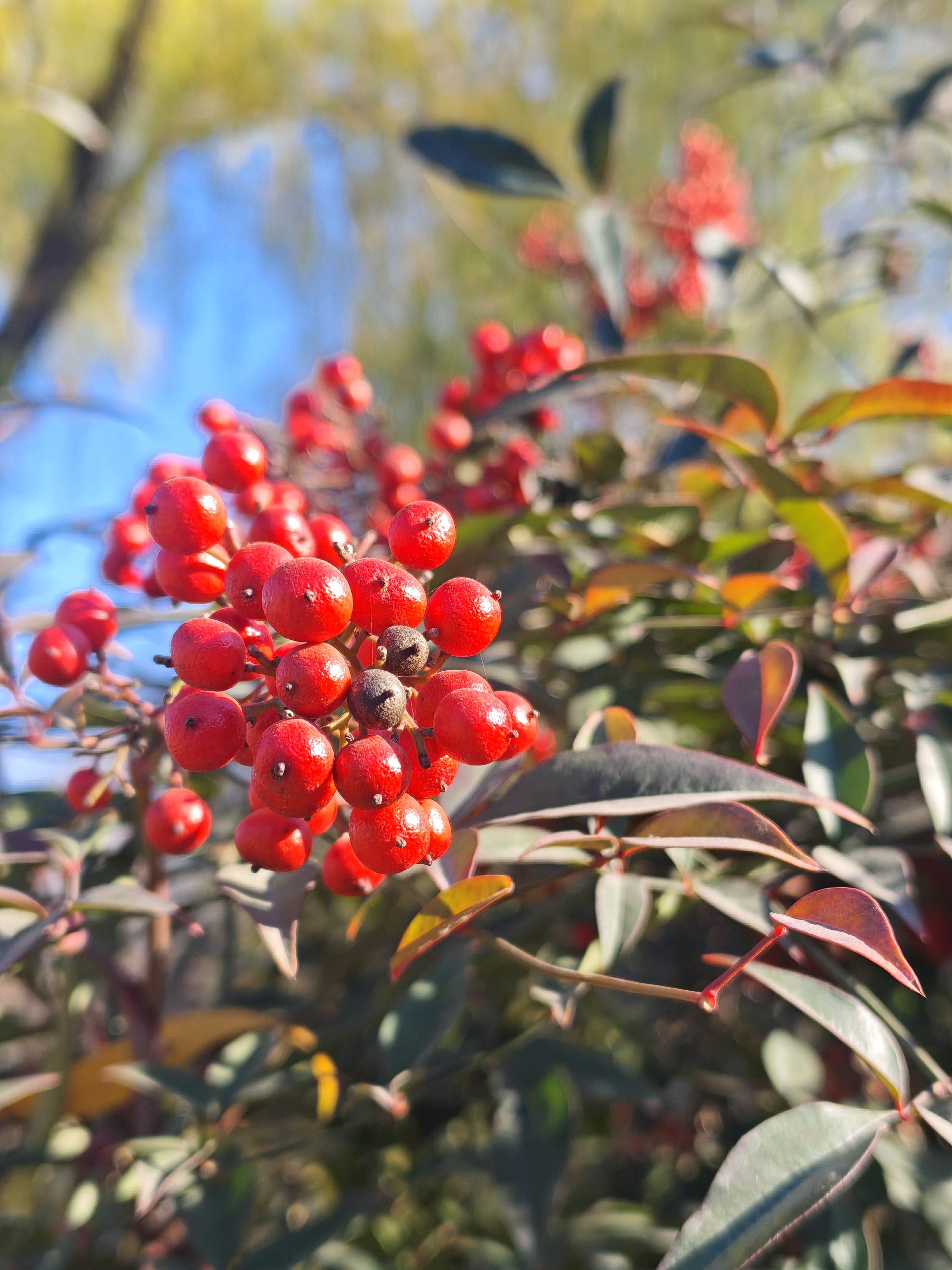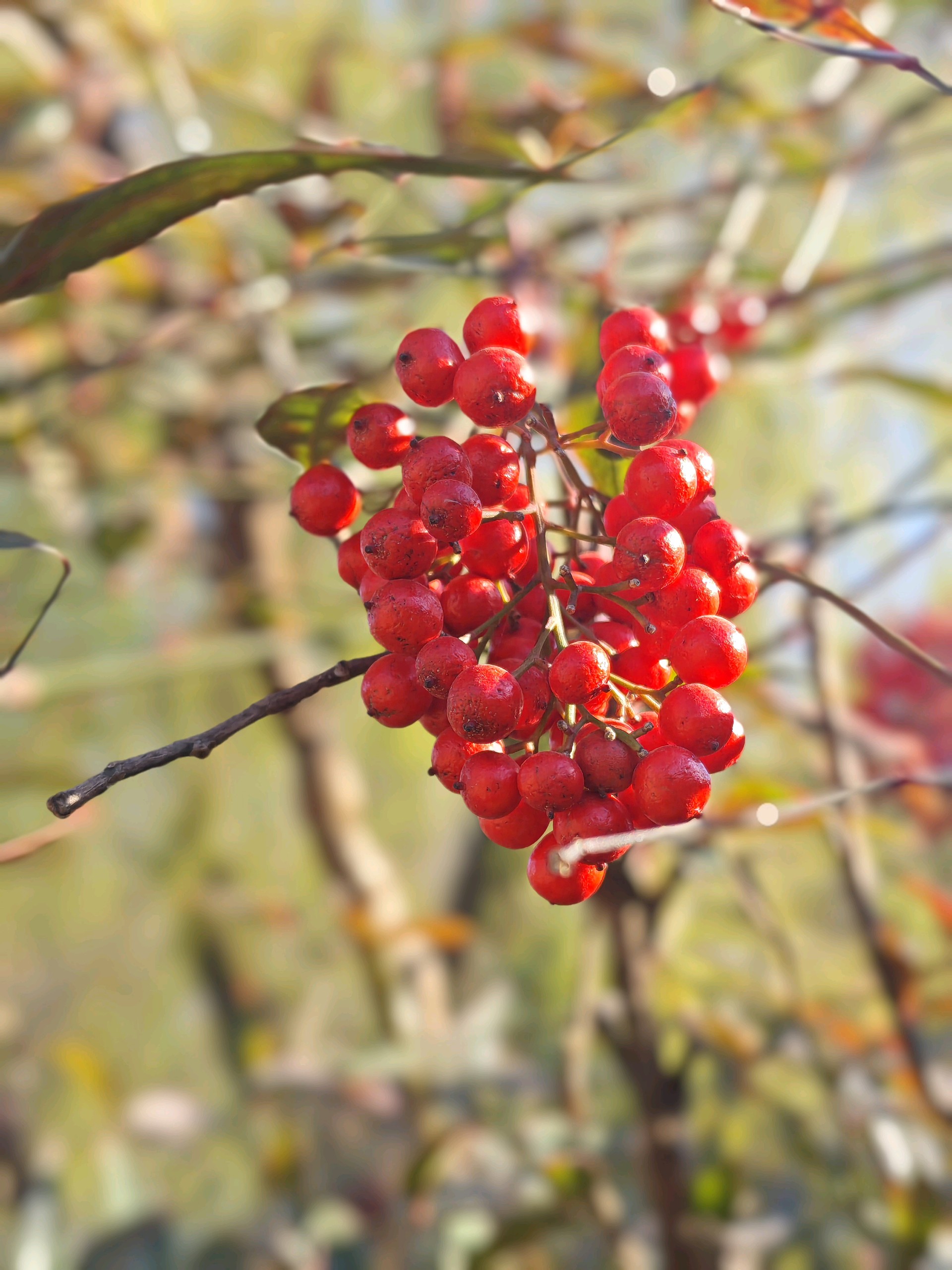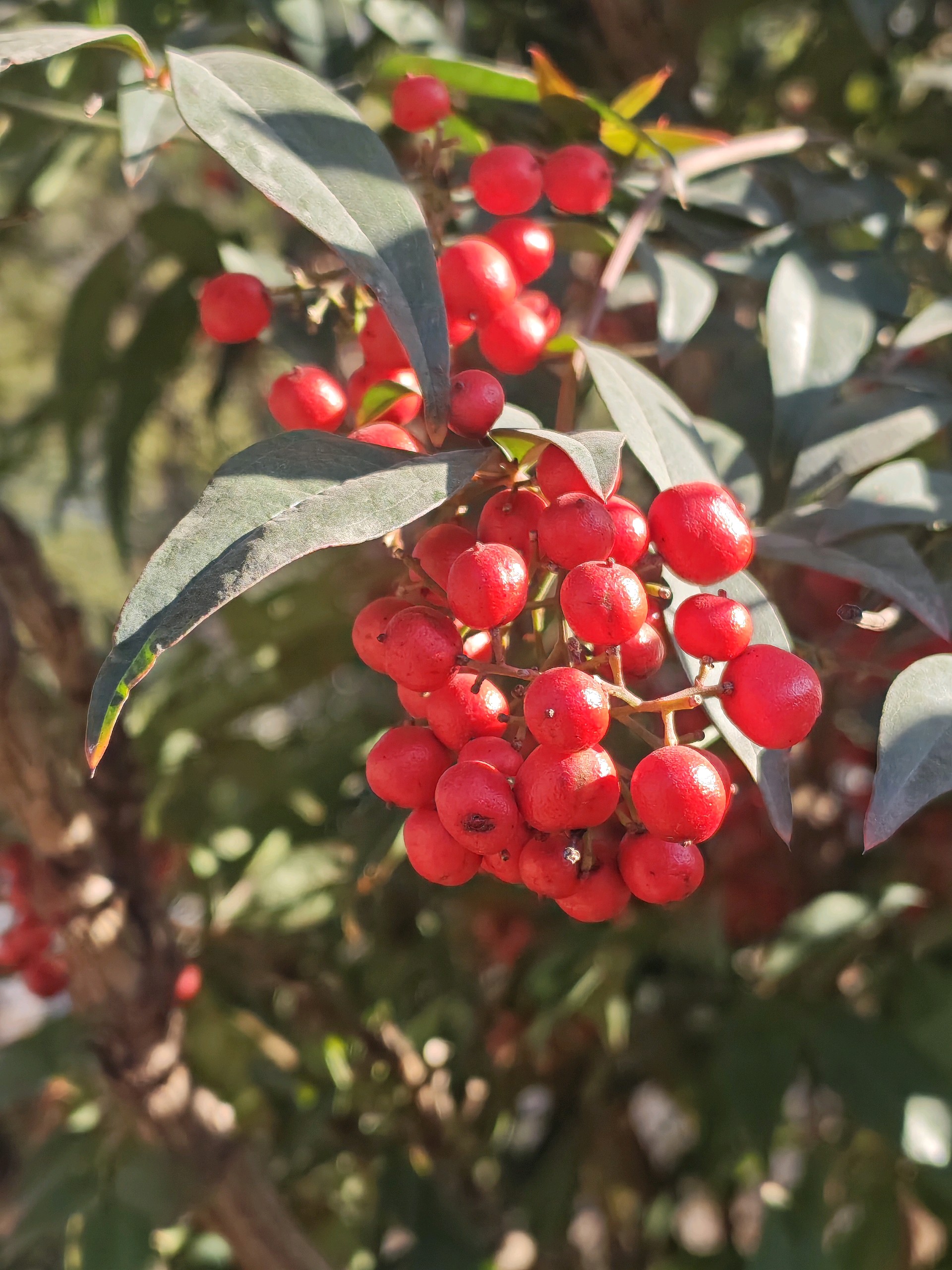 泉城公园里南天竹的红果,一串串的,颗颗似红色的玛瑙,好看极了,成为冬日里最热烈的一抹色彩。
