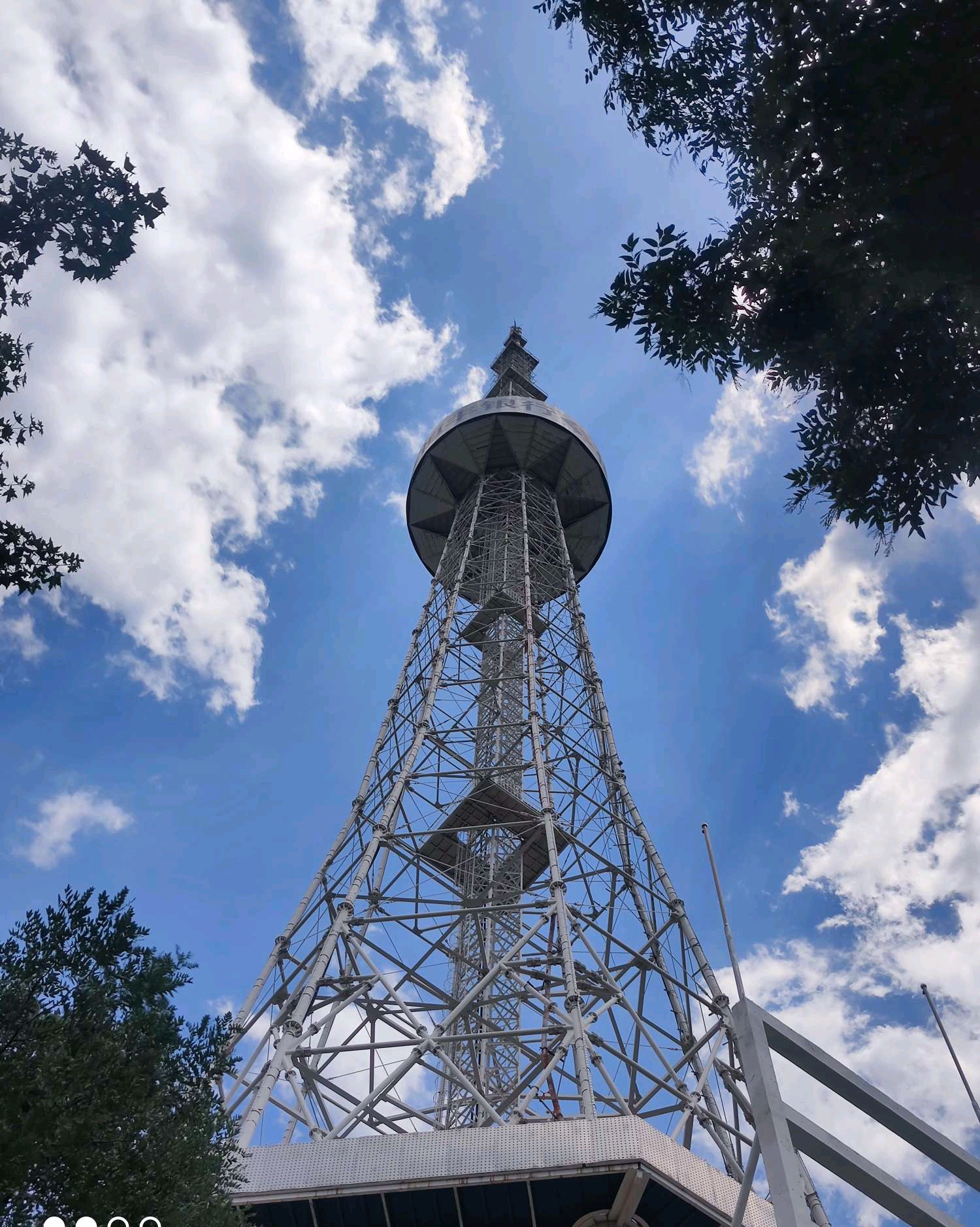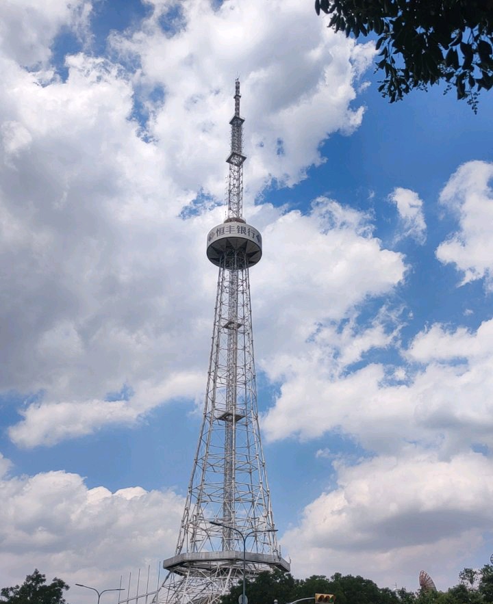 济南晴朗的天空,济南广播电台电视塔仿佛入云端。