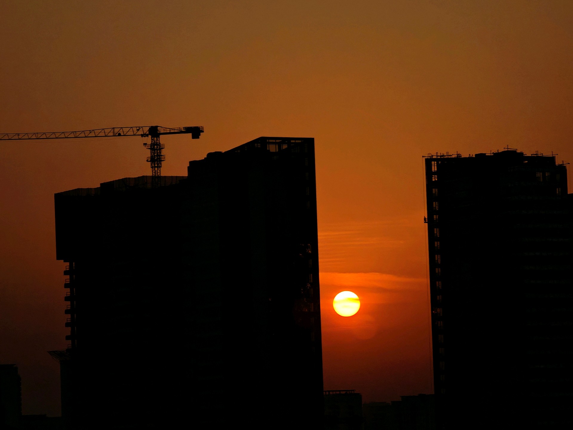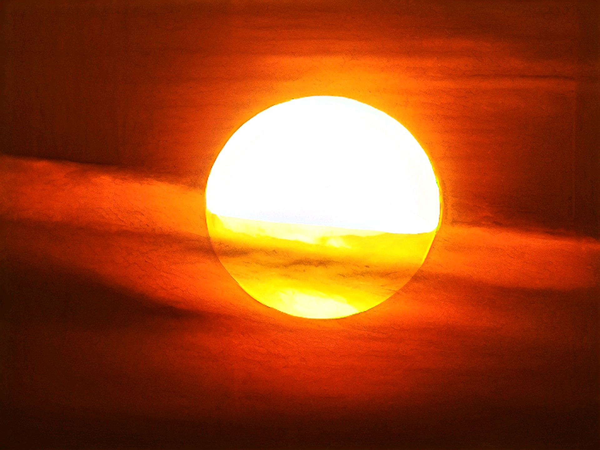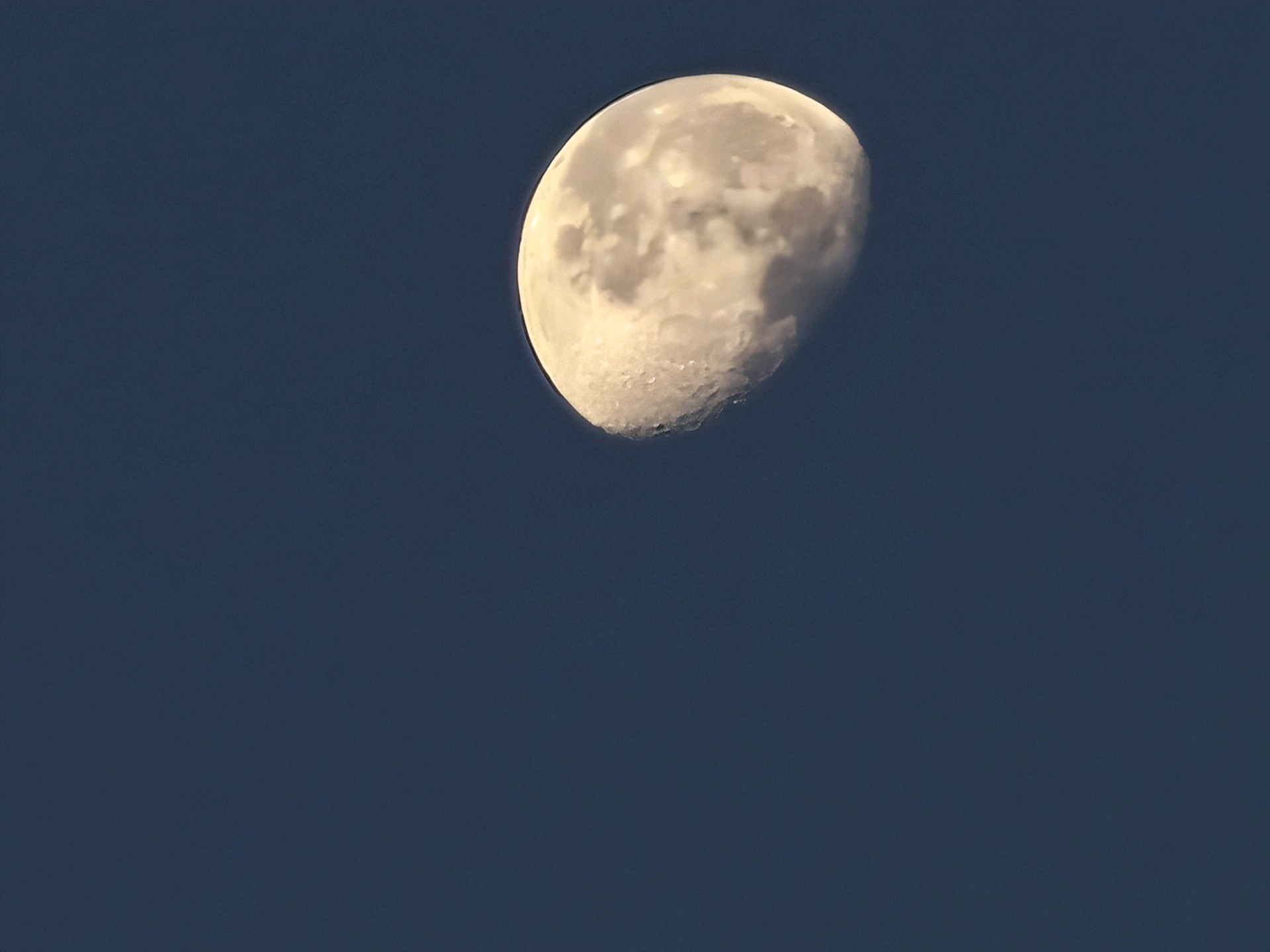 清晨,太阳从东方升起,西边的月亮未隐,日月遥对,相映成趣,静谧而又美好!