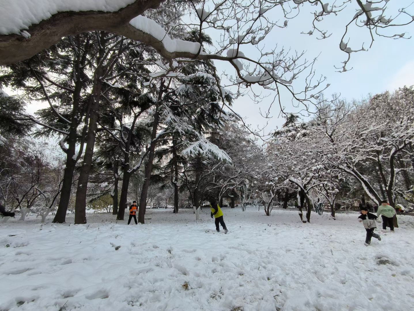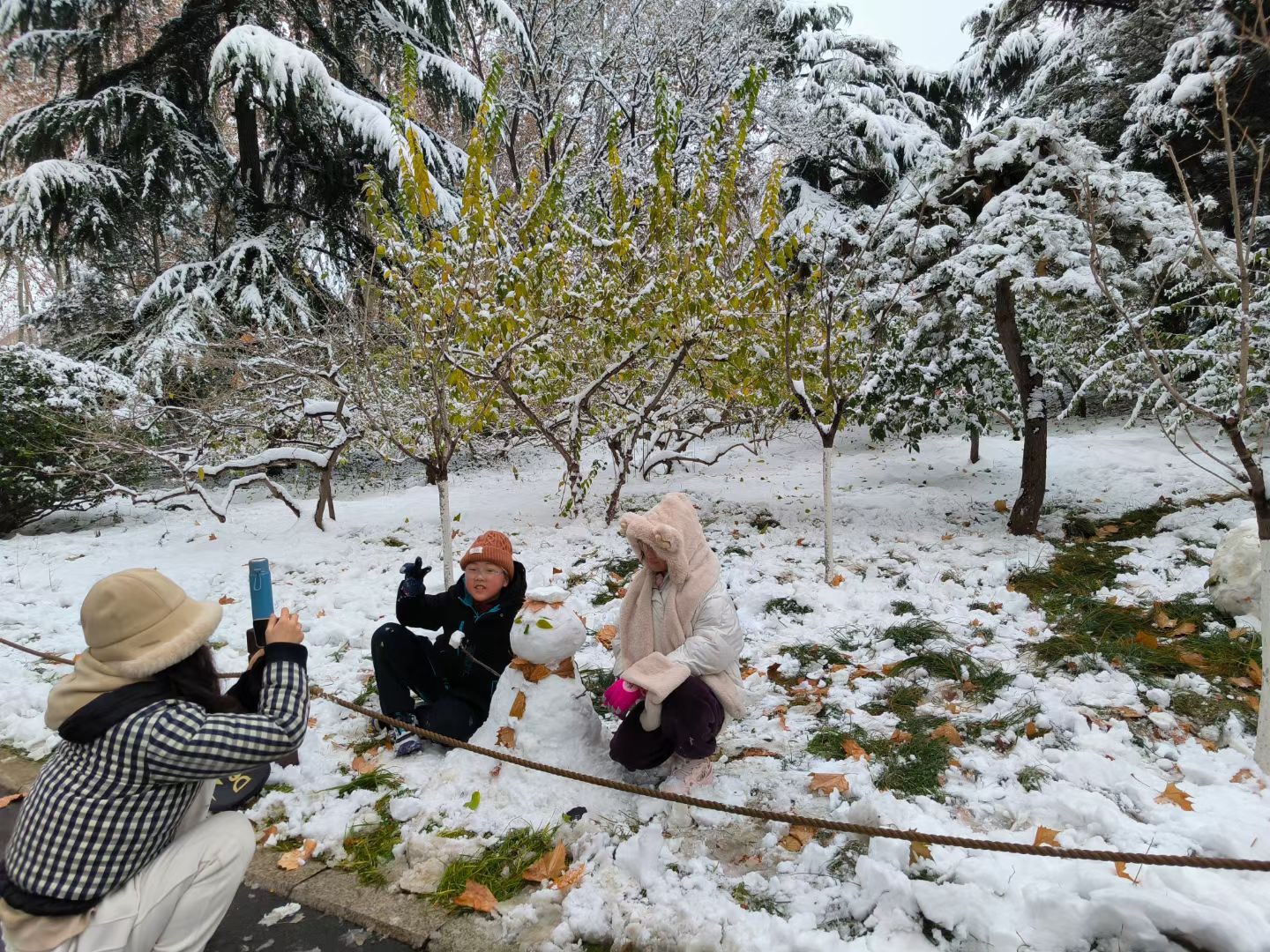 玉树琼枝,银装素裹,腊梅的花苞探头探脑。孩子们在雪地里尽情撒欢,打雪仗,堆雪人⛄️