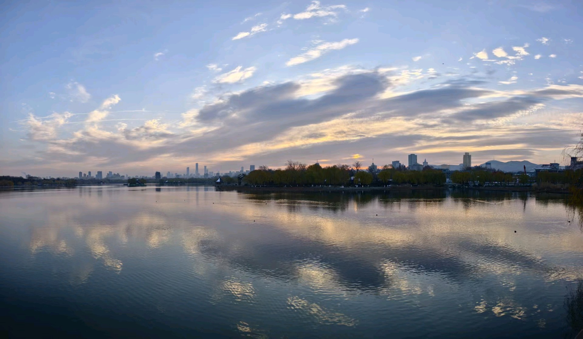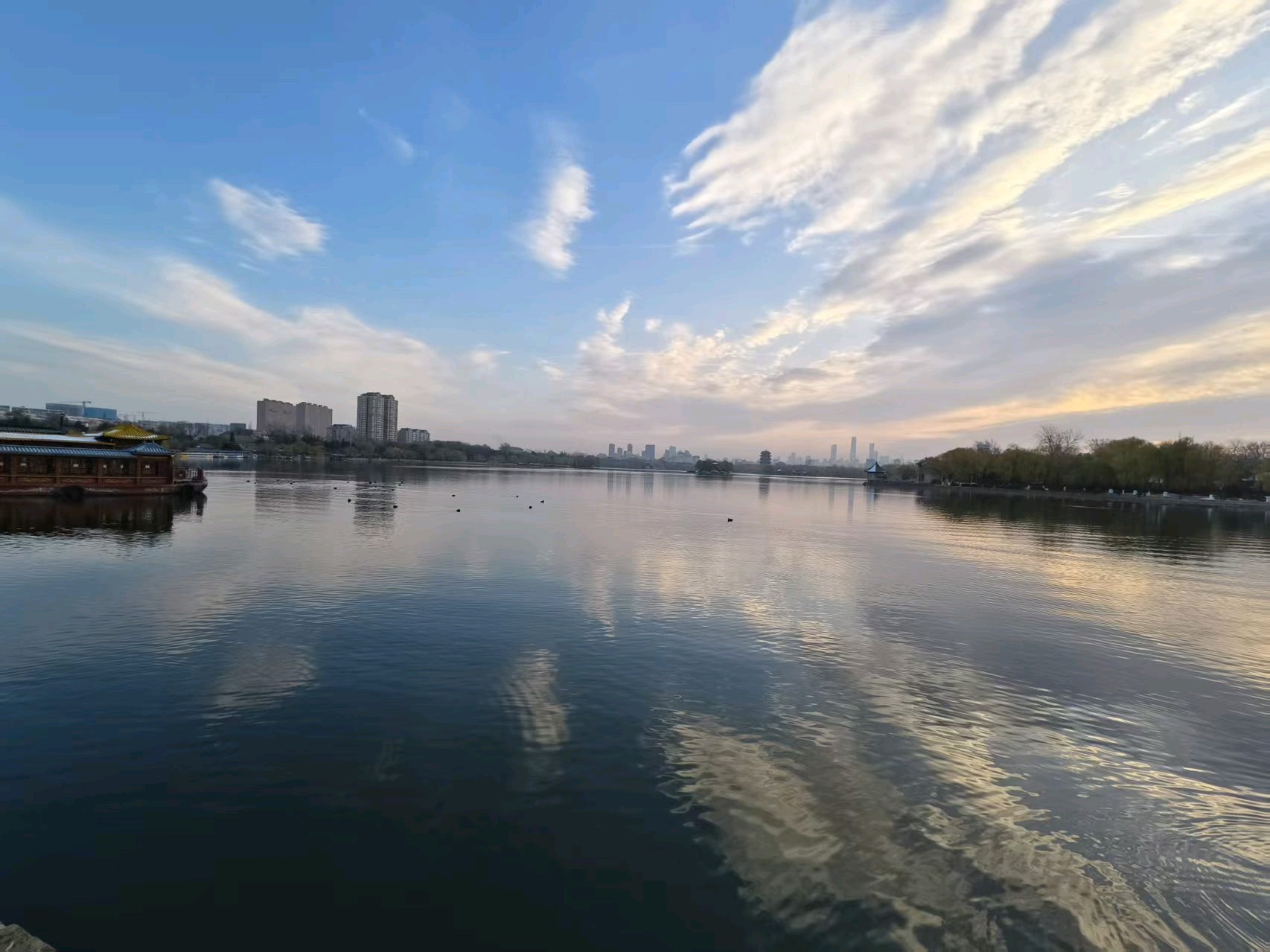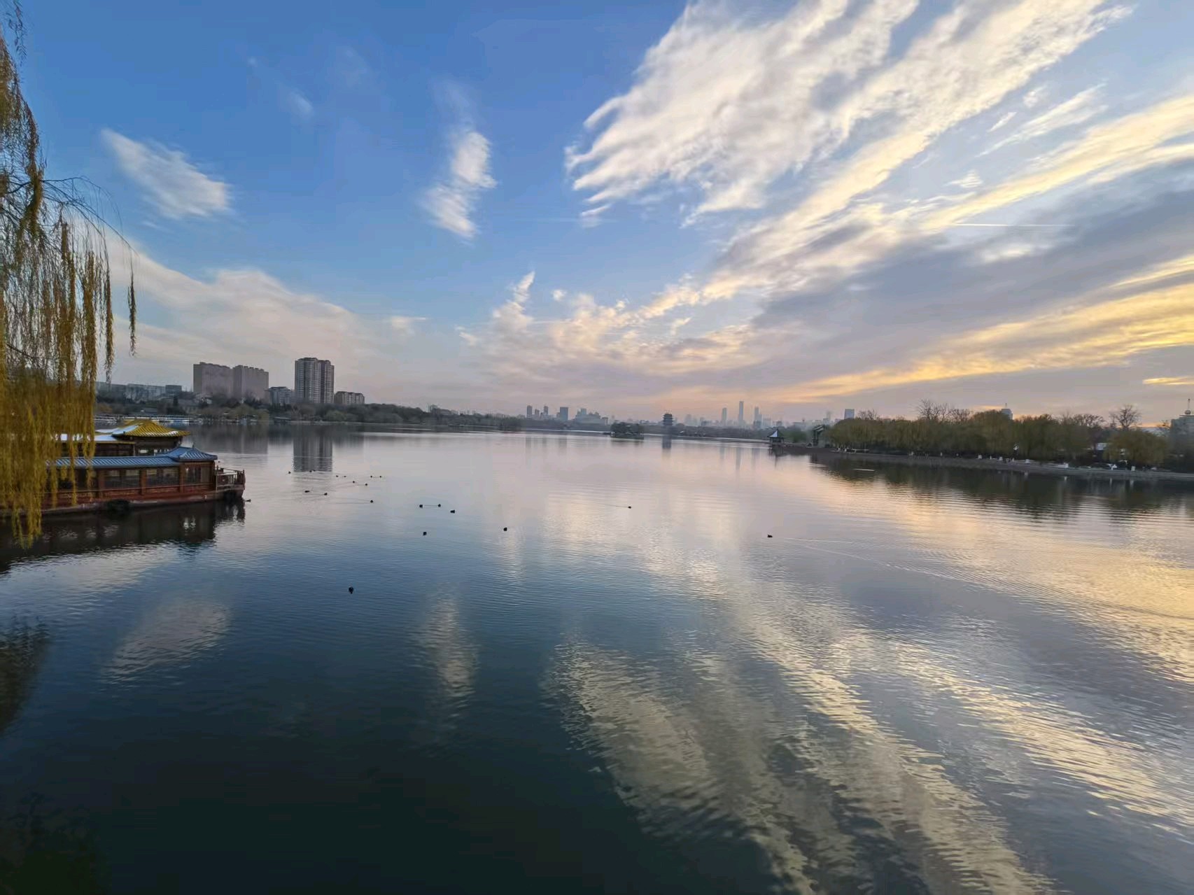 晨光洒在湖面,仿佛一幅美丽的画卷,美丽的大明湖。