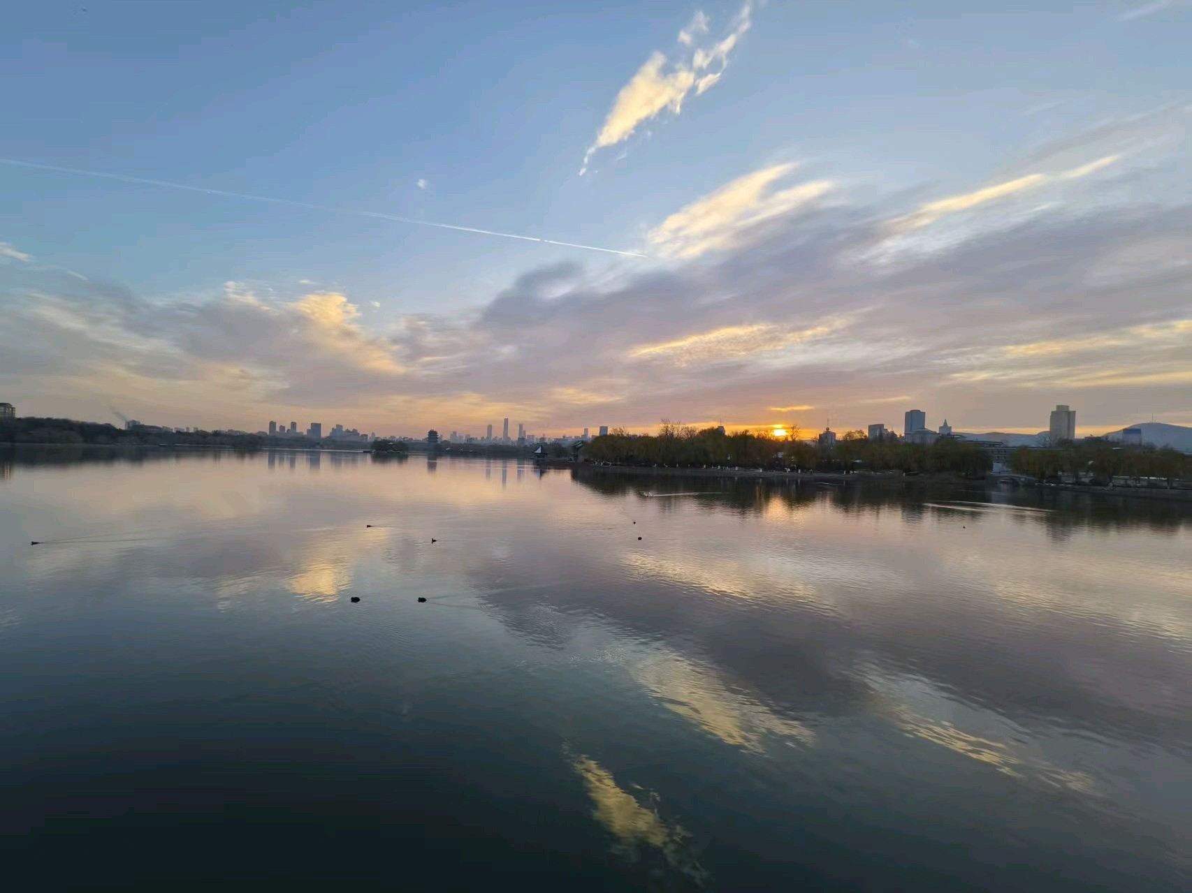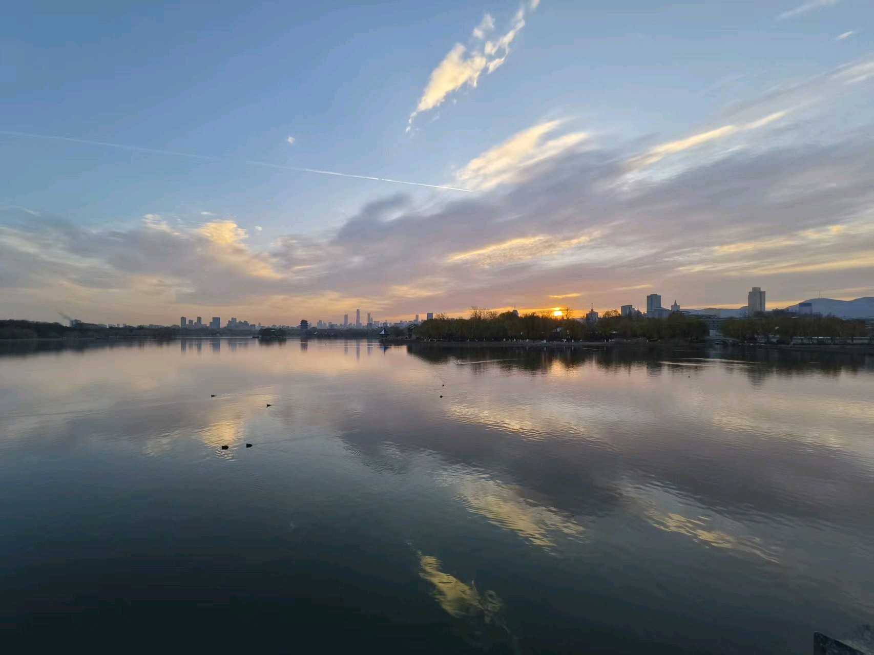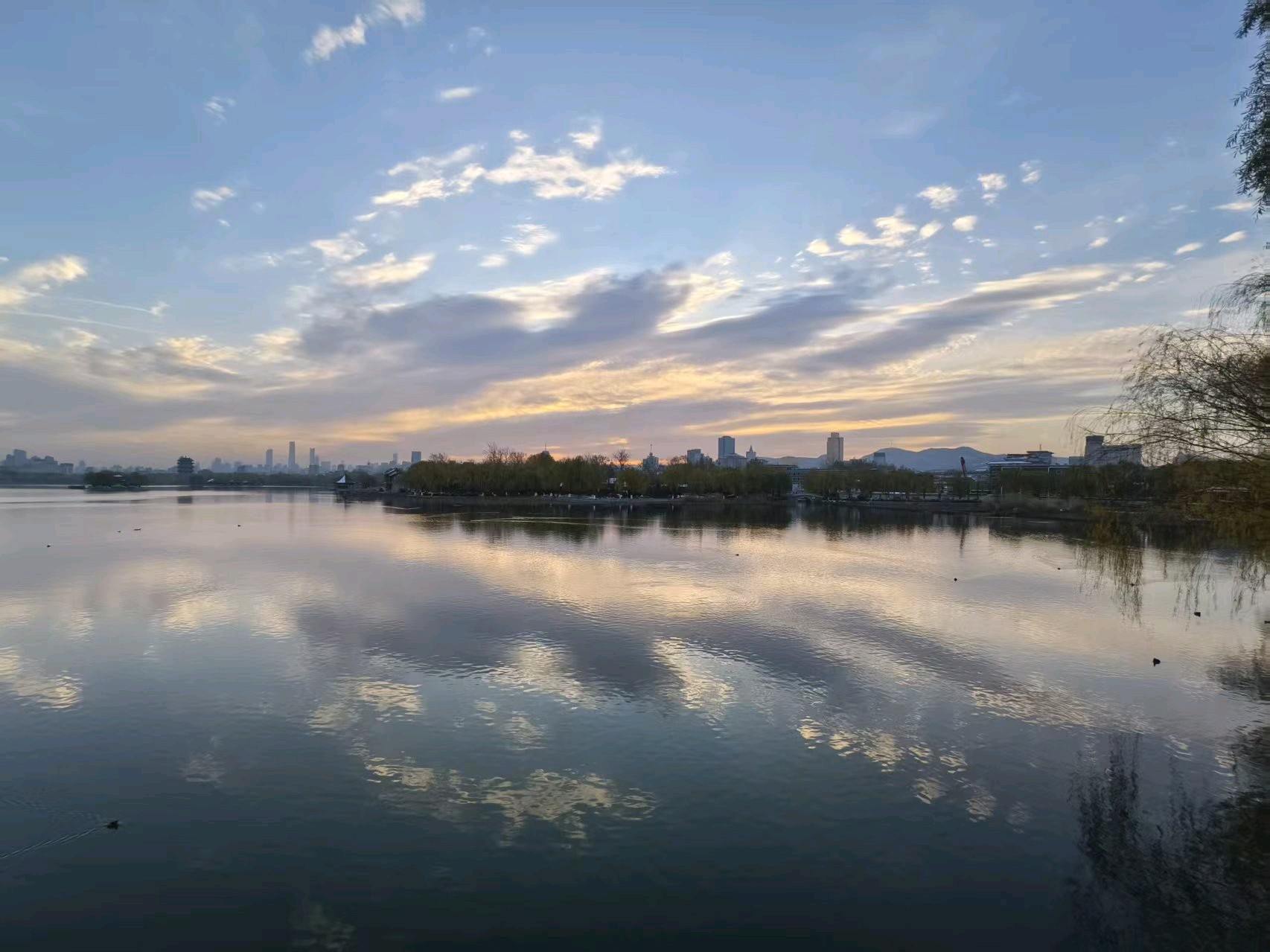 晨光洒在湖面,仿佛一幅美丽的画卷,美丽的大明湖。
