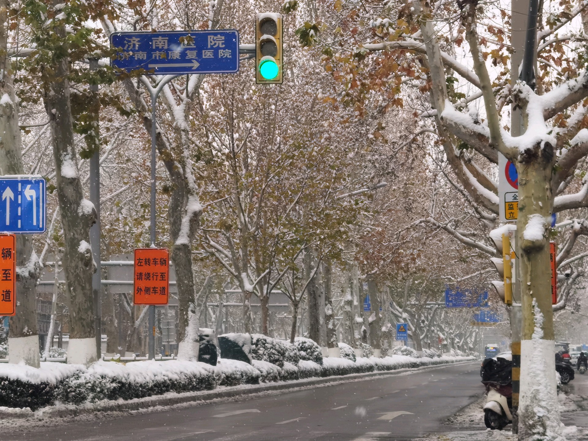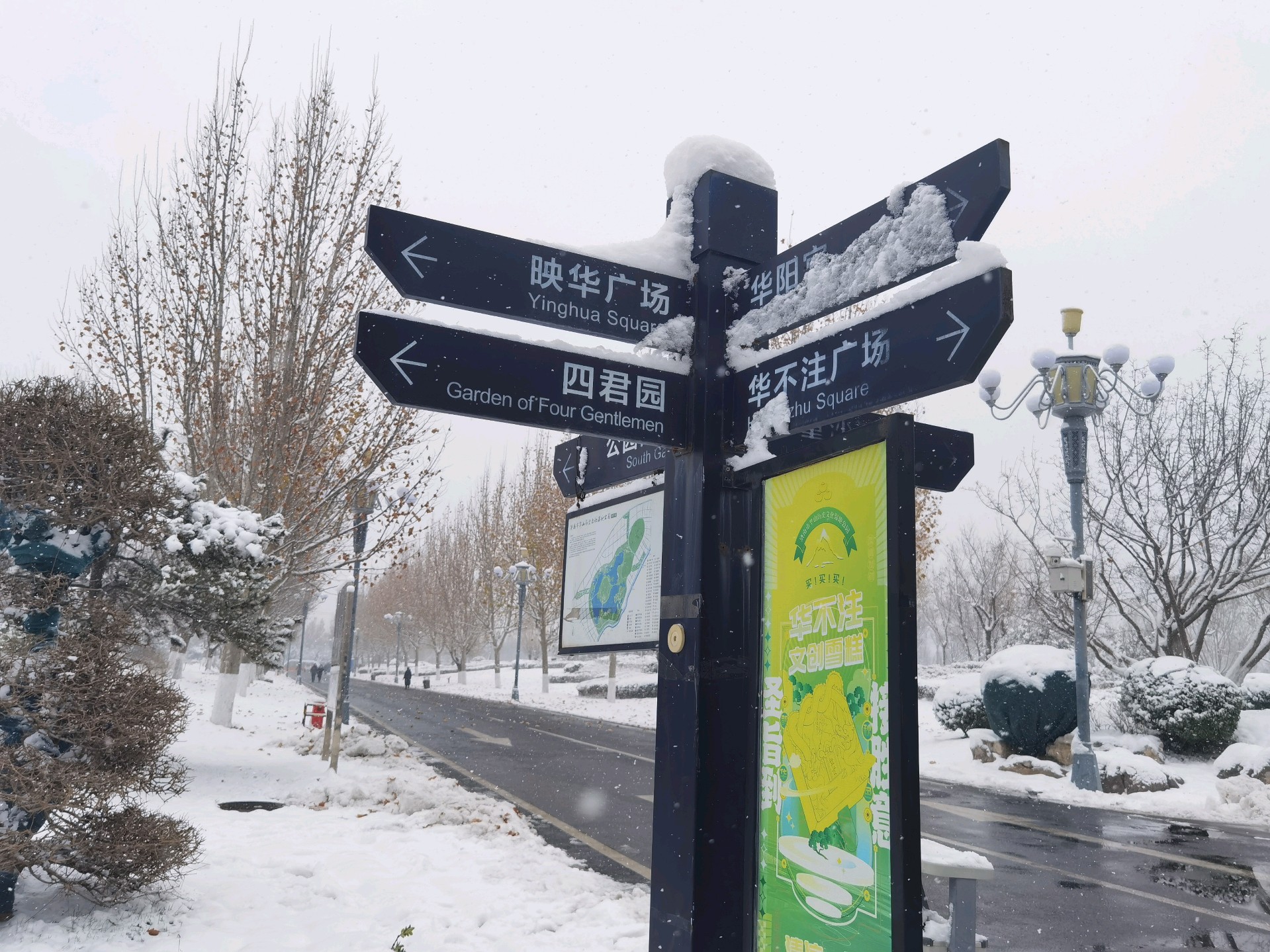 华山历史文化公园,雪落满地,红字石刻,岁月痕迹,静谧如画。