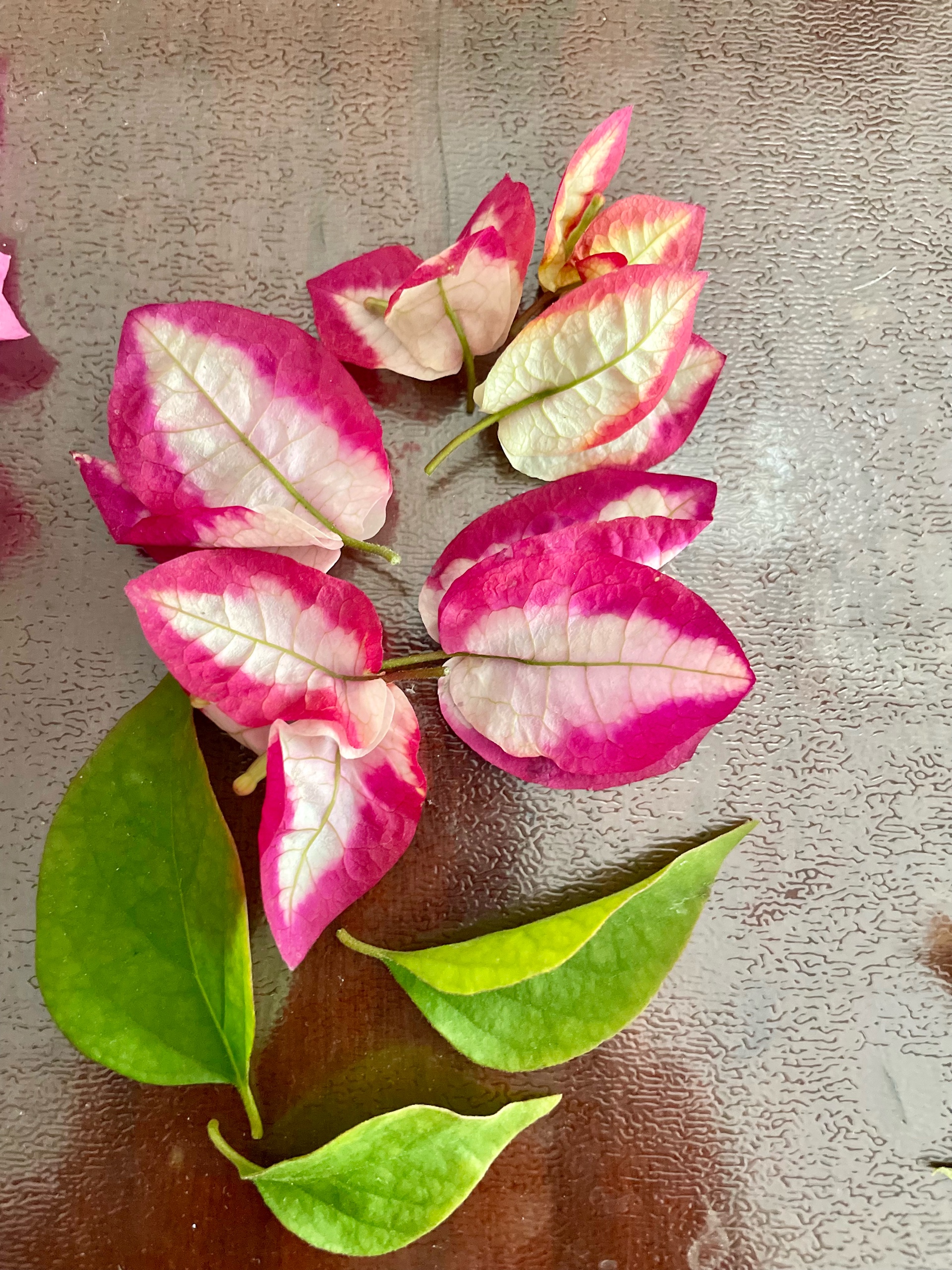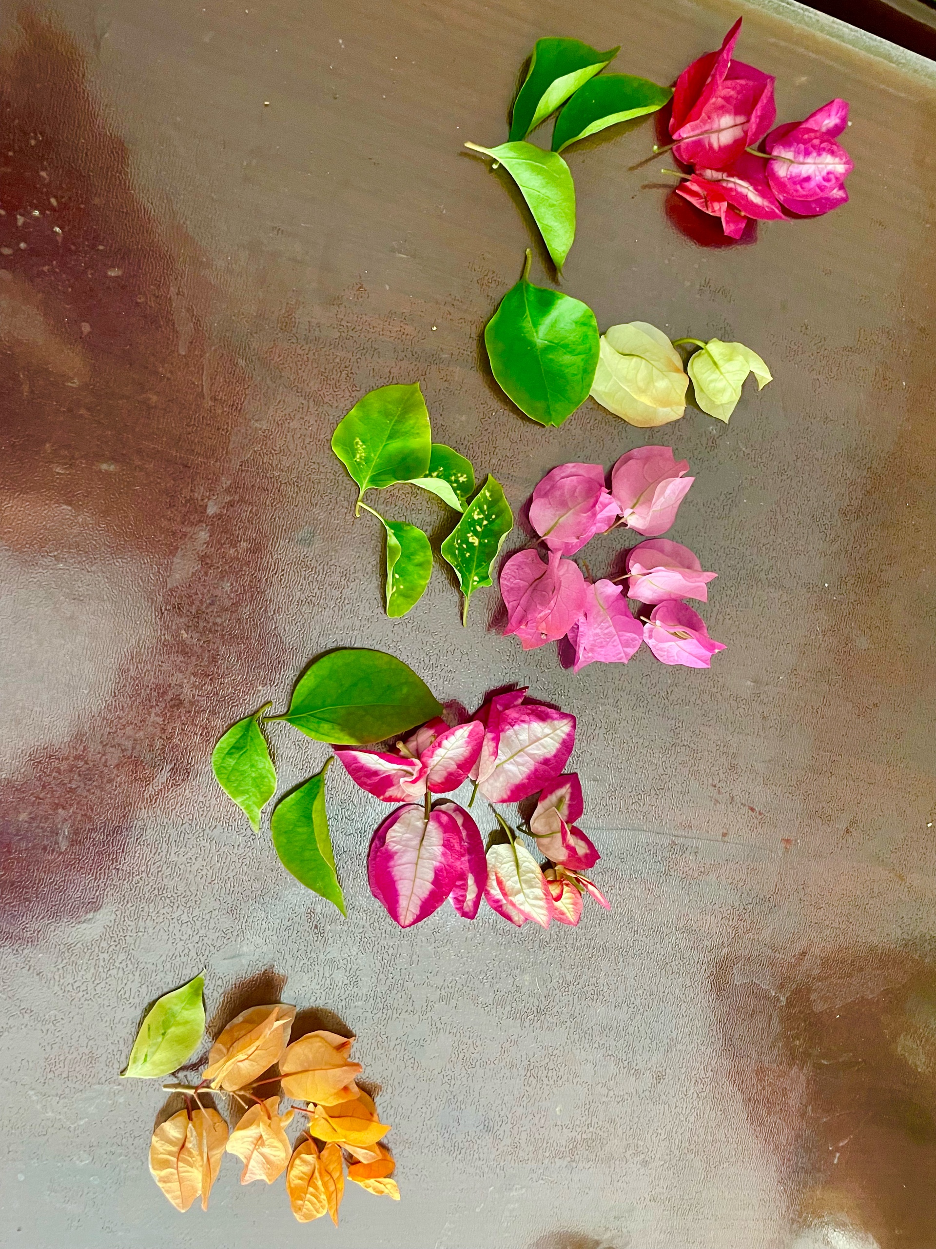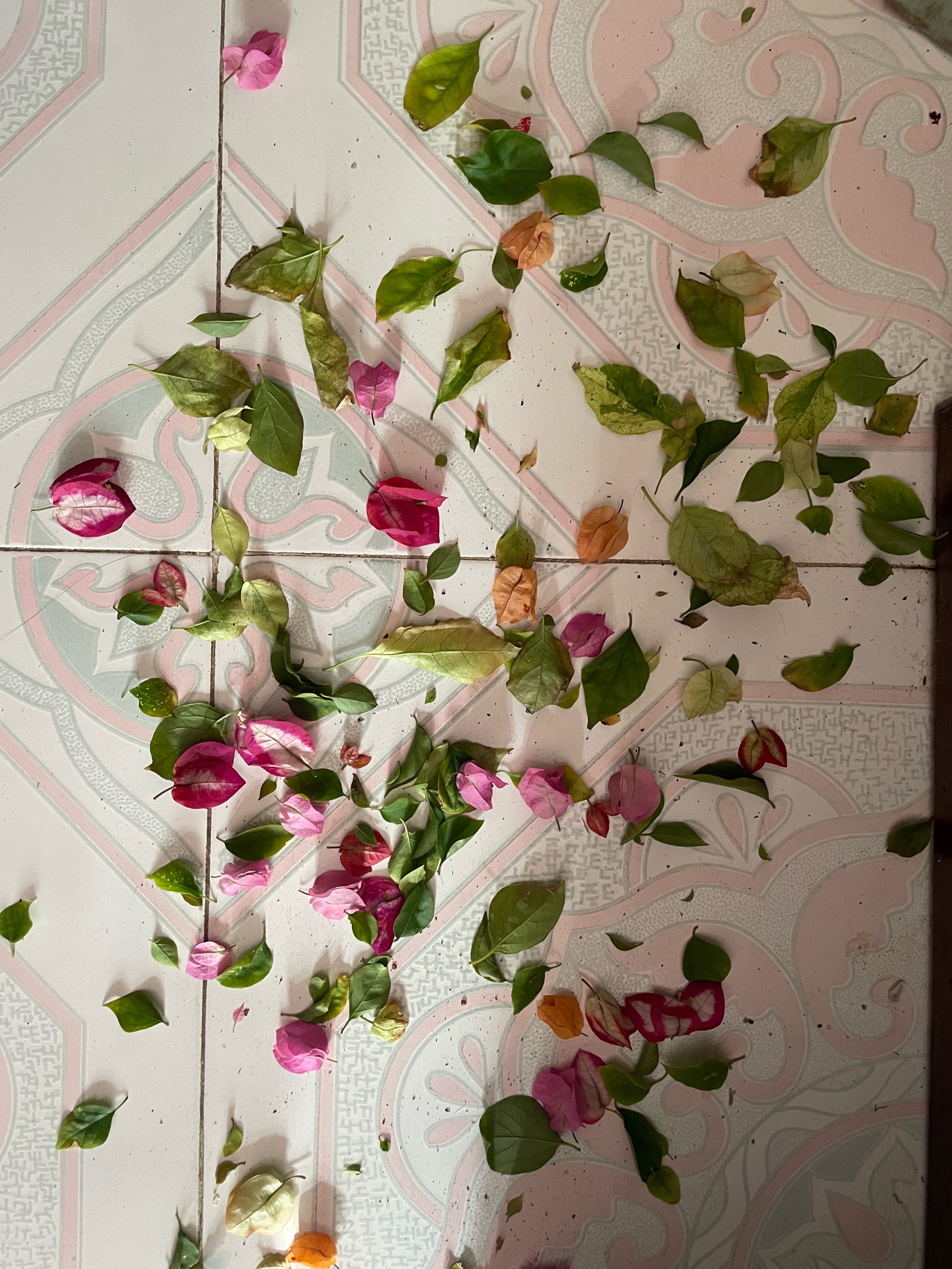 花瓣飘落,铺满地砖,粉色、白色、绿色交织,如同一幅五彩斑斓的画卷。岁月静好,享受这一刻的美好。只是可惜了,长途运输五个稀有品种的三角梅花瓣飘落,铺满地砖,绿叶点缀,粉色、白色、橘色交相辉映,如诗如画。岁月静好,享受这一刻的美好。由于长途跋涉,运到我家来,这五颗三角梅几乎都成光杆儿了。