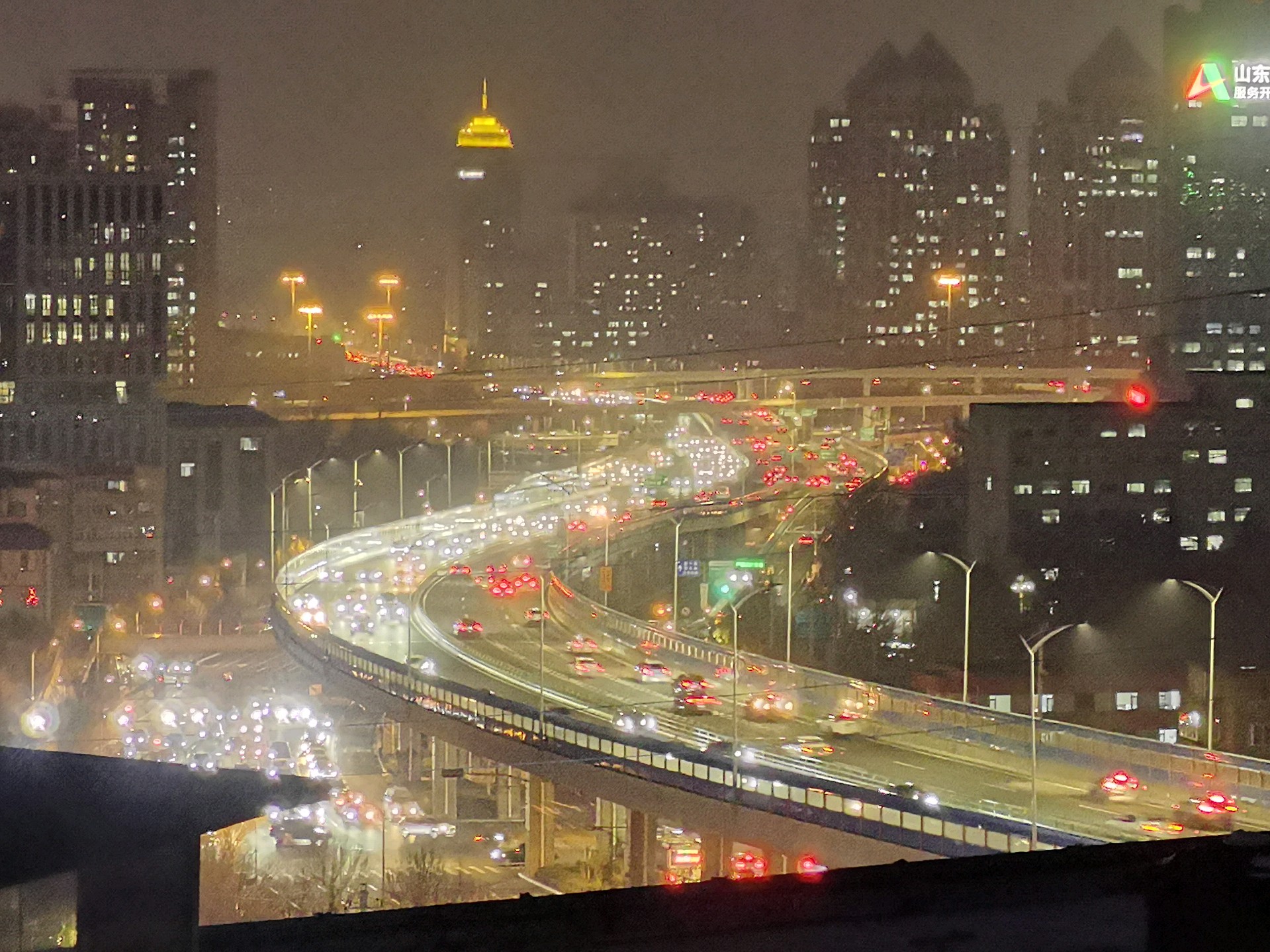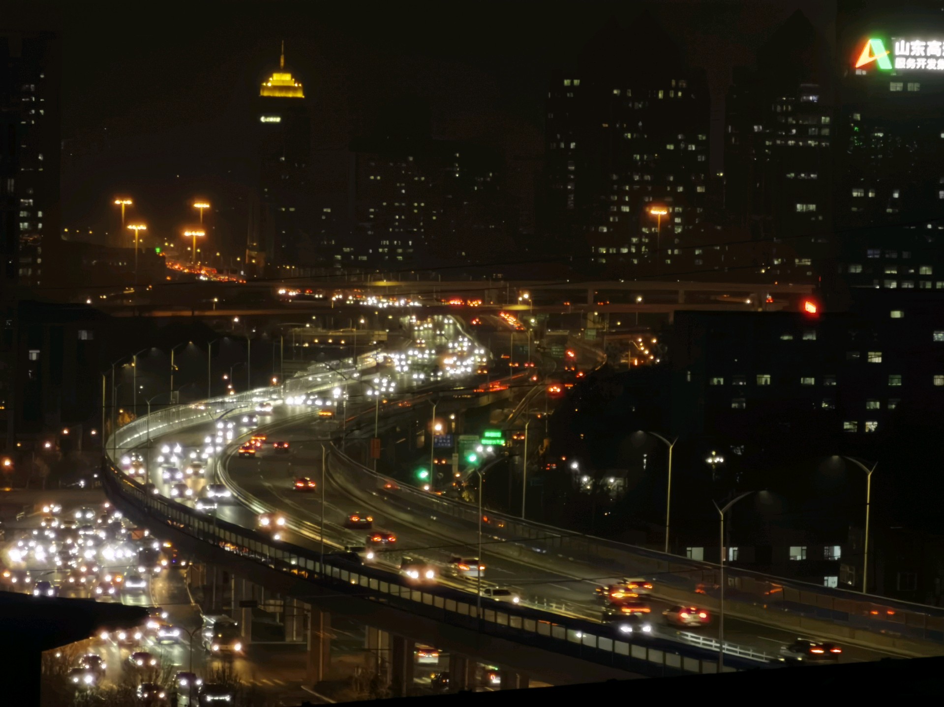 夜幕下的济南二环东路高架桥,燕山立交桥南段。