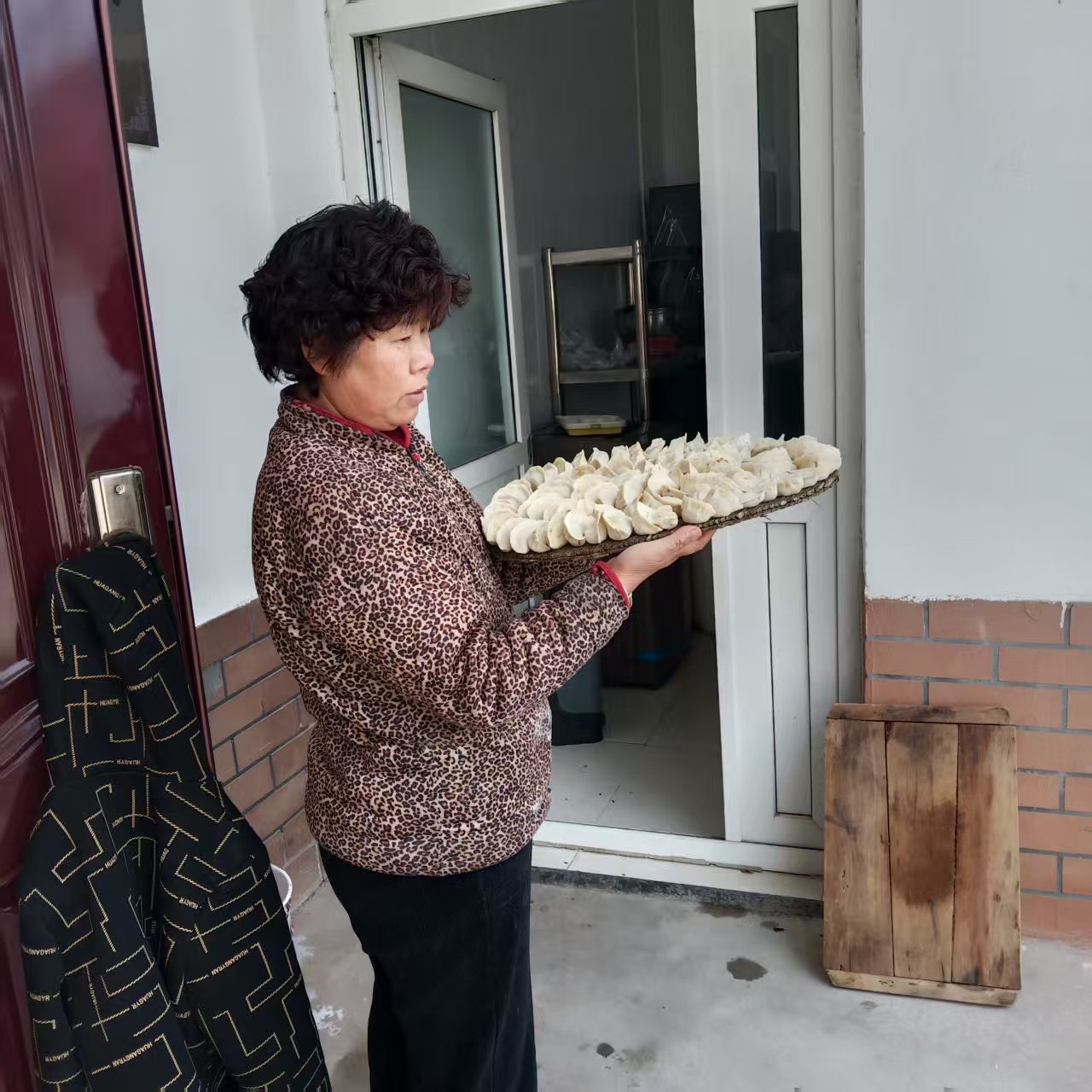 活动伊始,幸福院的活动室里就热闹了起来。志愿者们和村里的热心村民提前备好了白面、鲜馅、擀面杖等食材工具,老人们也纷纷围拢过来,主动参与到包饺子的队伍中。有的老人手法娴熟,捏出的饺子圆润饱满、造型精致;有的老人虽动作稍缓,却也一丝不苟,在邻里的指导下慢慢摸索;还有的老人坐在一旁,一边看着大家忙碌,一边分享着冬至的民俗故事,清脆的笑声和亲切的交谈声交织在一起,让冬日的幸福院充满了浓浓的烟火气。