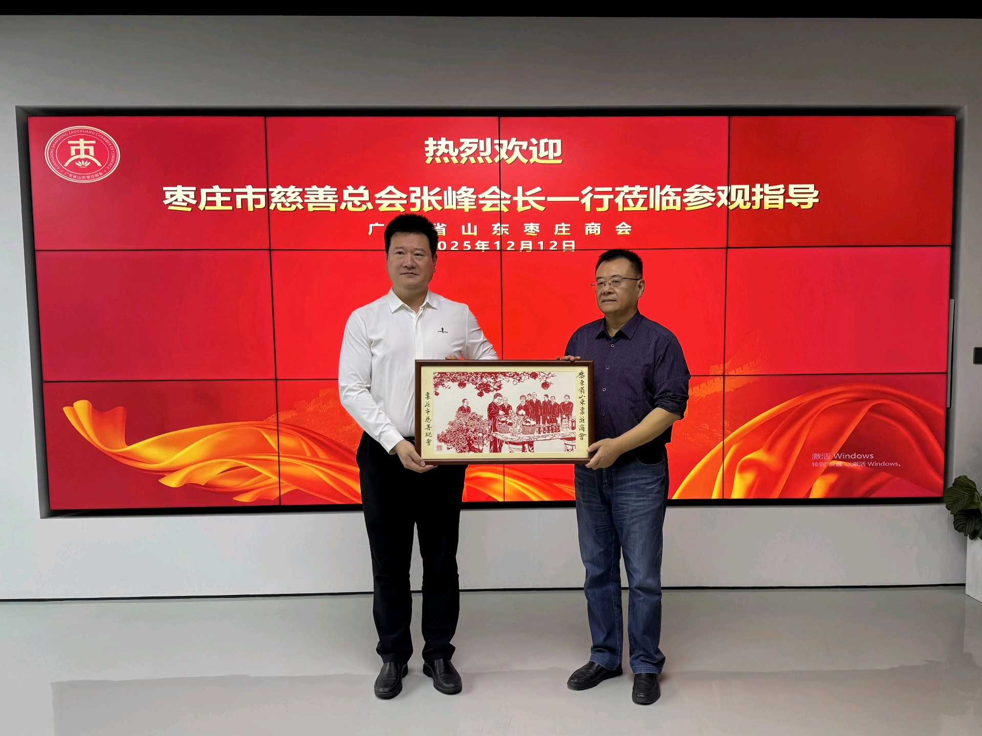 12月12日,枣庄市慈善总会会长、市民政局原二级巡视员张峰率队赴广东省山东枣庄商会开展学习考察活动,并与商会代表、枣庄籍企业家代表举行座谈交流,共叙乡情、共话慈善、共商发展。