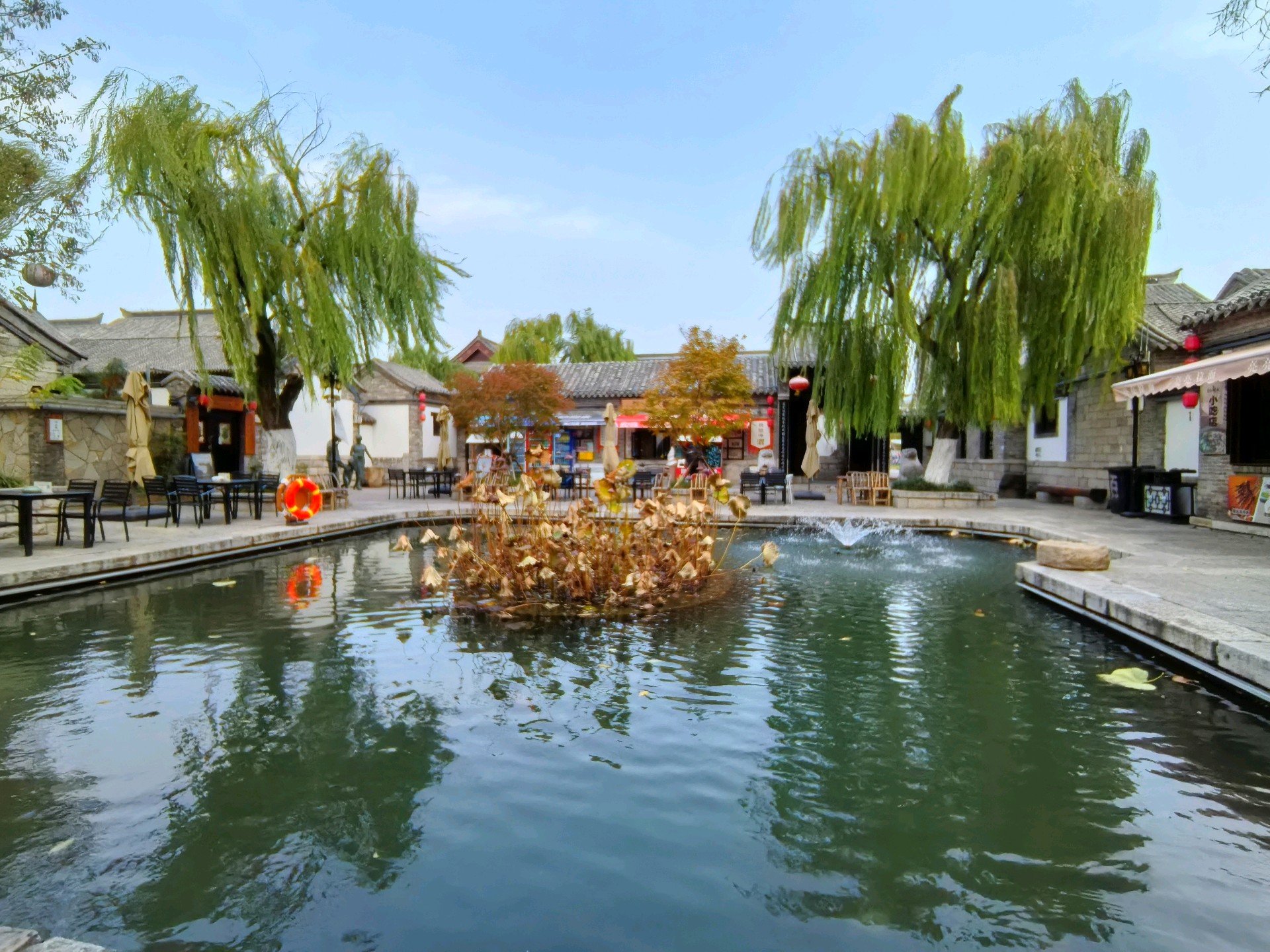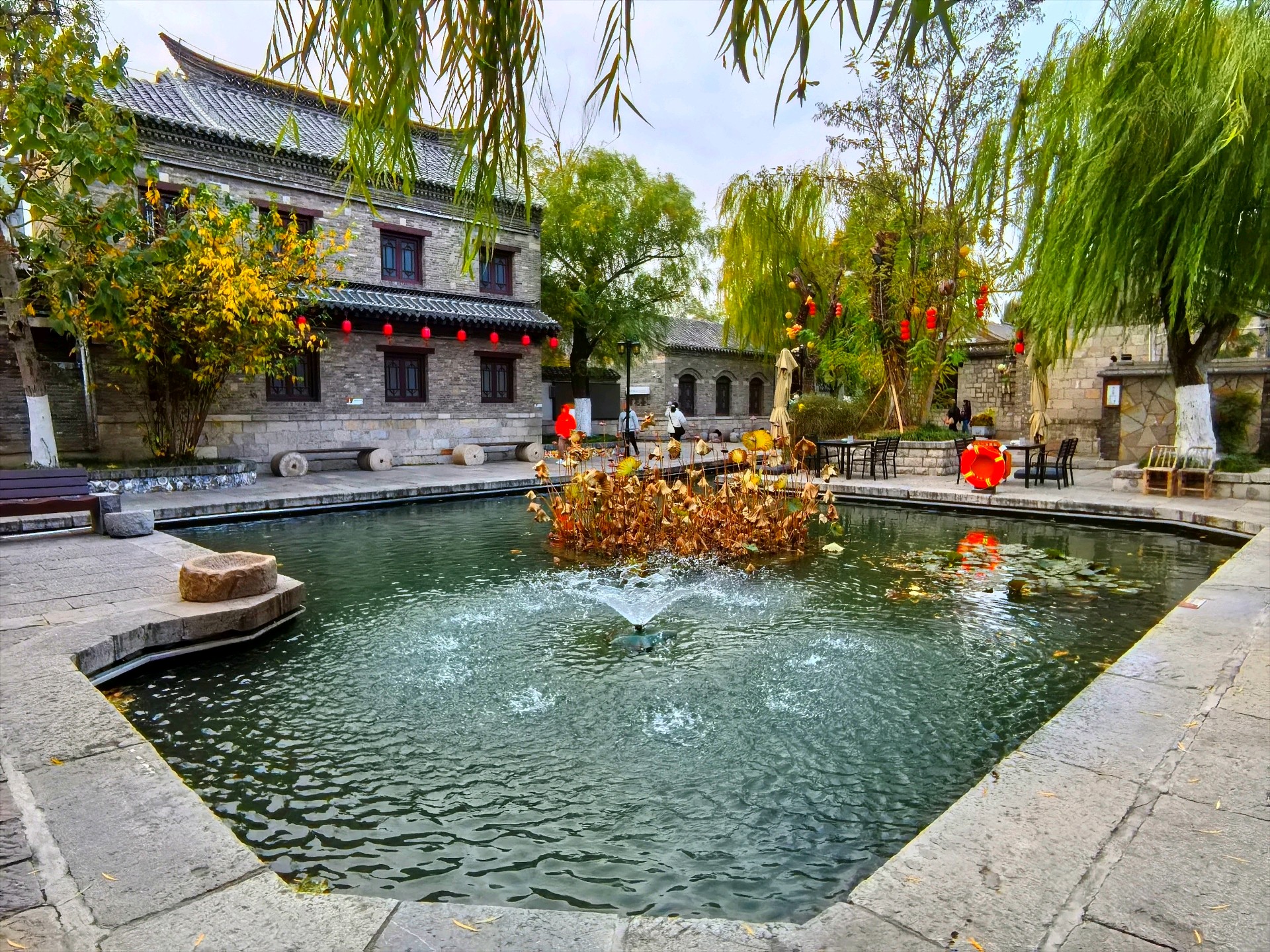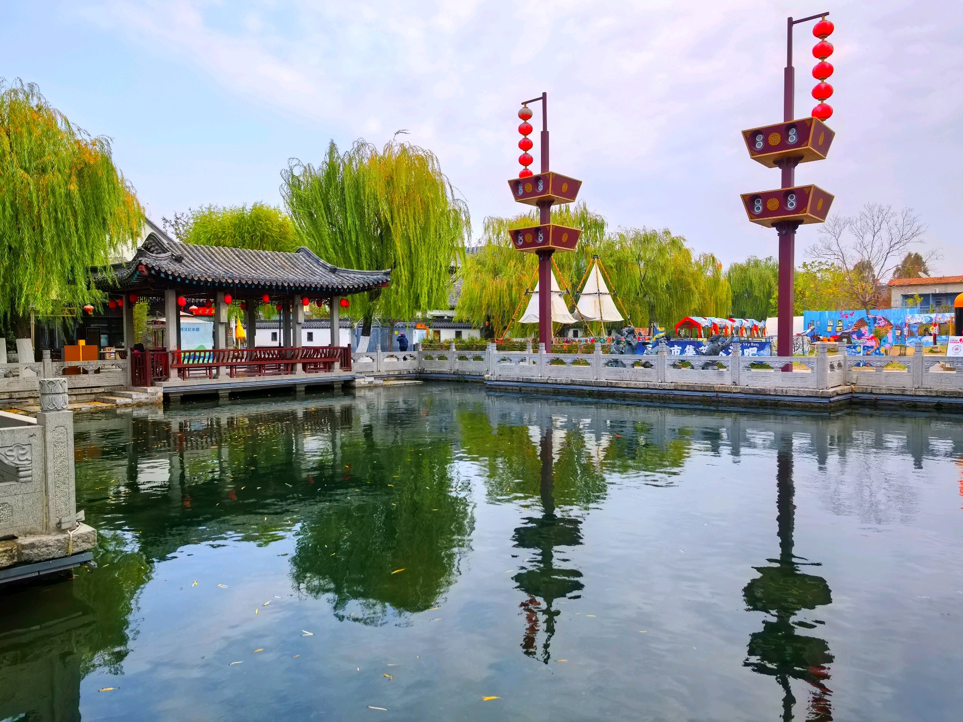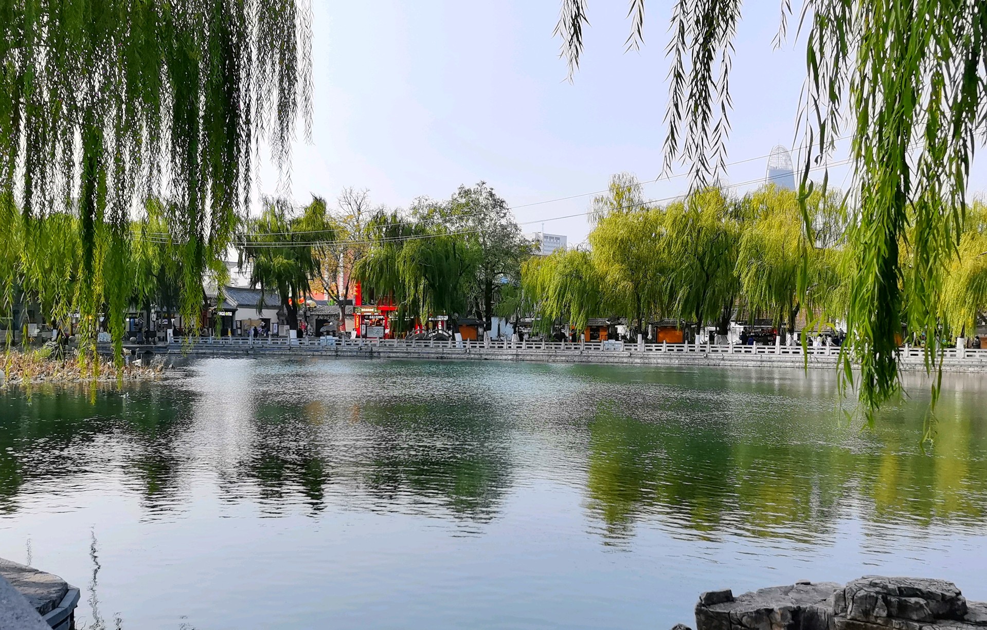 冬日的百花洲,少了几分春日的姹紫嫣红,却多了几许清冽雅致。澄澈的湖水结了薄冰,岸边的垂柳褪去绿装,枝条疏朗地映在冰面上,偶有几只水鸟掠过,给这片静谧添了灵动,老济南的韵味在寒风里愈发醇厚。暖阳透过疏枝洒下来,光影斑驳间,仿佛时光都慢了下来,满是老城冬日独有的温柔。冬日漫步百花洲,不必寻芳,自有风情。湖面上水汽氤氲,岸边的茶馆飘出暖香,老人们围坐晒着太阳闲话家常,青砖黛瓦与冬日晴空相映,每一帧都是济南老城最熨帖的冬日图景。