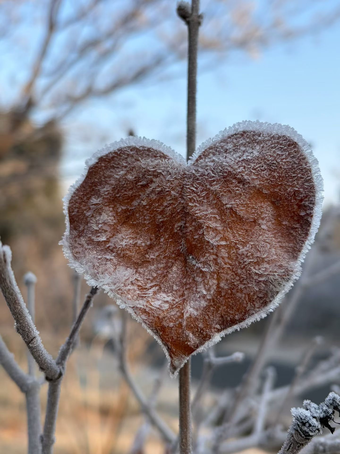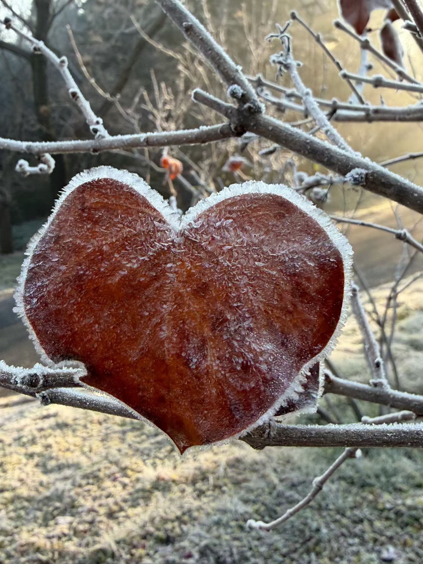 冬日里的爱心,是那片被霜雪覆盖的枯叶,它静静地挂在枝头,仿佛在述说着季节的变迁和生命的坚韧。