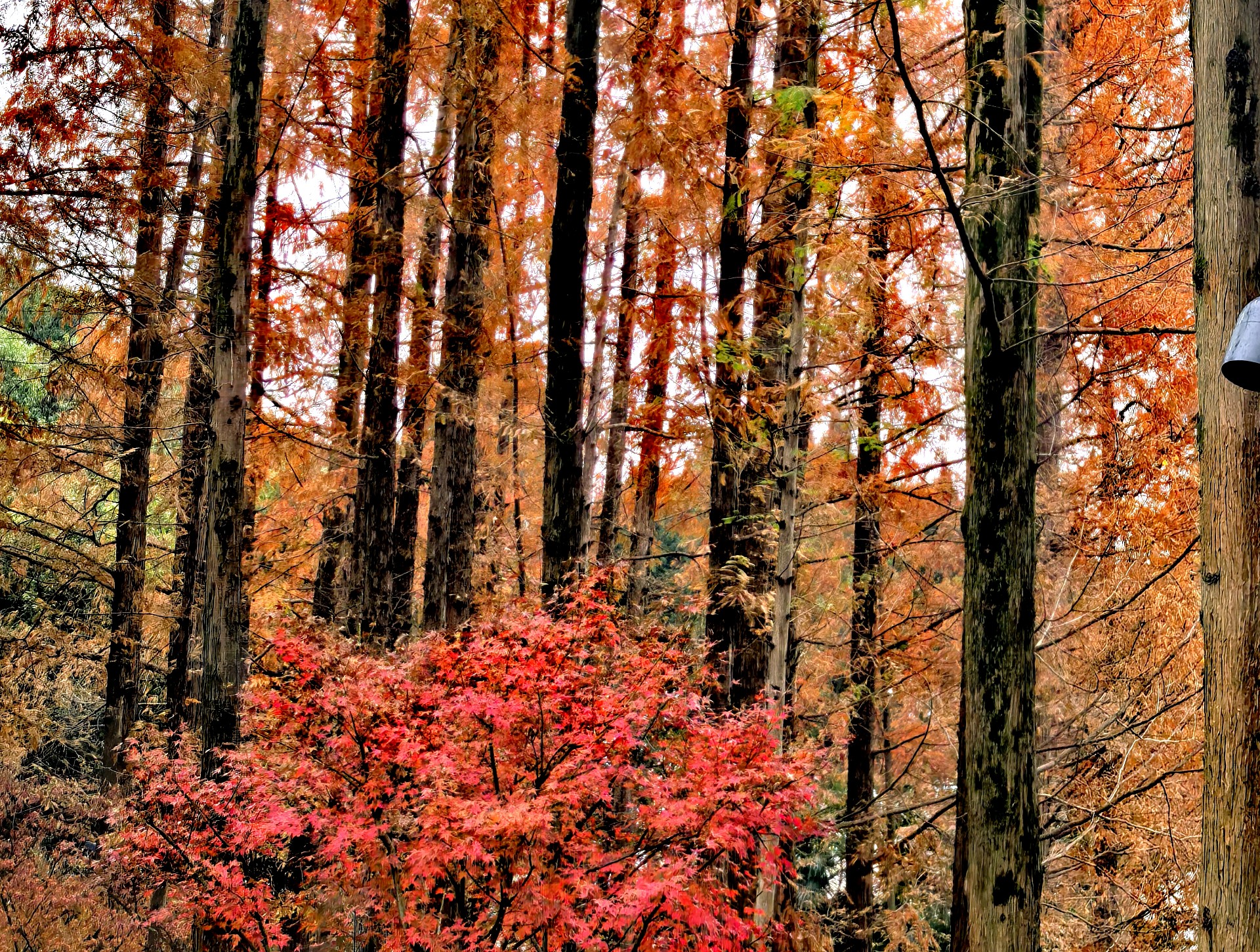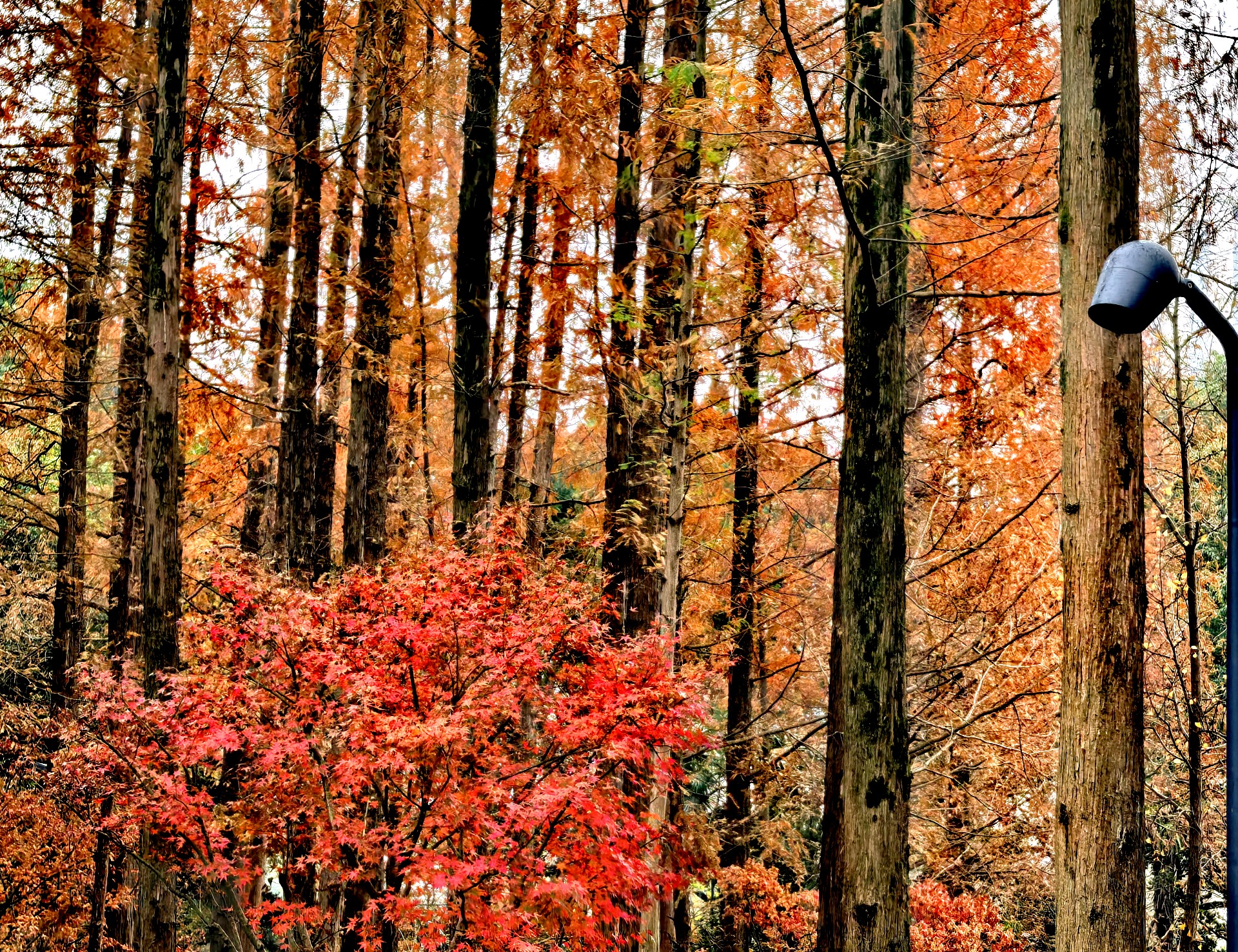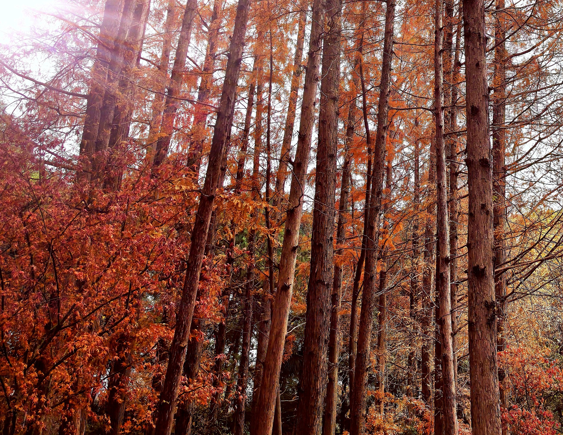 泰山冬天的树林确实美得像一幅画,尤其是初冬时节,树叶变色,阳光照耀下金黄、火红、深绿交织,色彩斑斓。 泰山顶上的树林以橡树林和松树为主, 初冬时树叶由绿变黄、深冬时由黄变红,层层叠叠铺满山坡,阳光透过树叶洒下,斑驳光影和落叶的暖色调晕染山岗,微风拂过,黄叶飘落,像蝴蝶飞舞,营造出静谧而迷人的氛围。 远眺泰山,犹如被大自然这位神奇的“画家”涂上一层美丽的底色!