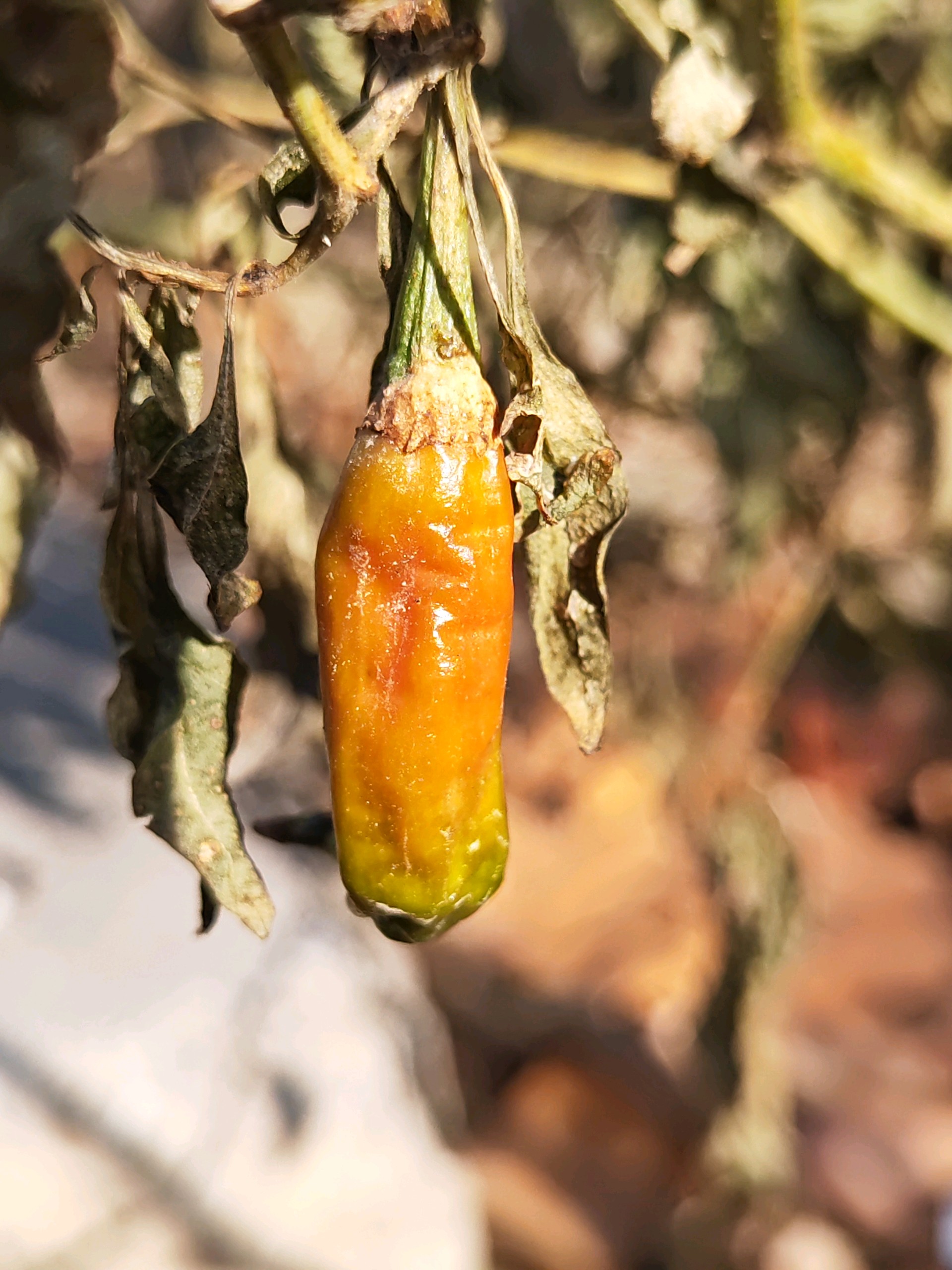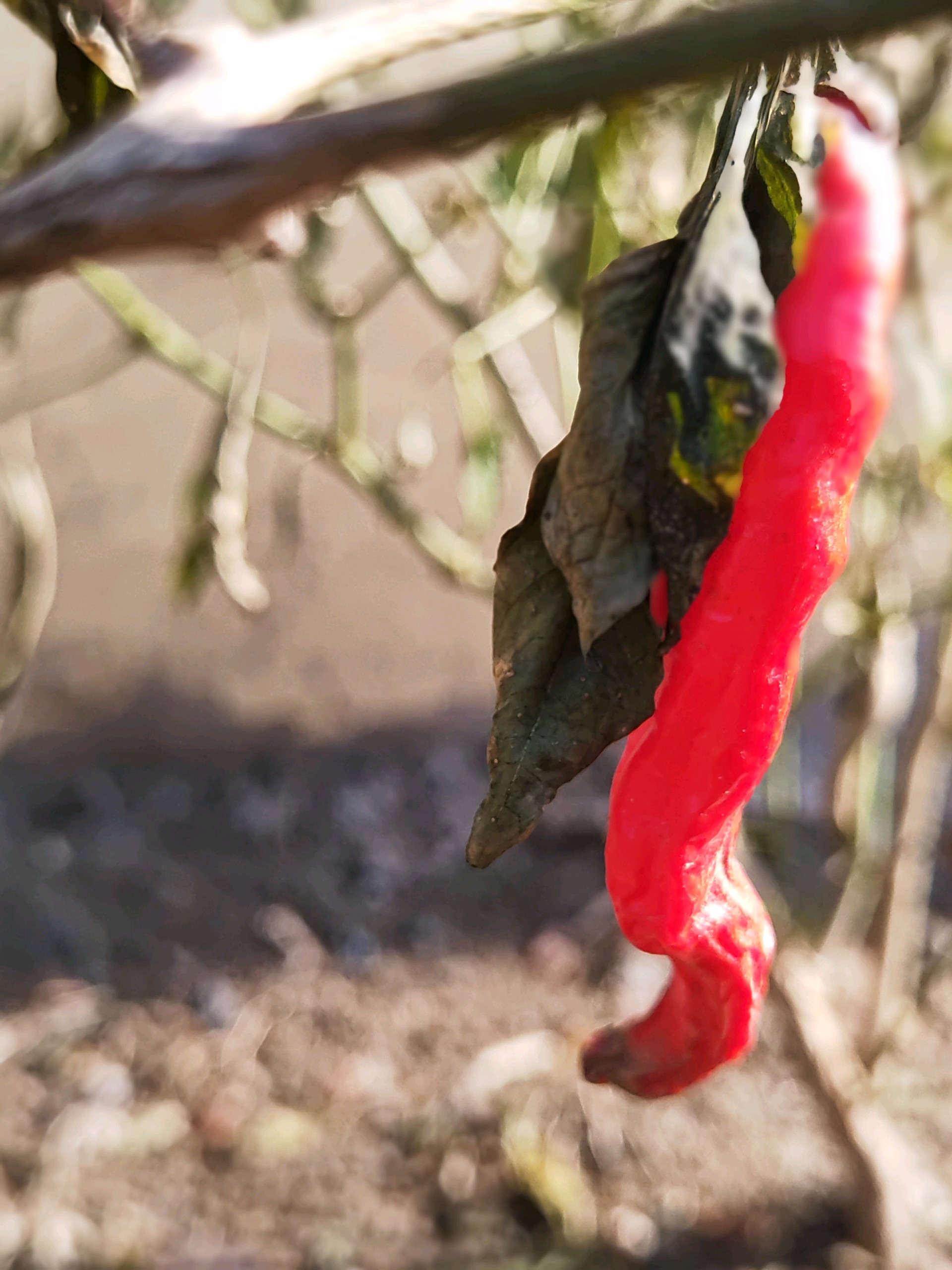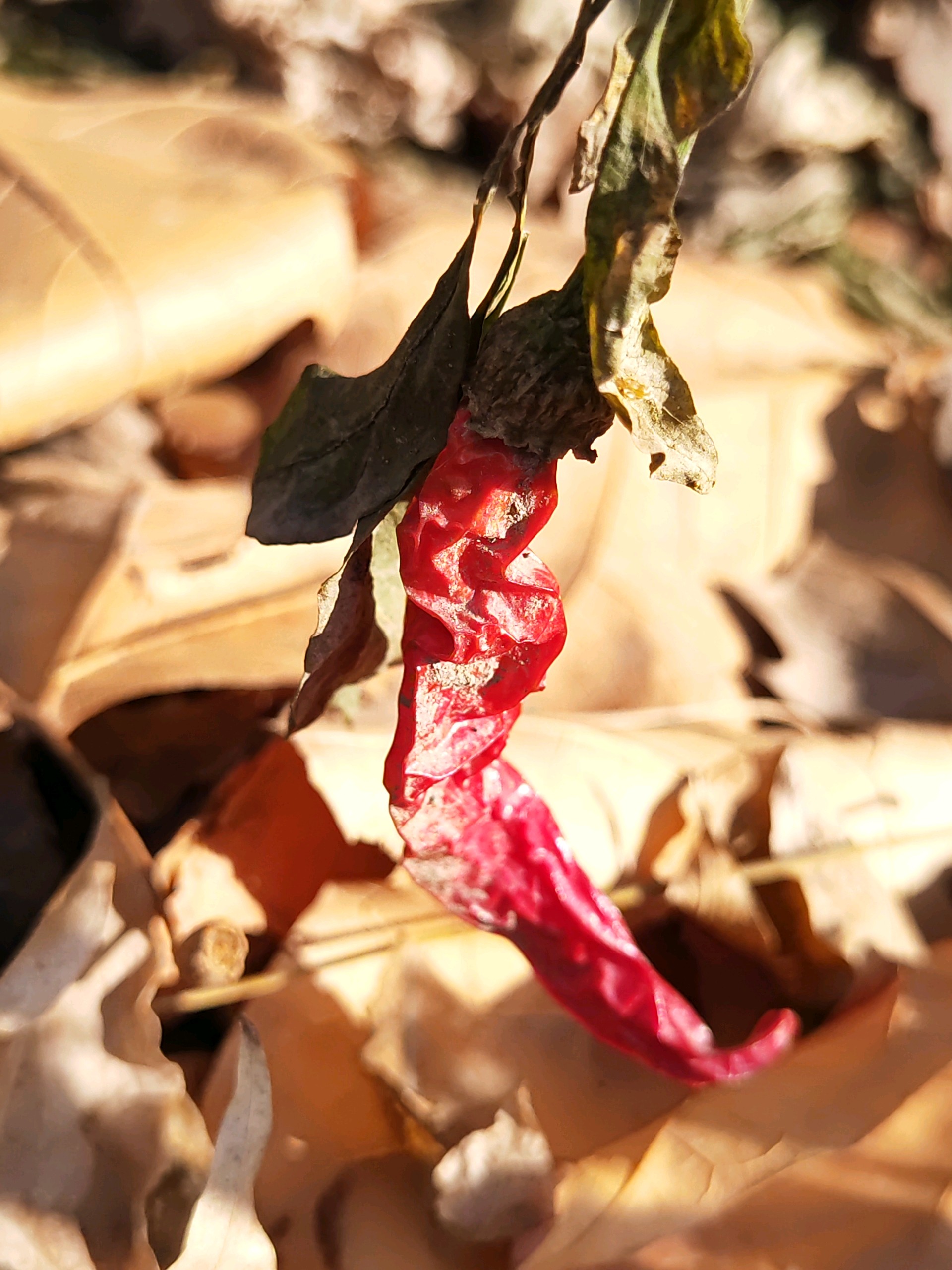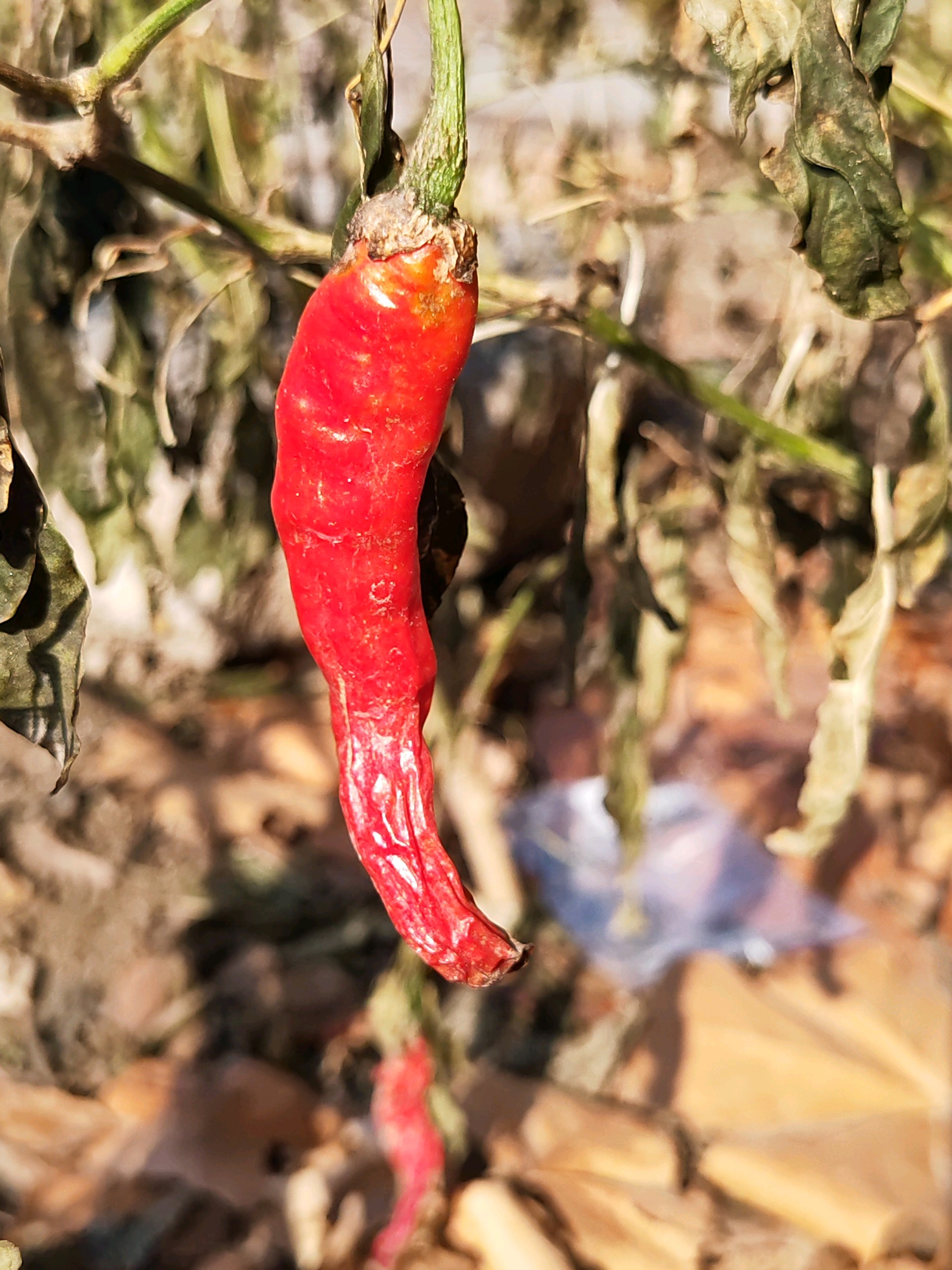 辣椒成熟时,红彤彤的挂在枝头,像一串串火焰在阳光下跳跃。
