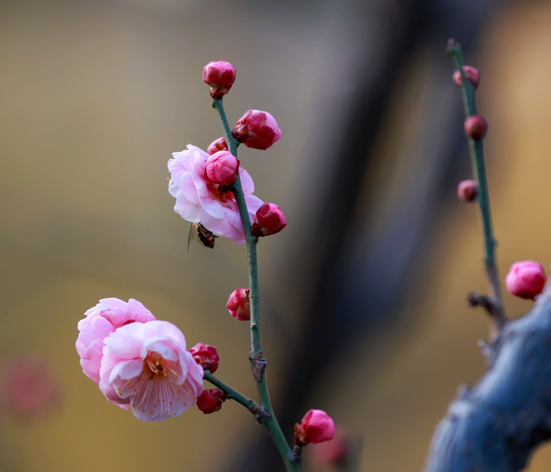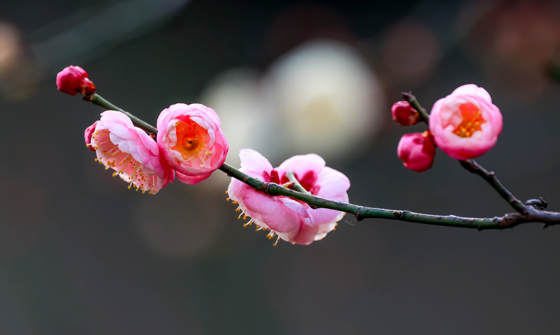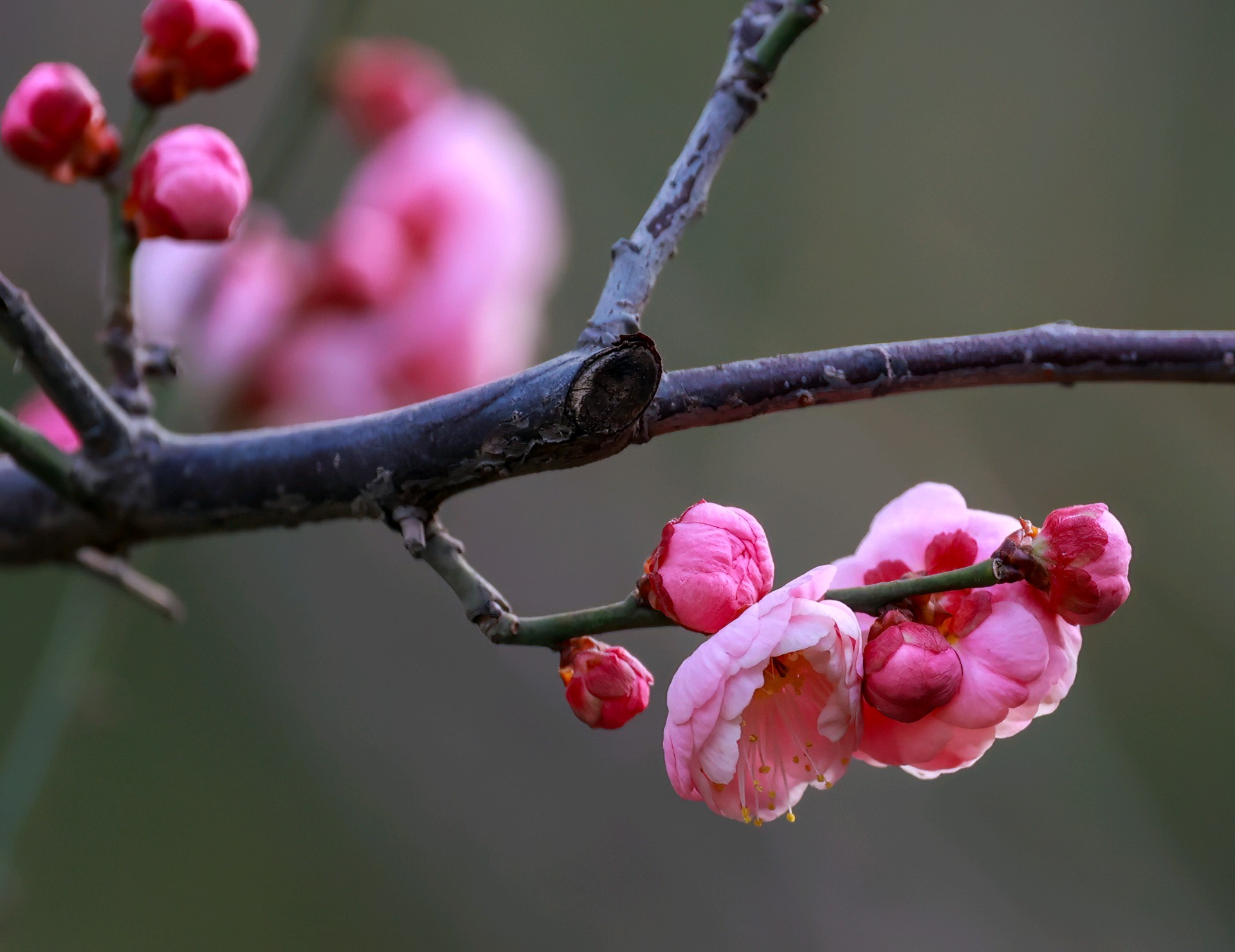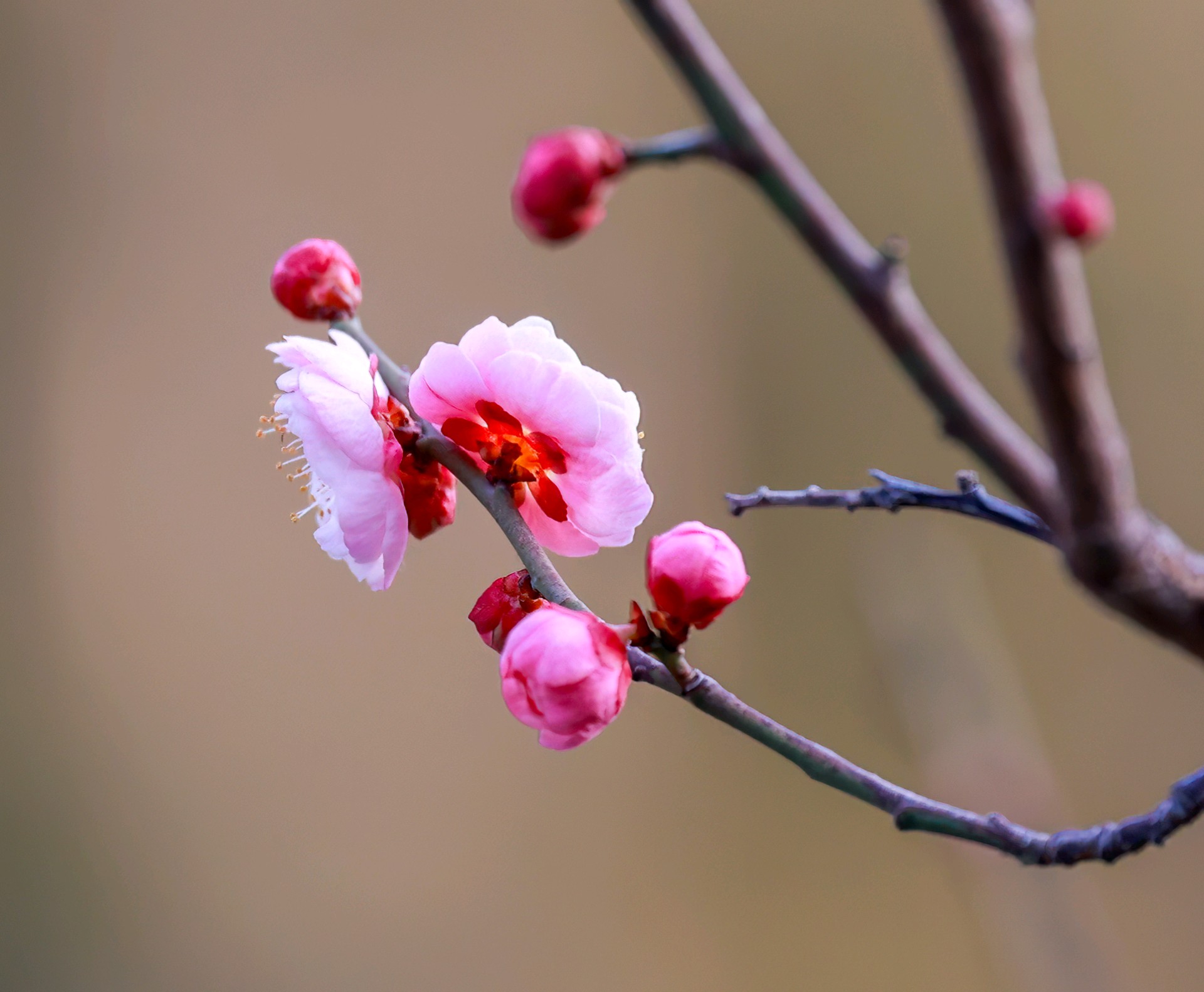 趵突泉景区的红梅花已经开放,目前正值观赏期