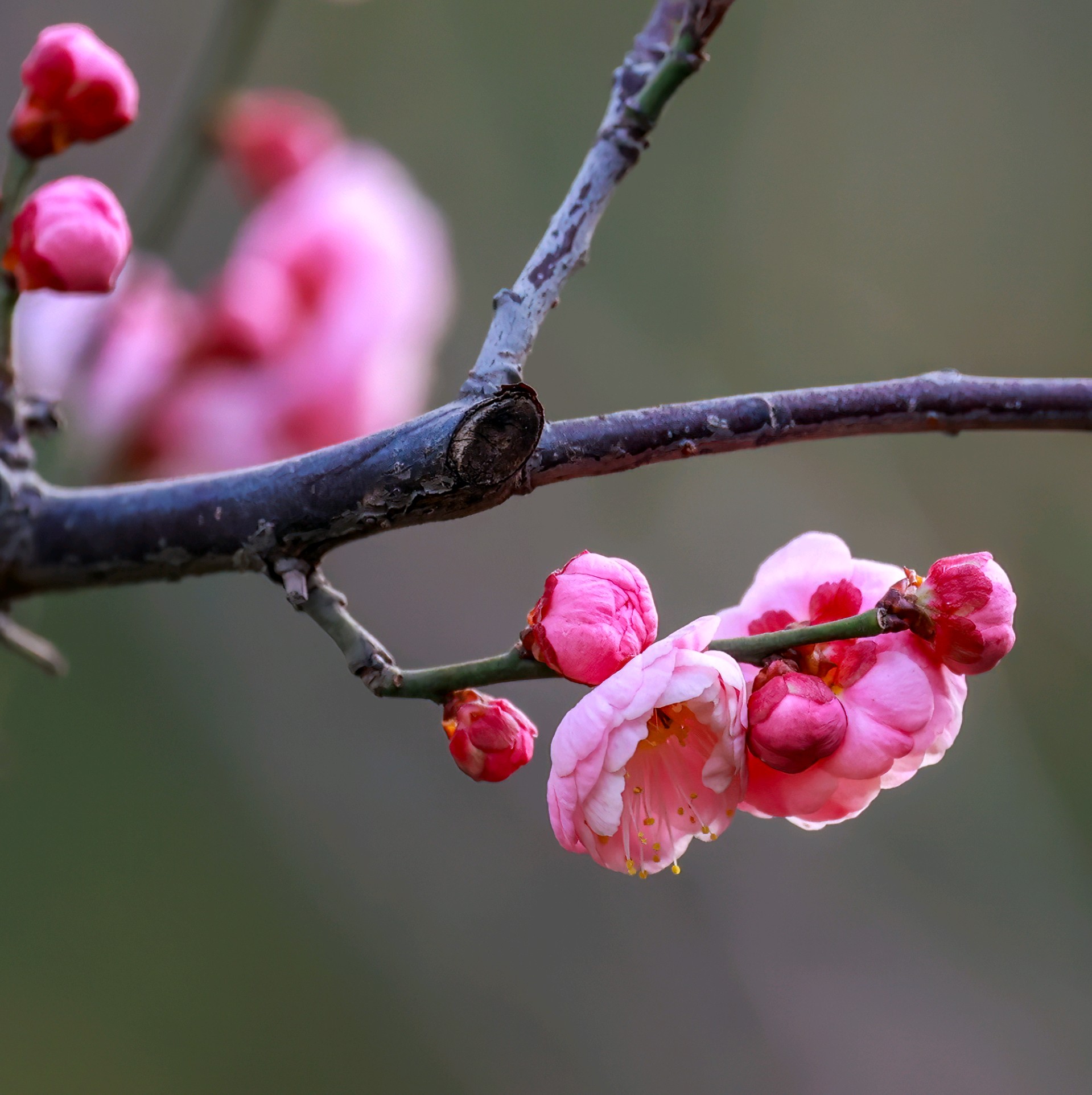 今日,趵突泉的梅花渐次开放,红色如霞,小巧精致且清香醉人;红梅花往年多在一二月份开放,今年因暖冬影响提前了约一两个月,所以现在去看正合适。