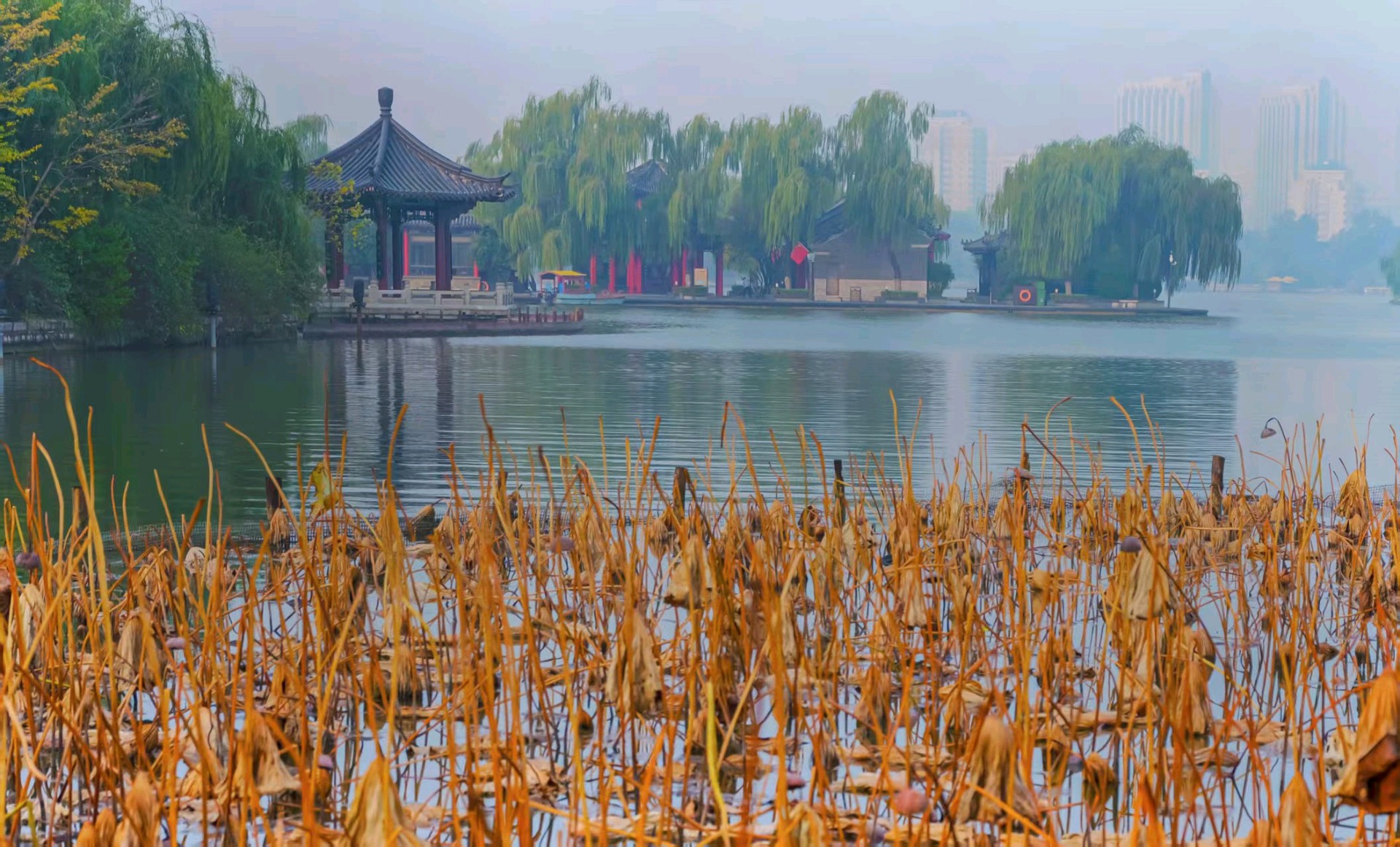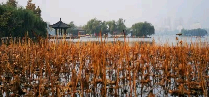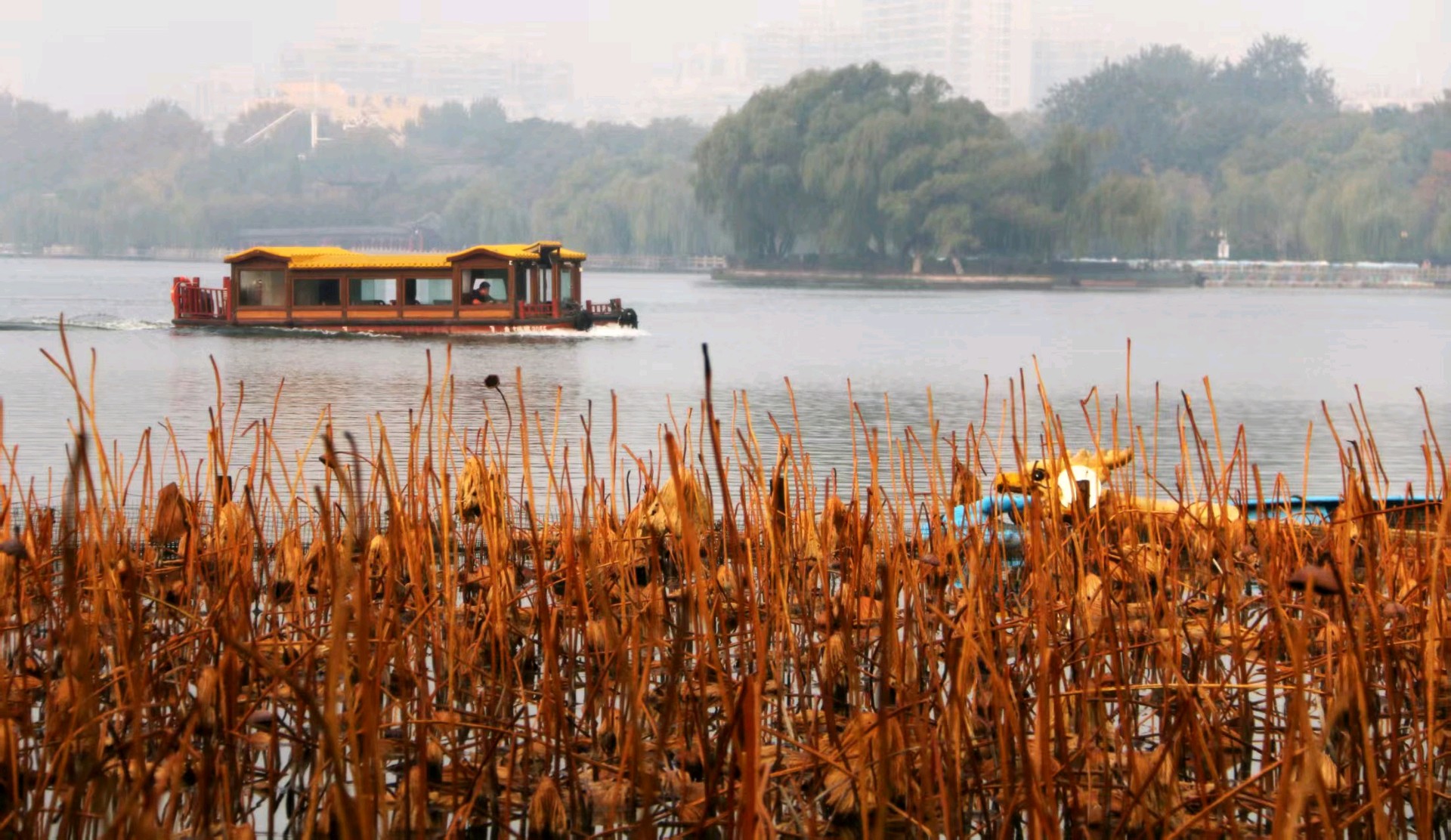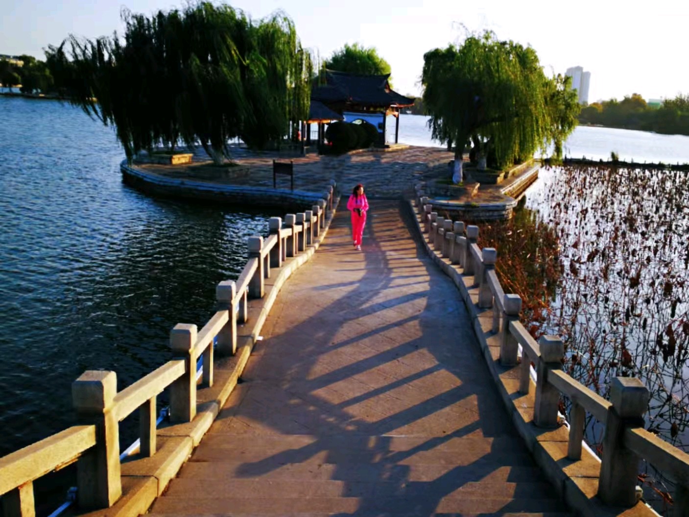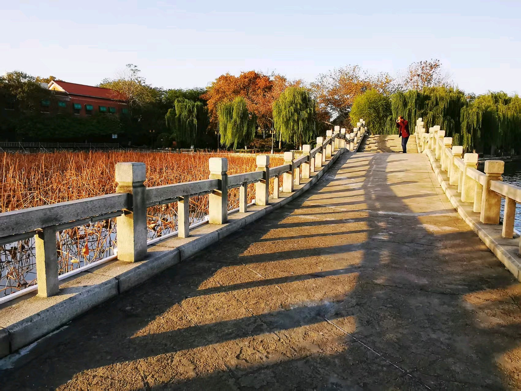 鹊华桥的石栏与远处的湖光山色相映,游人在桥上凭栏眺望,看澄澈的湖水在微风里漾开轻柔的涟漪。