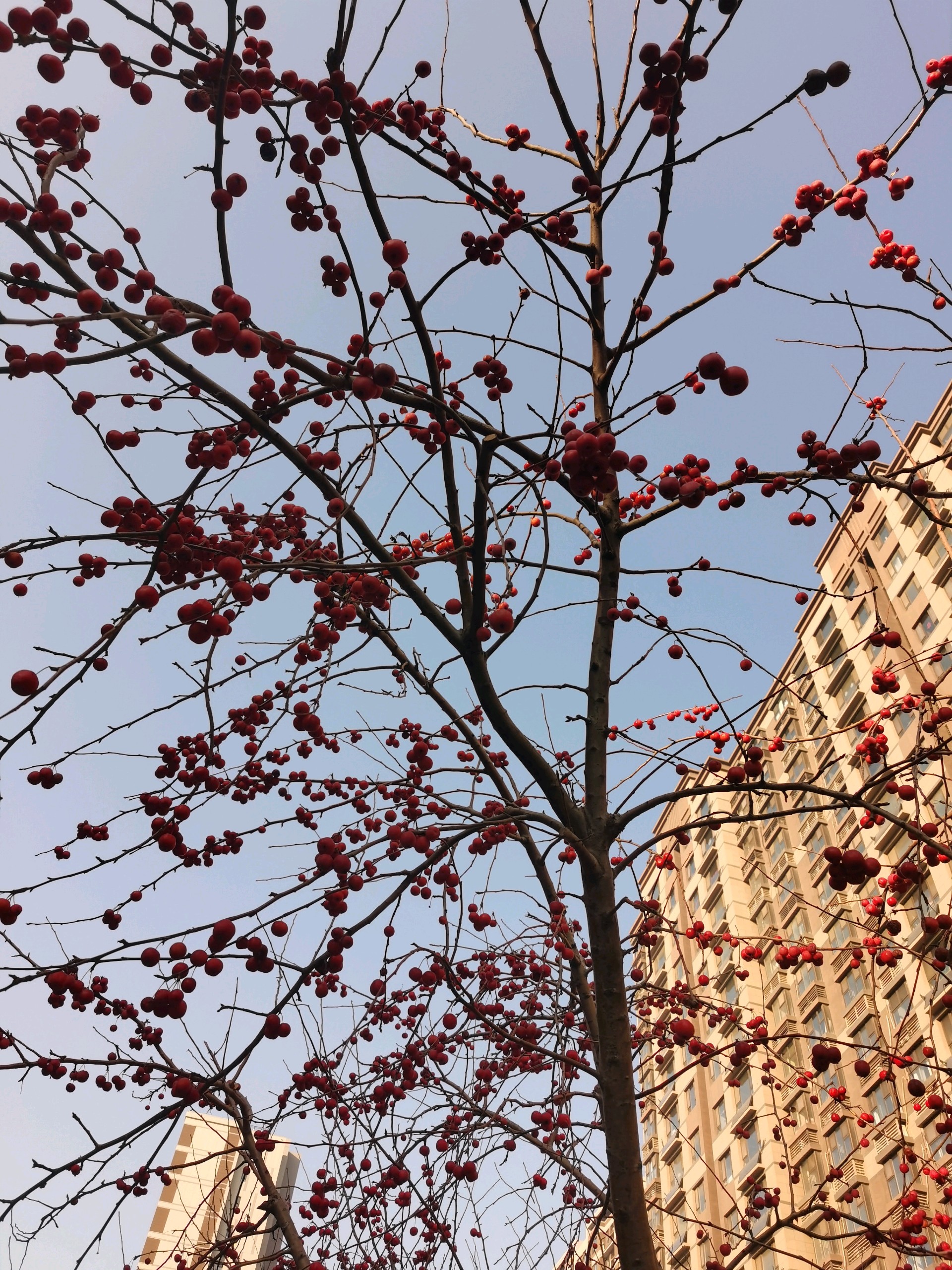 今天上午,在小区里随便走走,小区里的海棠树上,依旧果实累累满枝头,在这萧瑟枯树枝占主导的冬天,显得格外耀眼。发现美好,记录生活,随手一拍,留住冬天的美景。