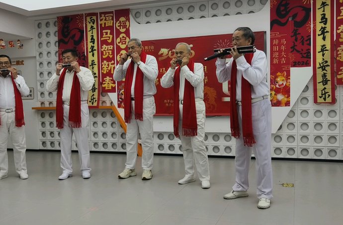 上午的活动,在欢腾的《东北的冬东北的情》舞蹈中拉开热烈序幕。随后,口琴重奏用经典旋律《掀起你的盖头来》《达坂城的姑娘》带来了轻松的韵律。群口快板《遵守交通法规保平安》则将实用知识与艺术形式巧妙结合,寓教于乐。