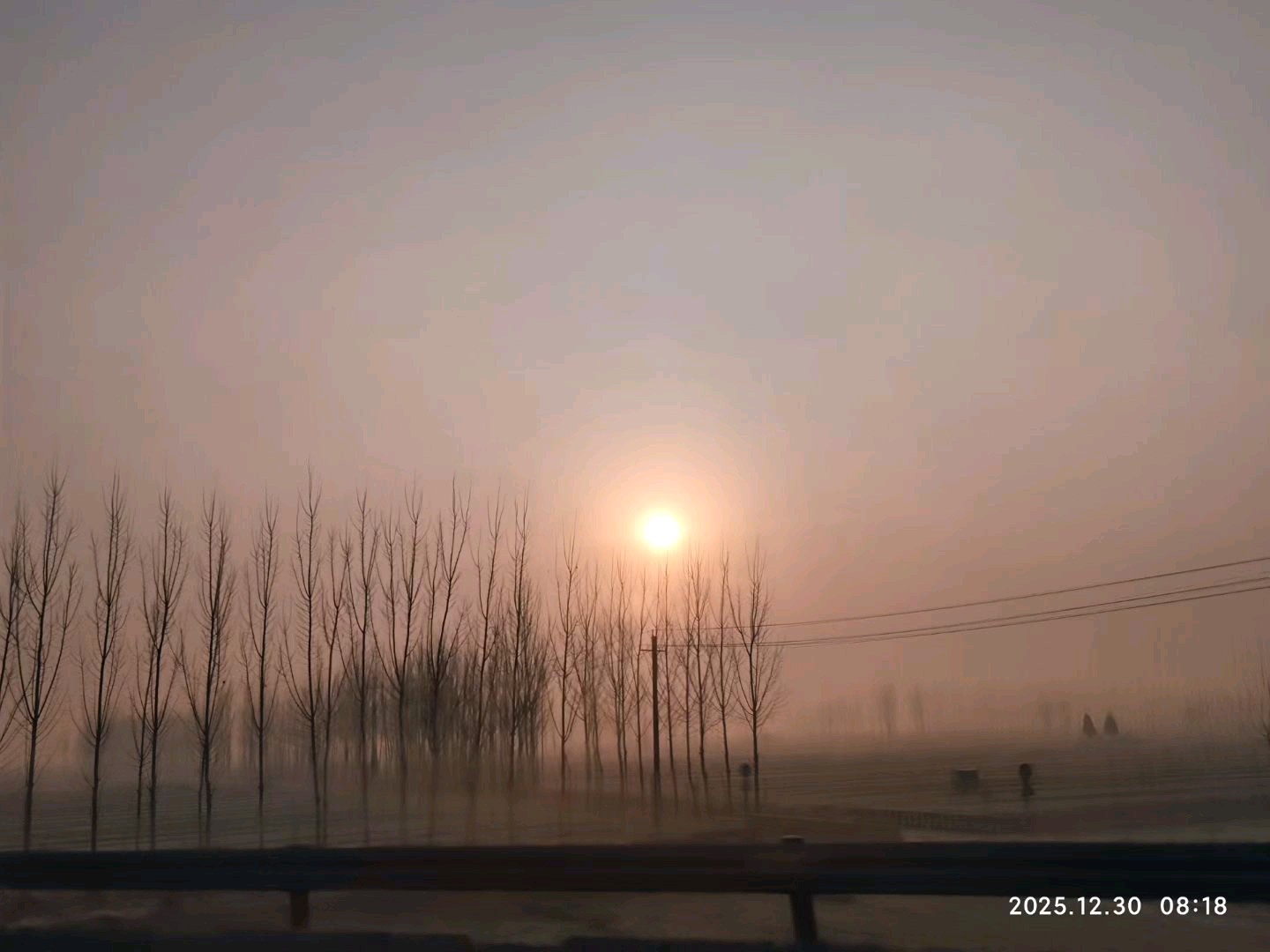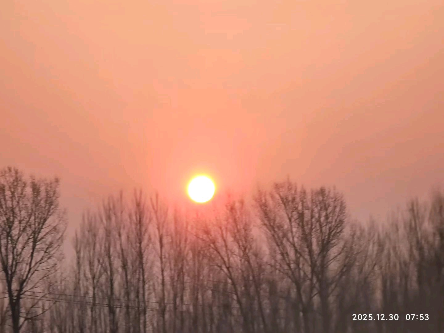 早晨的太阳冉冉升起,给寒冷的冬天带来温暖。