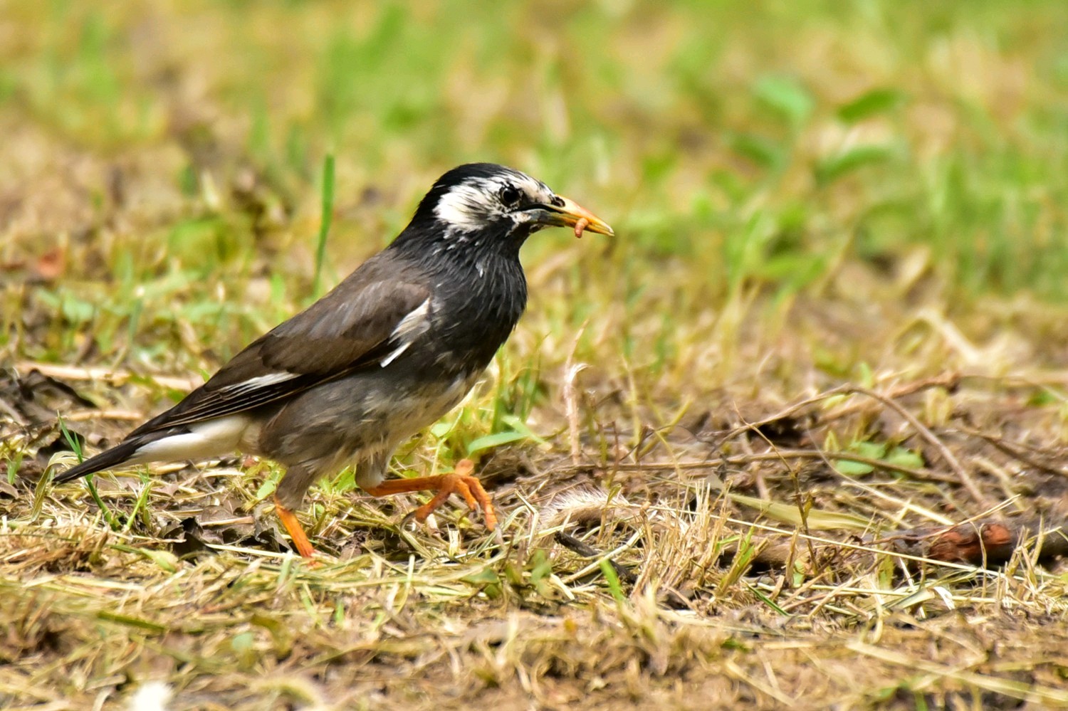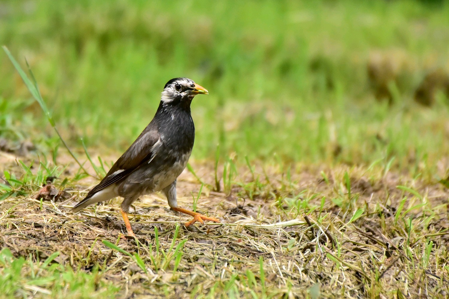 灰椋鸟是雀形目椋鸟科椋鸟属鸟类动物。其体长约20厘米,体羽大部分灰褐色;头顶和后颈黑色,前额和头侧白色,带有黑纹;喉和上胸灰黑色,雄鸟羽色较雌鸟深,头部黑色,头侧白色杂以黑纹,头顶具铜绿色光泽,并有一道白斑,除中央尾羽外,其余羽毛先端均具有白斑。灰椋鸟栖息于低山丘陵至平原的疏林、草甸或农田,常在草地、农田等开阔地上觅食,休息时栖于电线或枯枝上。灰椋鸟主食毛虫、蚂蚁、蛇、蜂、蝗虫和甲虫等,秋冬季也吃多种植物种实。