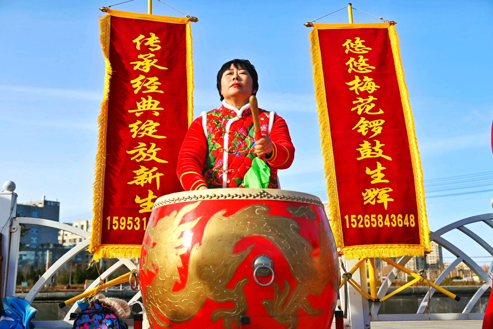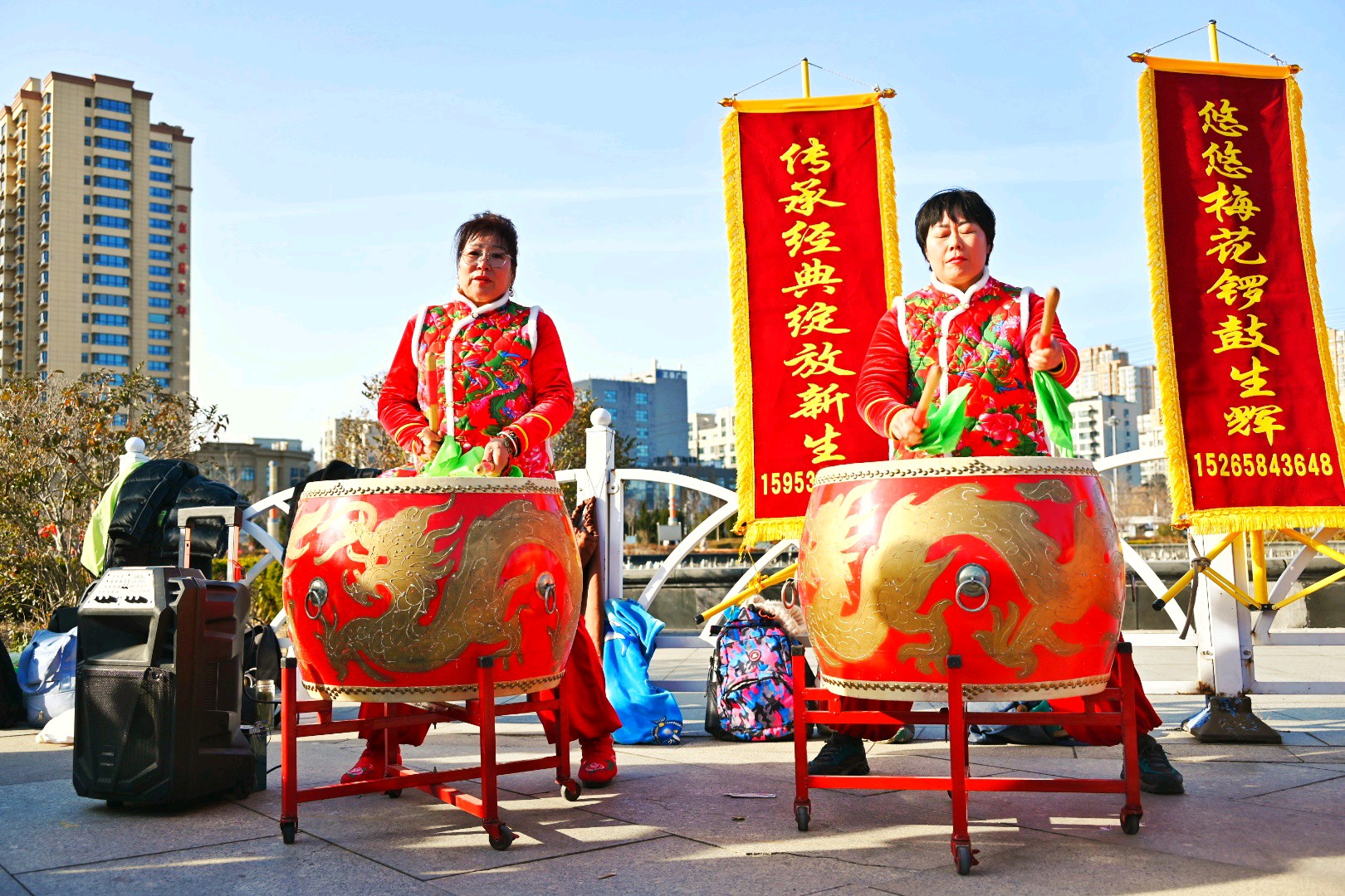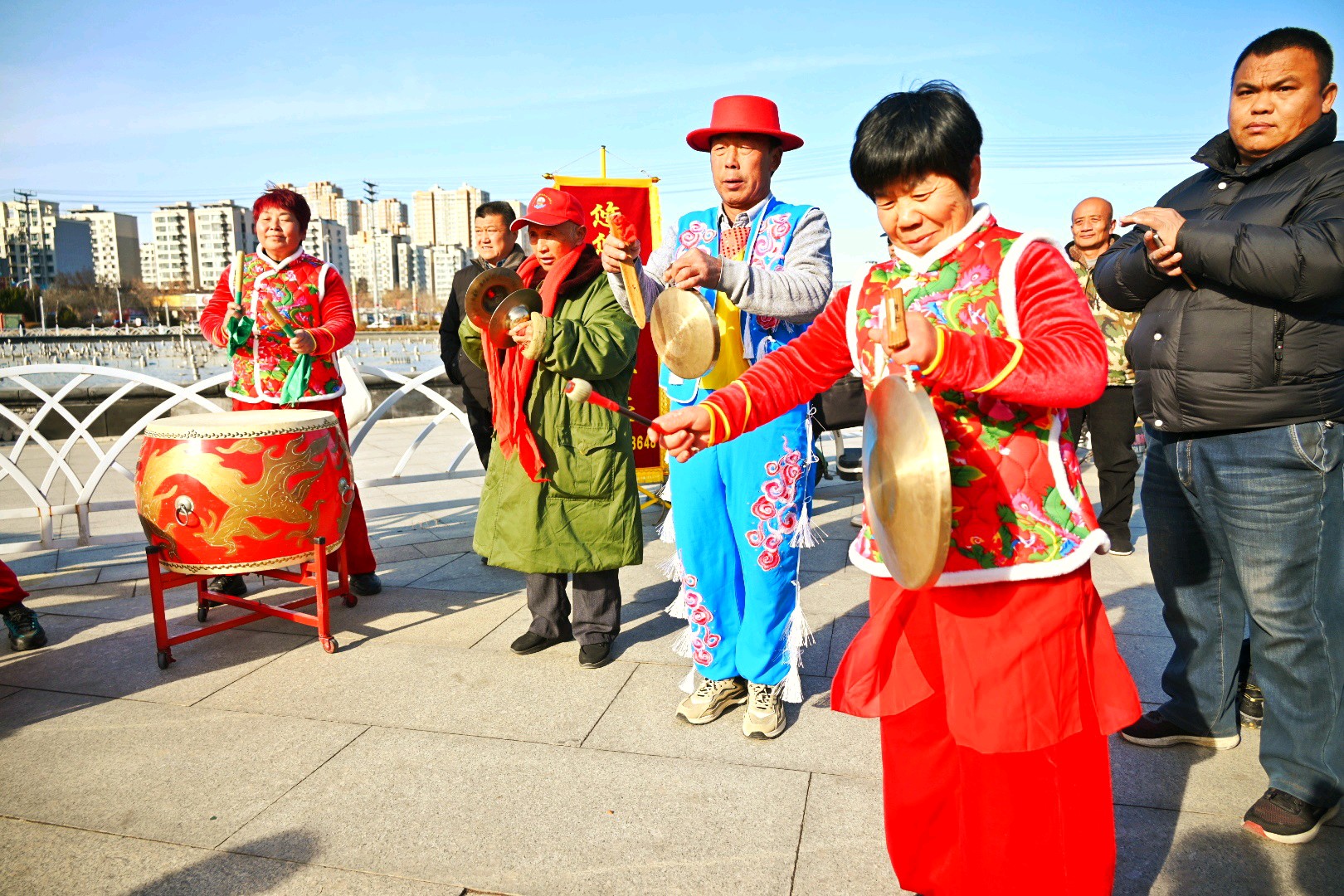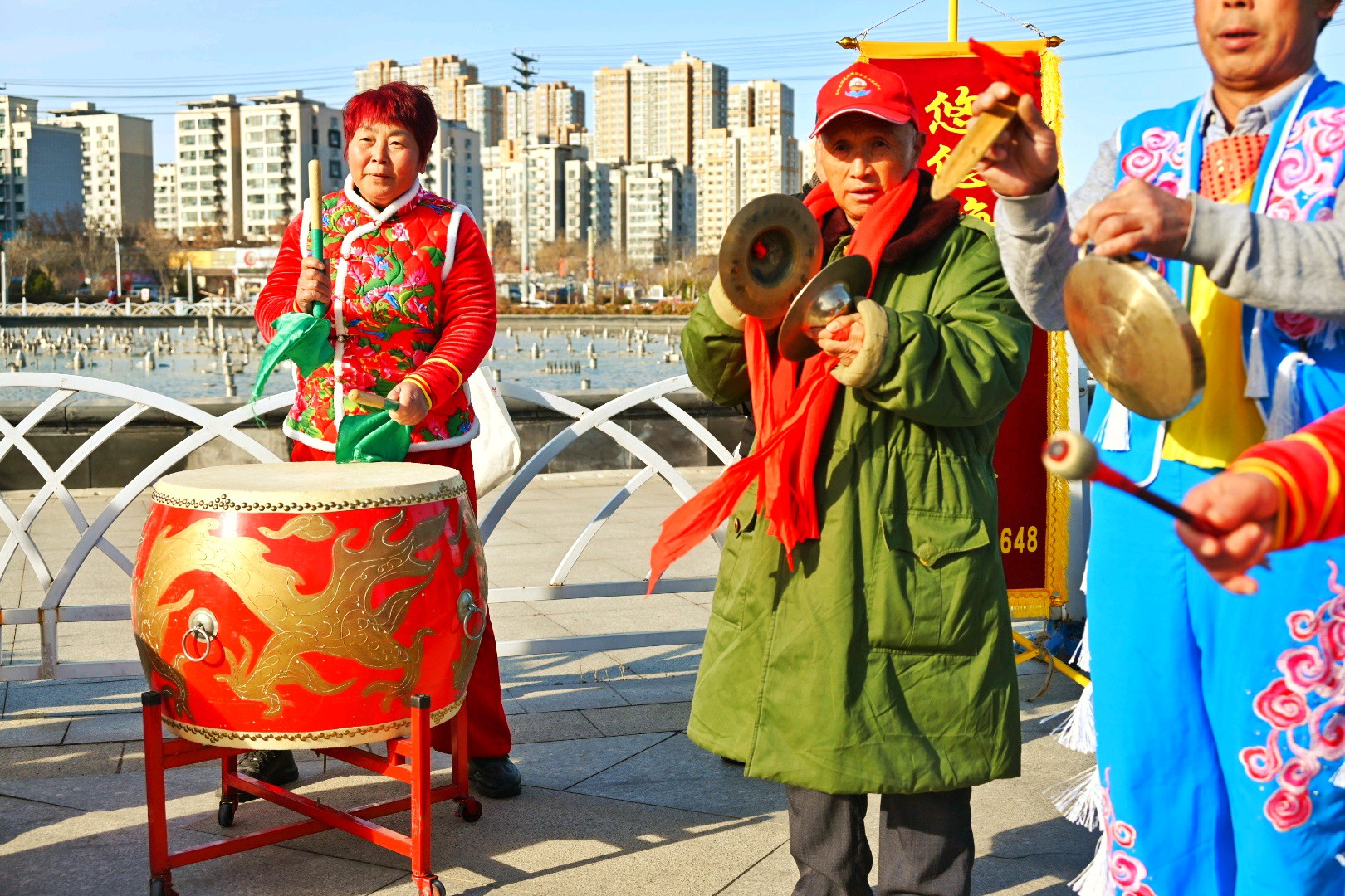 济南到济阳的轨道交通通车后,更极大的方便了黄河两岸市民的交往,众多的民间艺术团体纷纷坐着轻轨,来济阳文化广场献艺;这不,济南市”梅花锣鼓“传承人艺术团,一大早就来到了这里,震天的锣鼓响声,吸引了许多市民冒着严寒前来观看演出。文字/秦臻 摄影/张成友