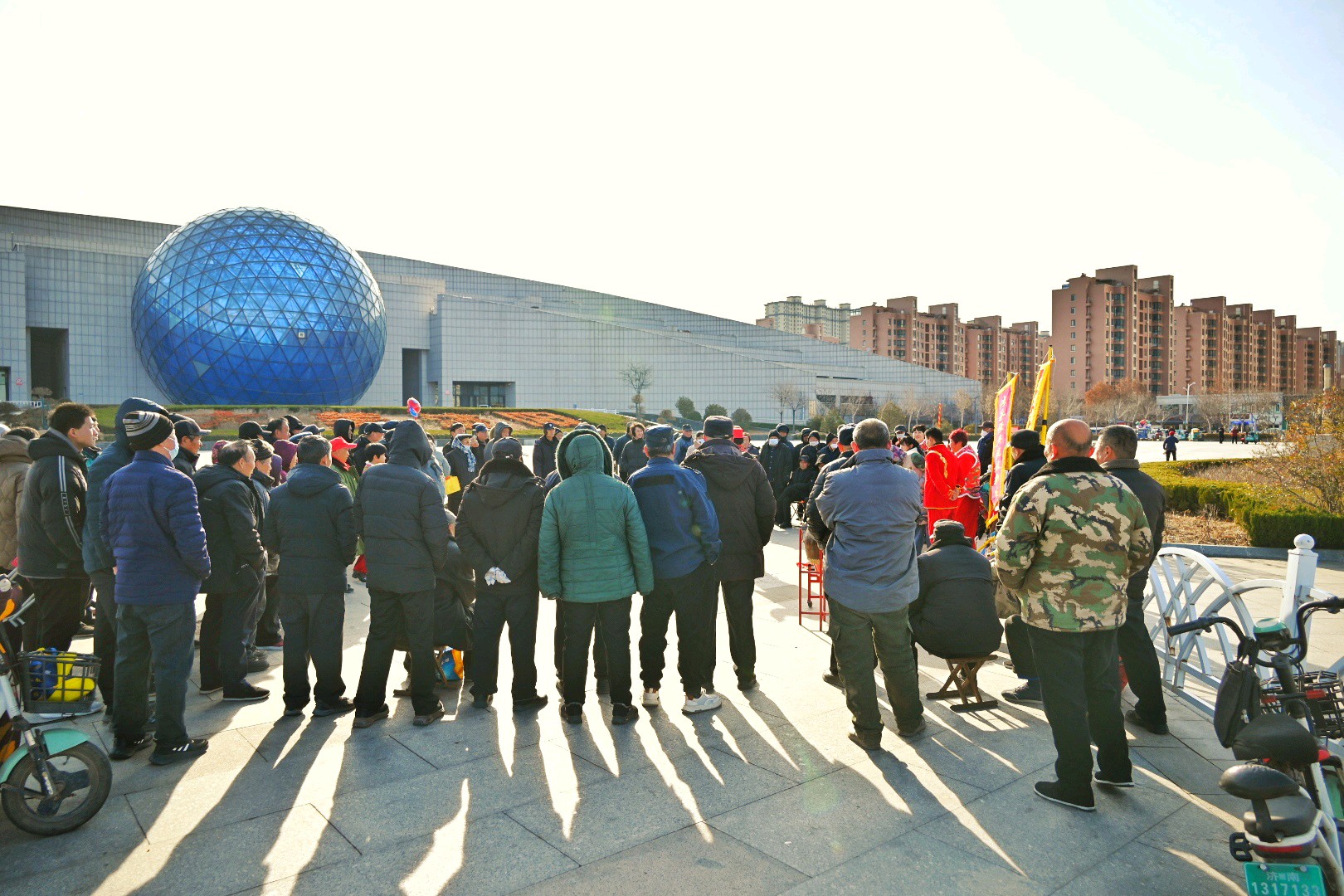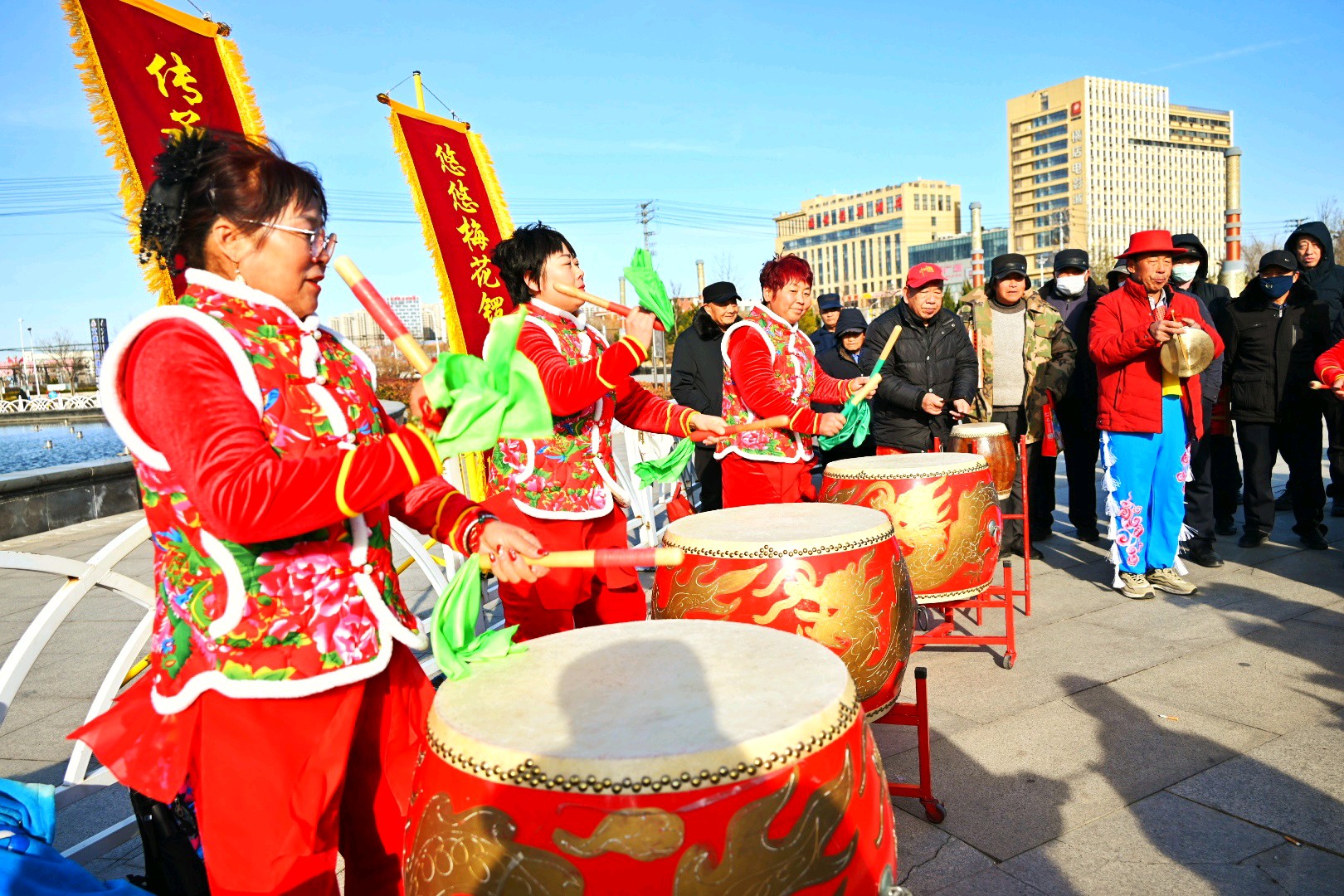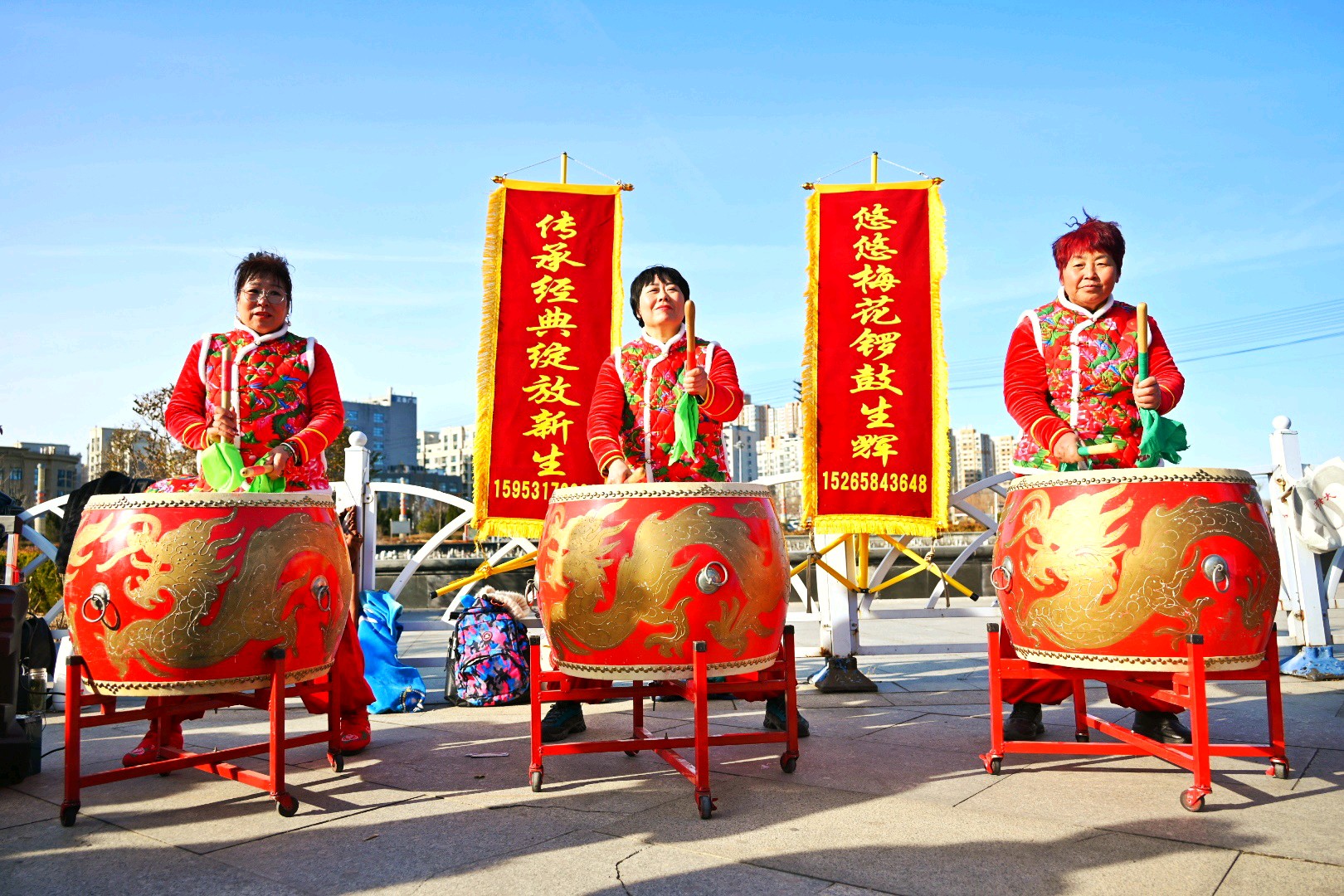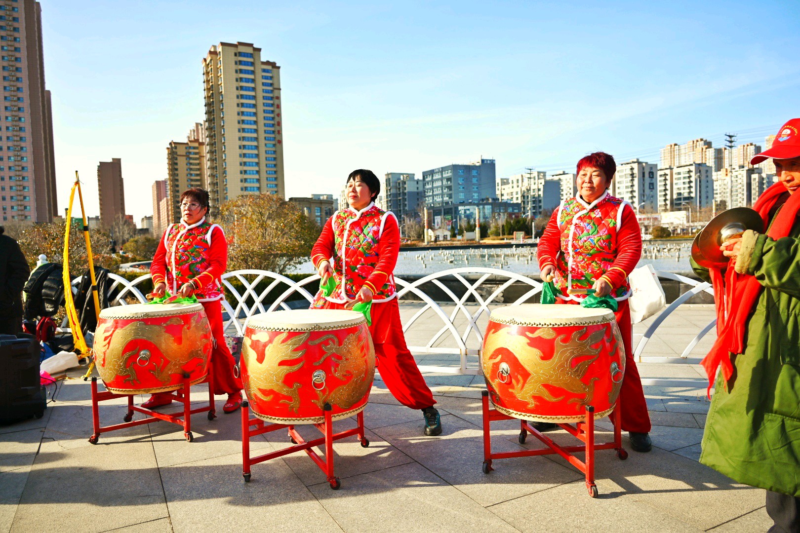 济南到济阳的轨道交通通车后,更极大的方便了黄河两岸市民的交往,众多的民间艺术团体纷纷坐着轻轨,来济阳文化广场献艺;这不,济南市”梅花锣鼓“传承人艺术团,一大早就来到了这里,震天的锣鼓响声,吸引了许多市民冒着严寒前来观看演出。文字/秦臻 摄影/张成友