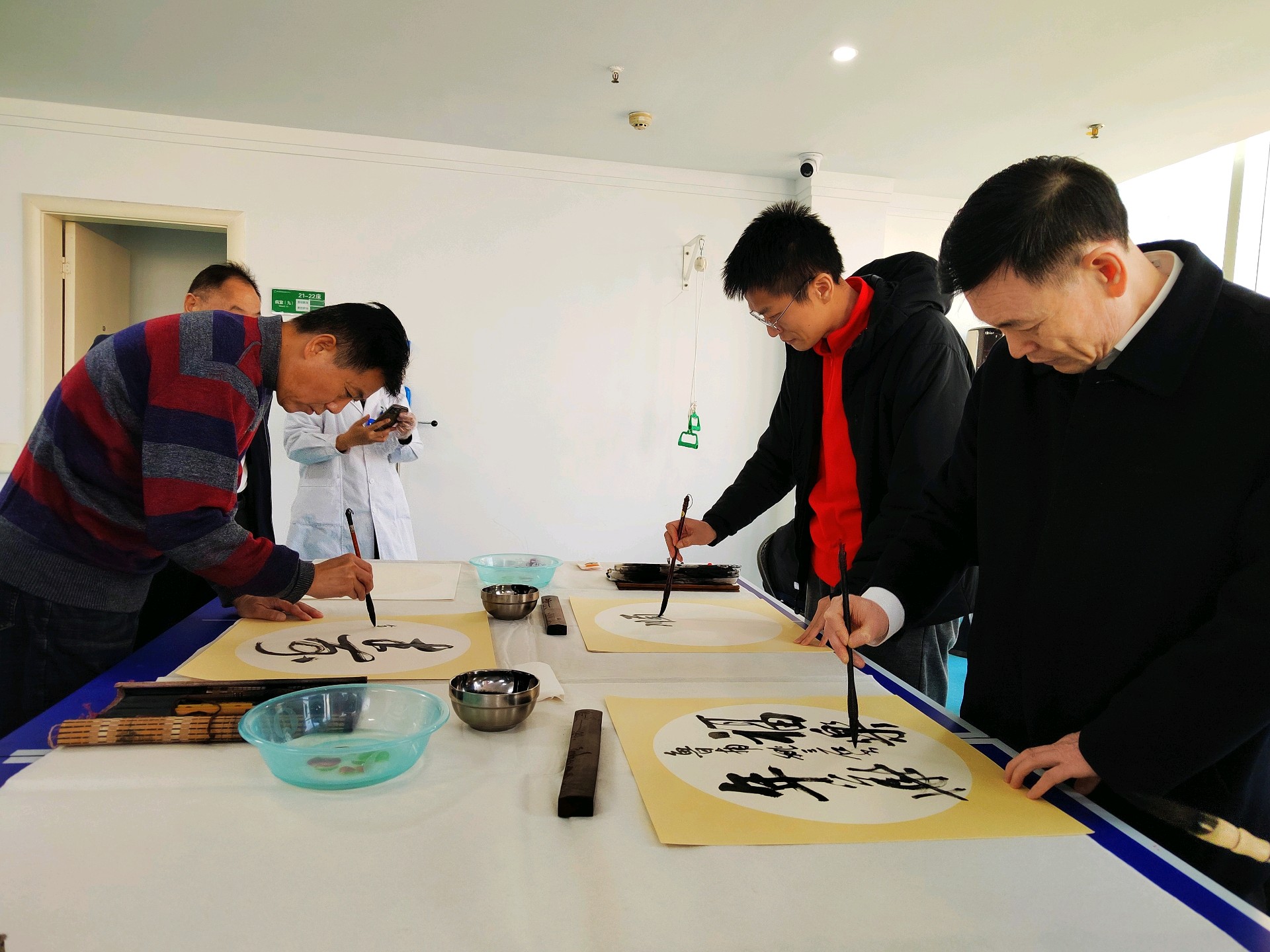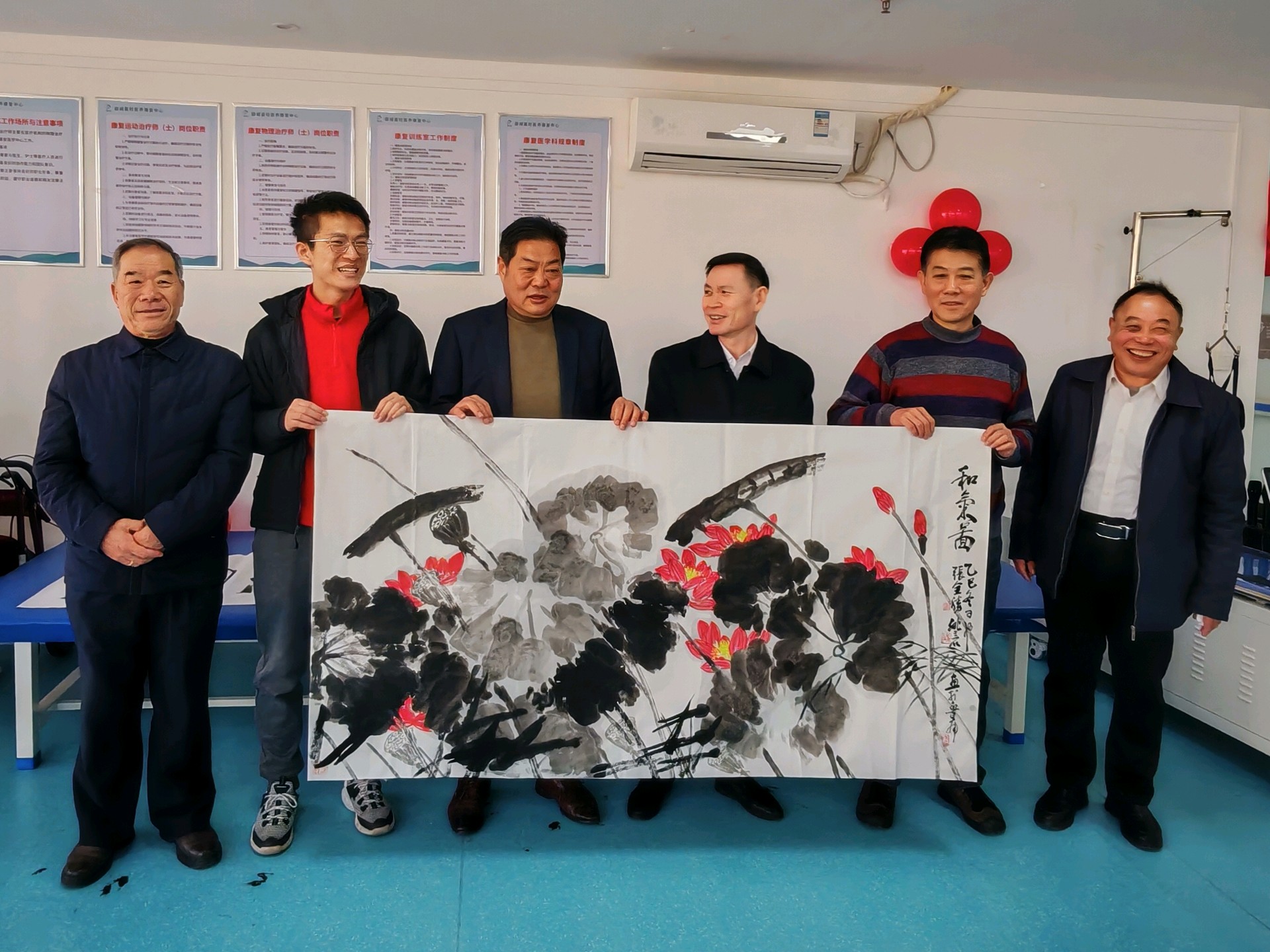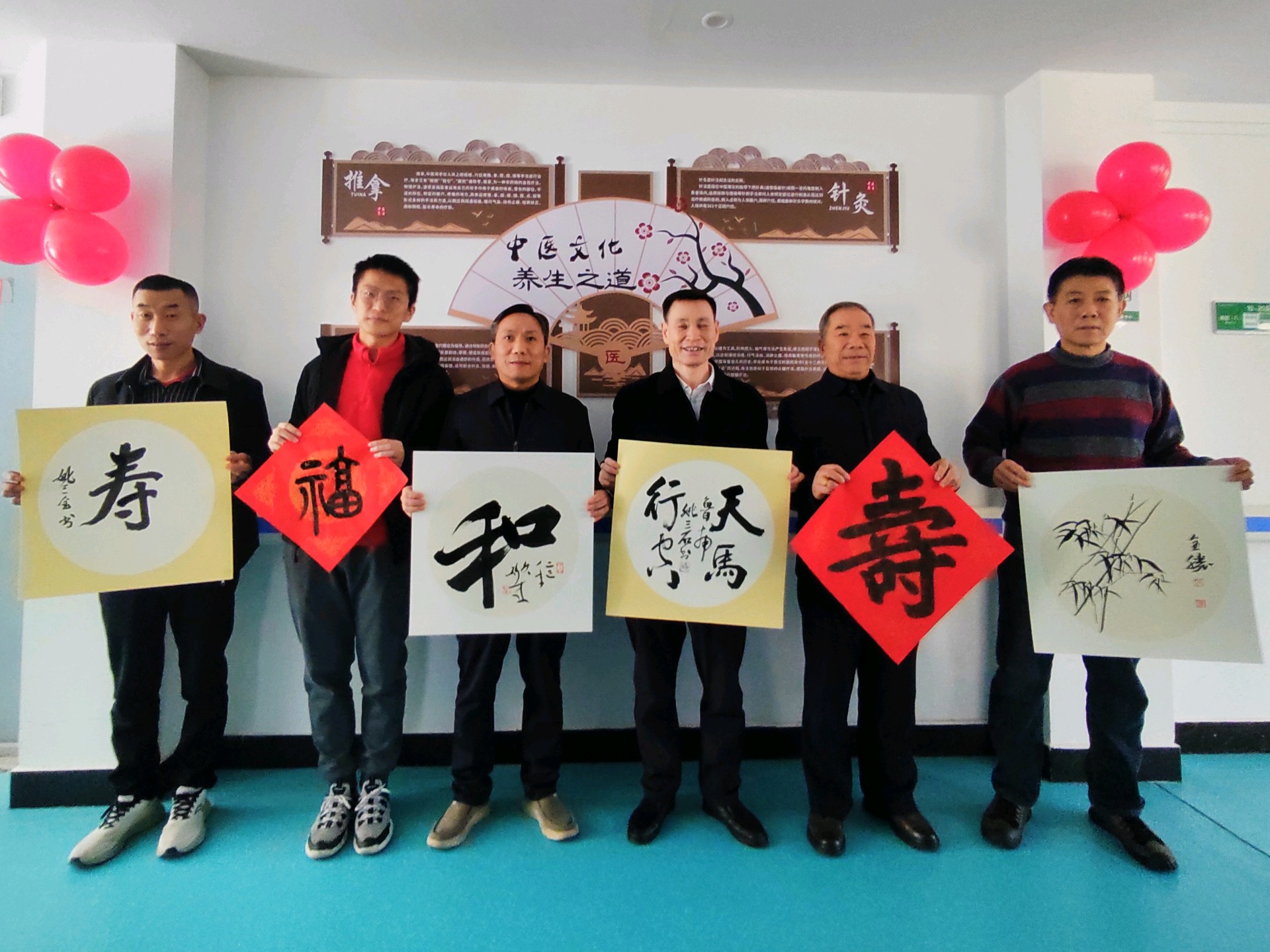 中国大众文化学会原副秘书长、民革枣庄中山书画院院长姚三石带领王新来、张全胜、张富、姚鑫等五位知名书画家,山东省非遗人灯舞传承人张磊,山东嘉旺医院管理有限公司董事长李宗季,与企业人员、院区老年群体代表齐聚,以“参观+座谈+笔会”形式共庆元旦,为医养生活添文化暖意。
