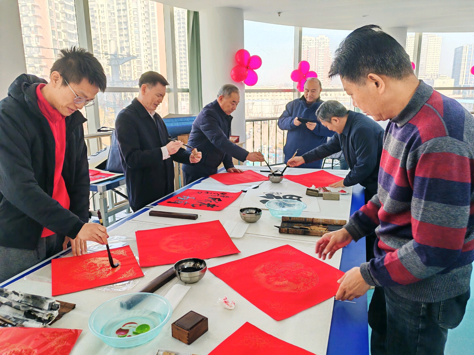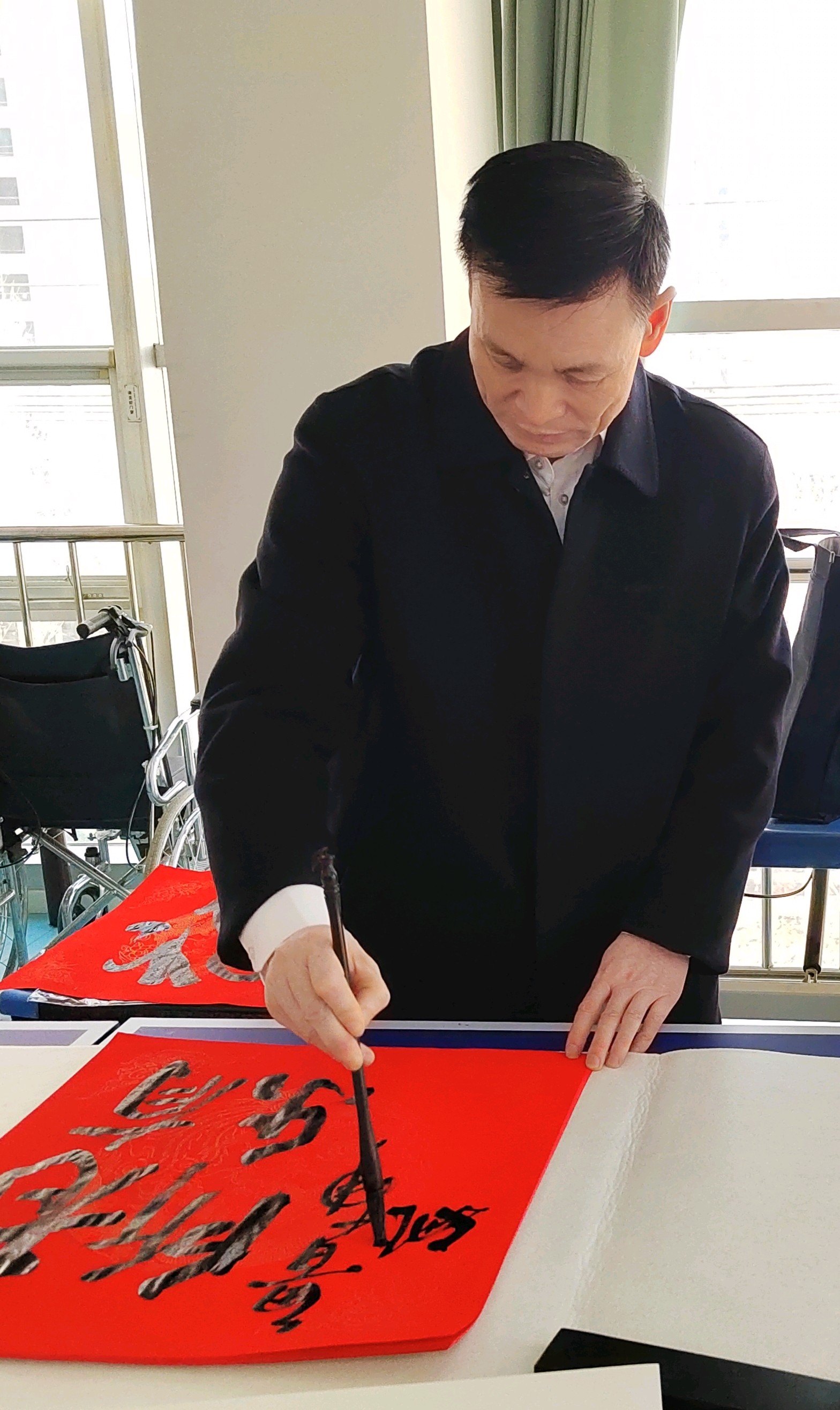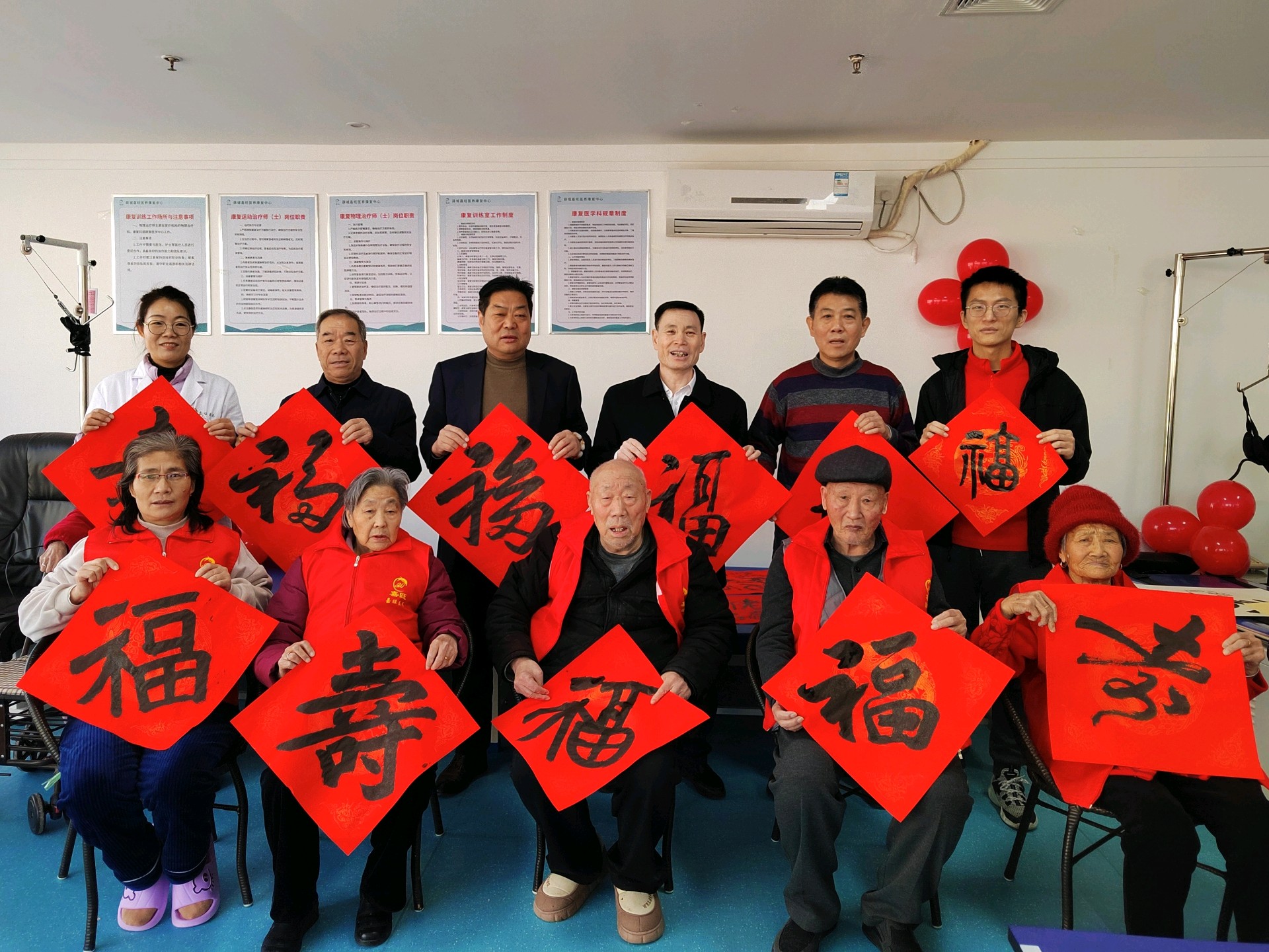 中国大众文化学会原副秘书长、民革枣庄中山书画院院长姚三石带领王新来、张全胜、张富、姚鑫等五位知名书画家,山东省非遗人灯舞传承人张磊,山东嘉旺医院管理有限公司董事长李宗季,与企业人员、院区老年群体代表齐聚,以“参观+座谈+笔会”形式共庆元旦,为医养生活添文化暖意。