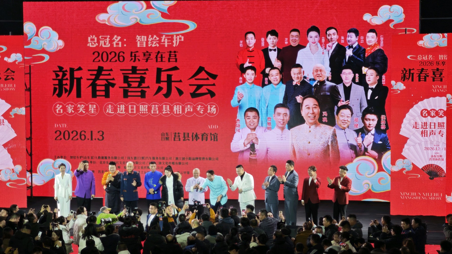 1月3日晚,“2026乐享在莒新春喜乐会”相声专场在莒县体育馆圆满落幕。冯巩、方清平、贾旭明等一众相声名家齐聚莒县,接连带来两场精彩演出,献上《数来宝》《吉祥的祝福》《礼仪漫谈》《我爱诗词》等十余个经典相声作品。演出中,演员们凭借扎实的功底、幽默的台词与生动的表演,多次将现场气氛推向高潮。台下观众互动热烈、笑声不断,在家门口尽享传统文化盛宴,深切感受相声艺术的独特魅力。此次专场演出也为新春佳节增添了浓厚的欢乐氛围。(冯爱霞)