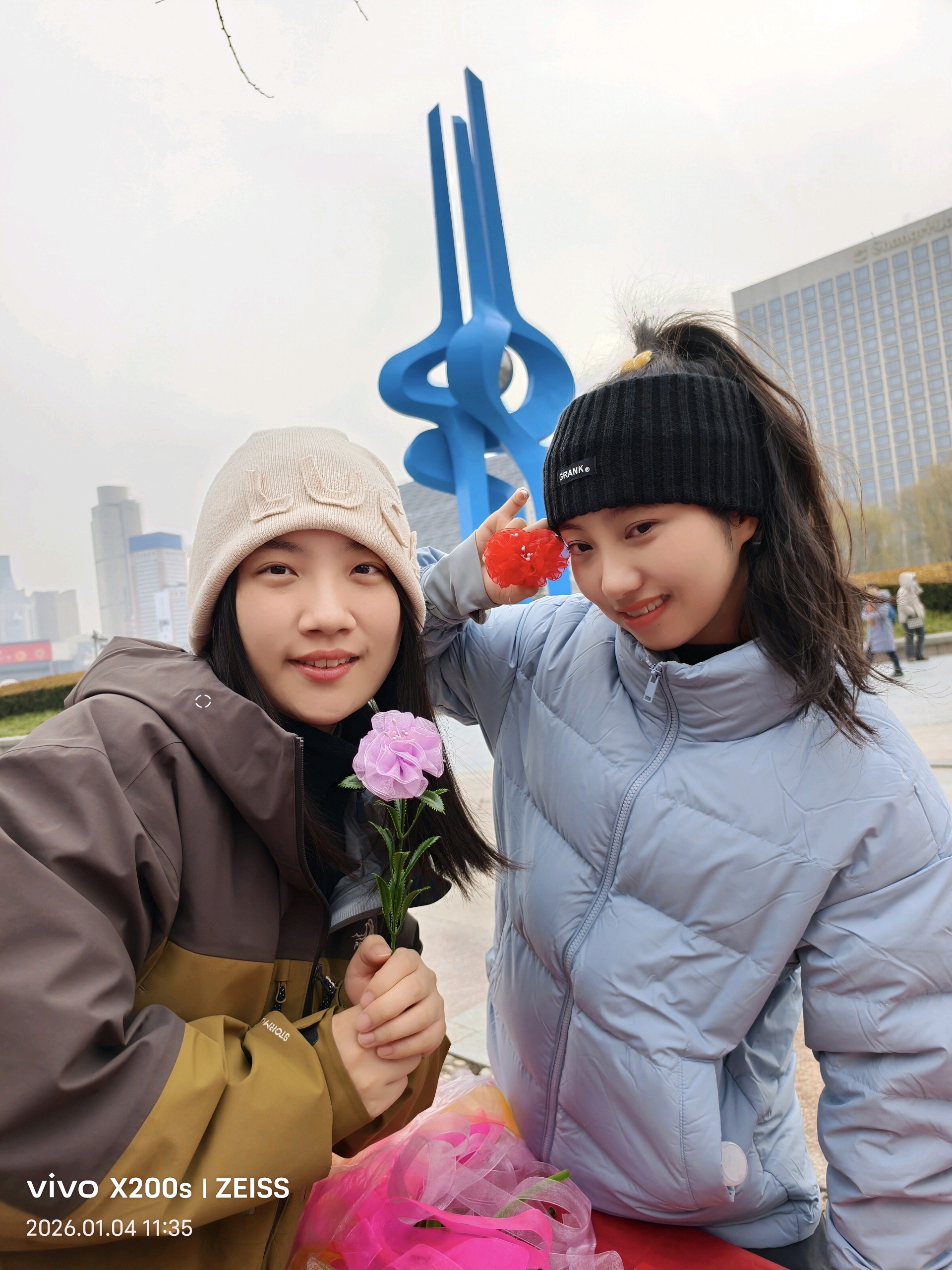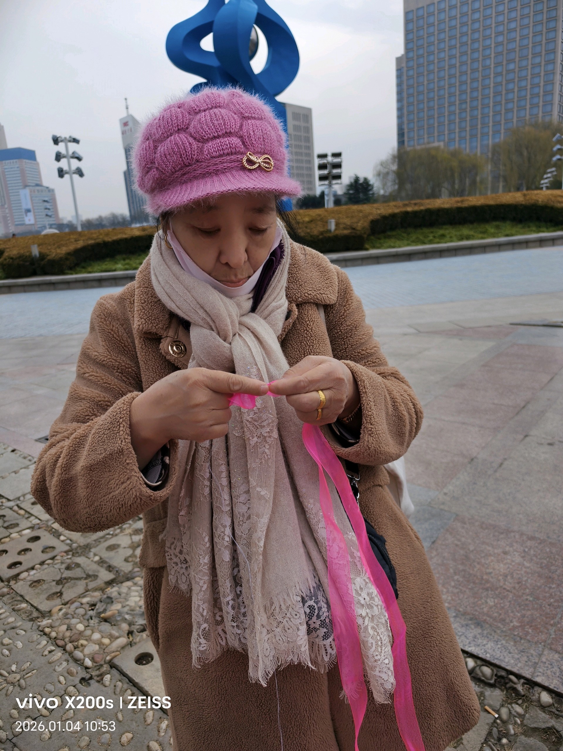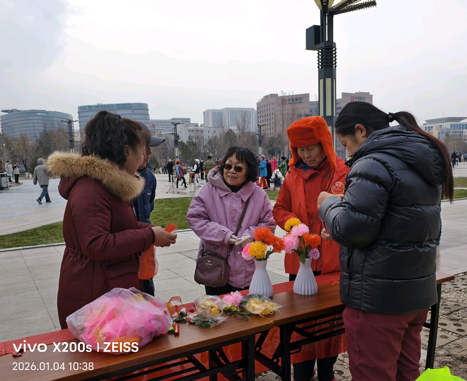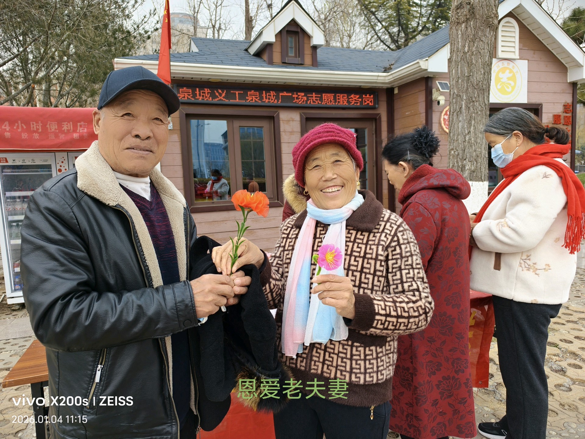 十佳泉城义工魏喜菊和马新华也来到现场,他们指导大家做绢花,俩位外地女大学生很快做成绢花,无比兴福,拍照留念;几位老人,完成第一朵作品时,脸上绽放的成就感和满足笑容,便是冬日里最暖的风景。