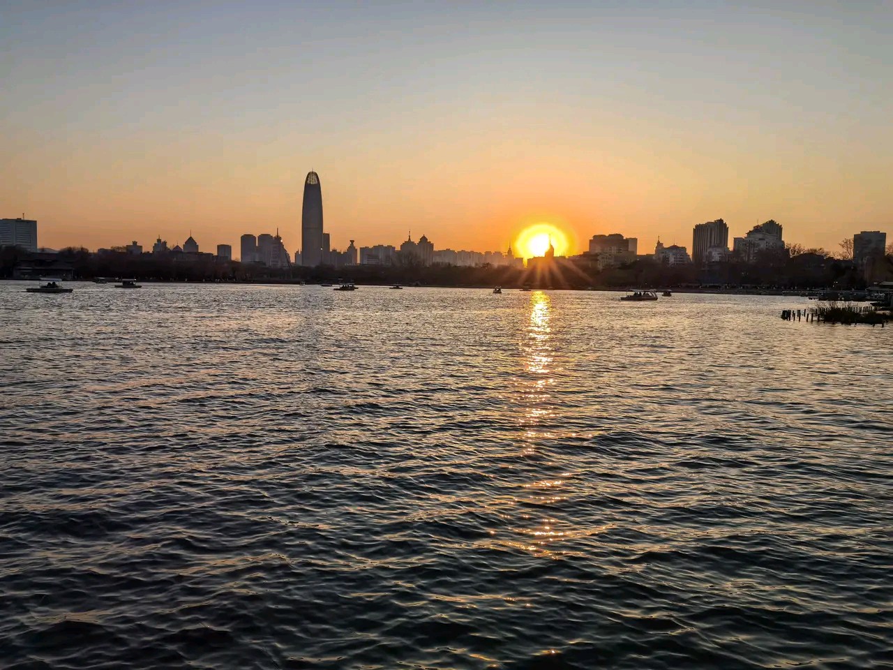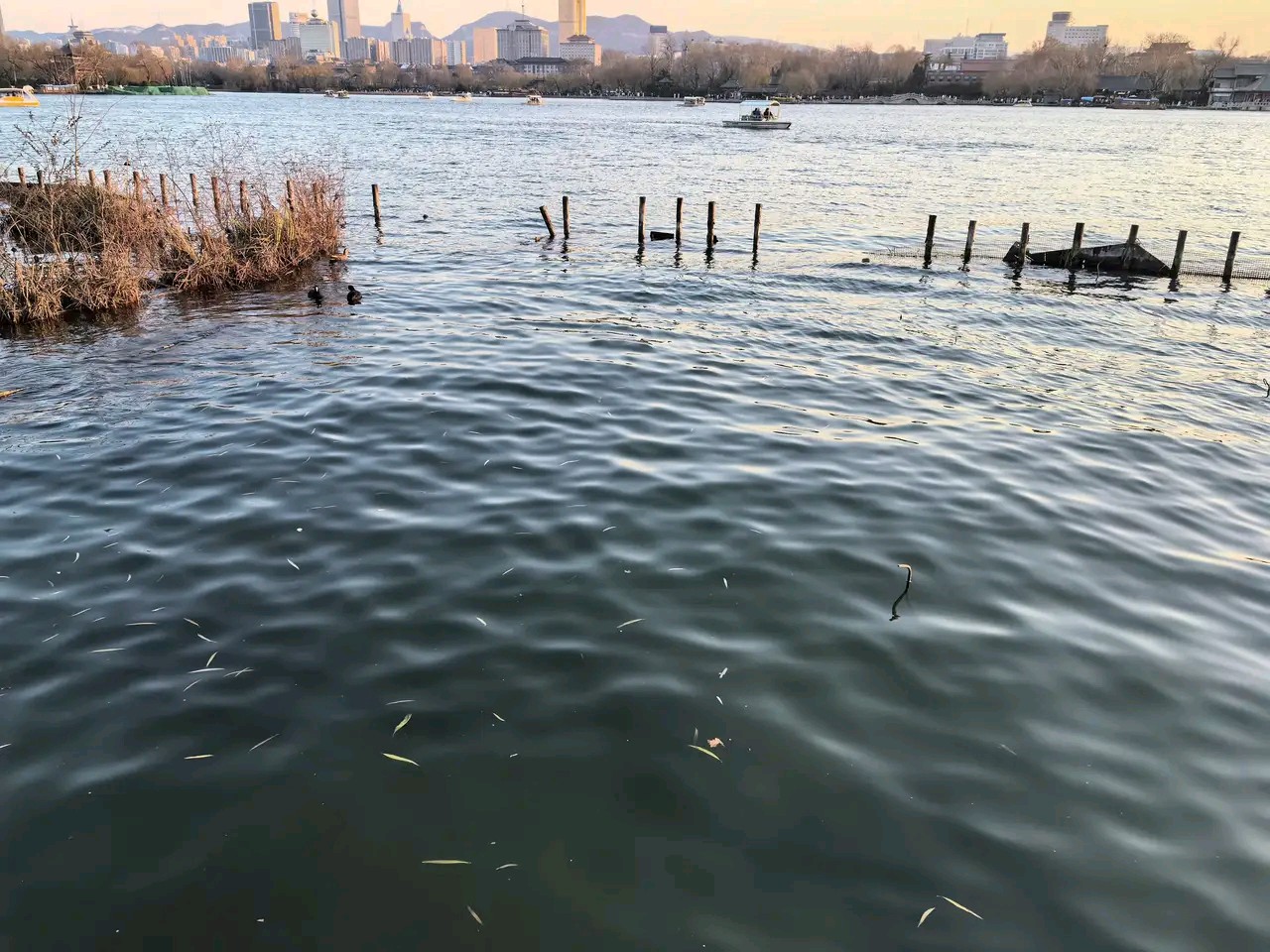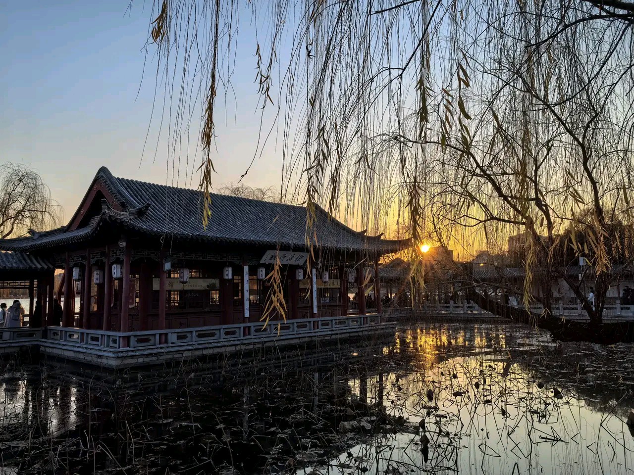 冬天的大明湖却是静谧的,夕阳下金色湖水在轻轻地荡漾风景优美真漂亮!