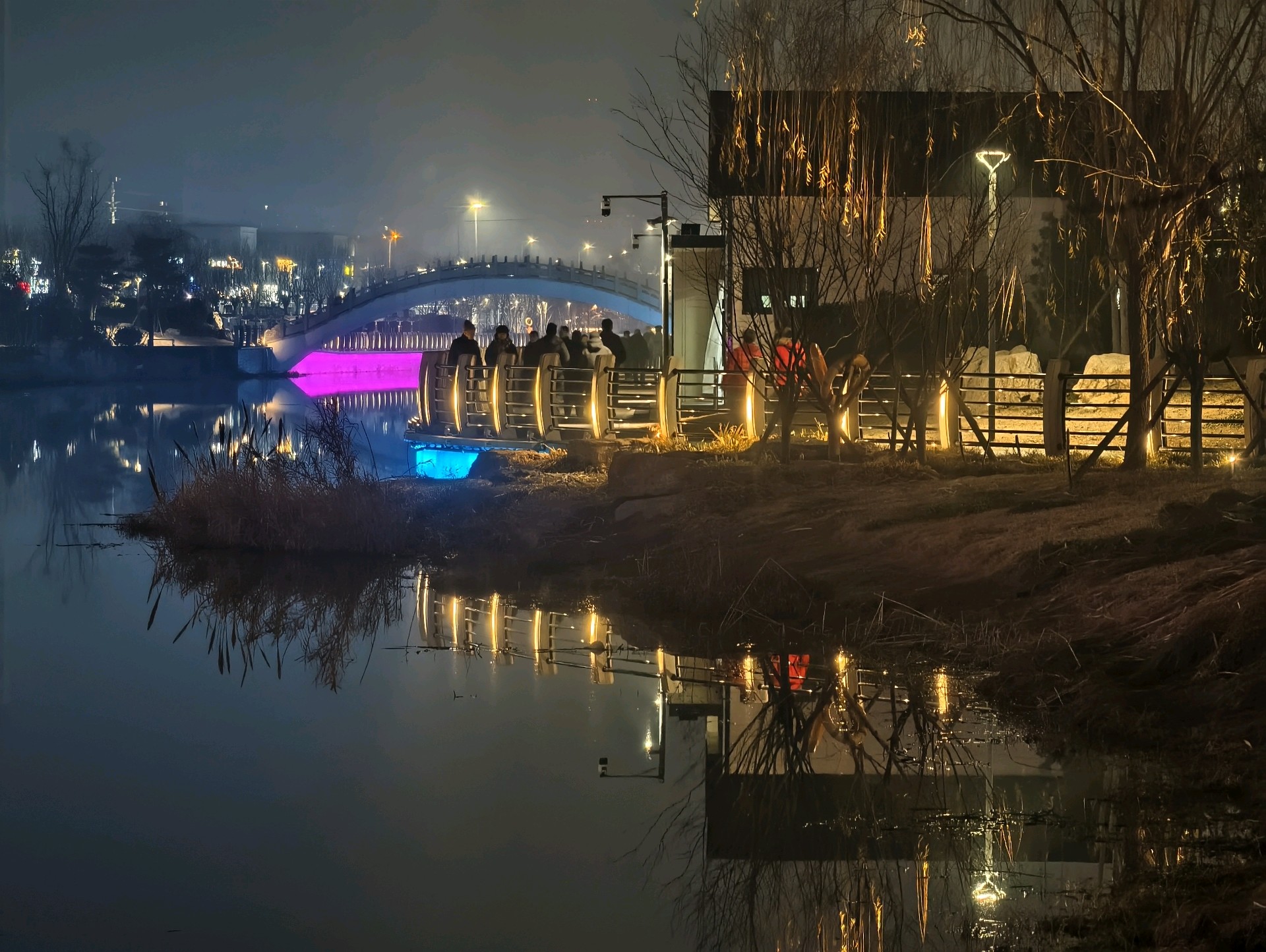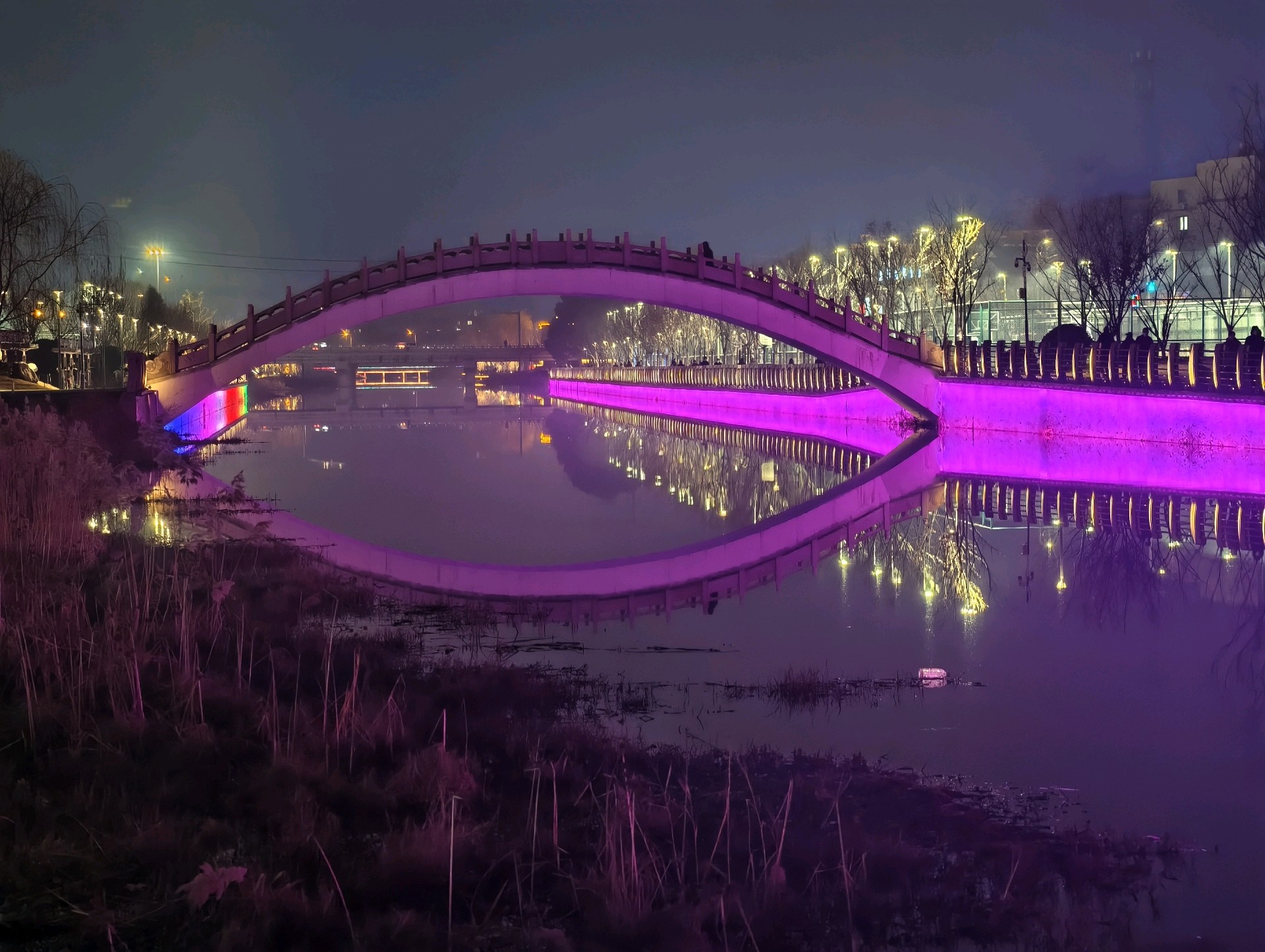 山东枣庄:小沙河夜景怡人2026年1月4日晚,山东枣庄市薛城区小沙河畔,七彩灯光勾勒出拱桥的优美弧线,桥影倒映在平静的水面上,与岸边的灯火相映成趣。夜色中的小沙河,流光溢彩,成为市民休闲赏景的好去处,夜景怡人。(姚三石 摄影)