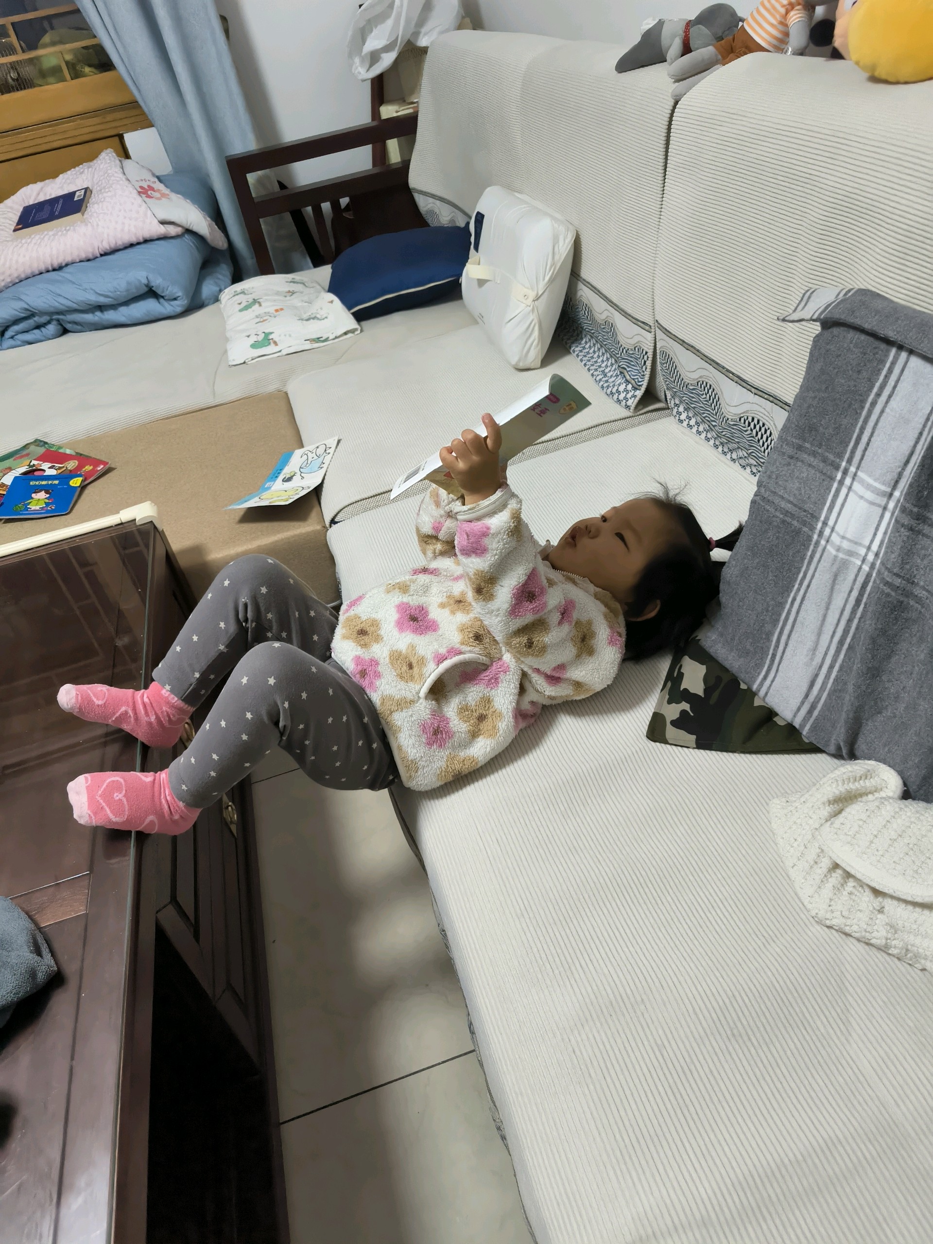 我家宝宝今年二岁二个月,特别爱读书。躺着坐着各种姿势,沉浸在读书的氛围里,傲游知识的海洋。