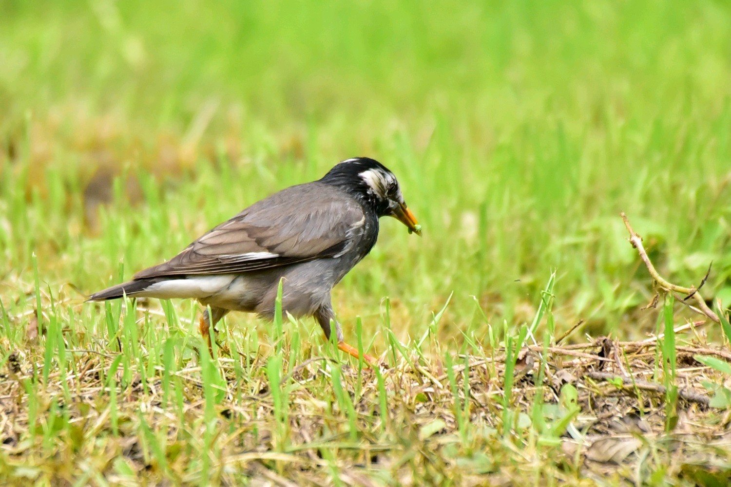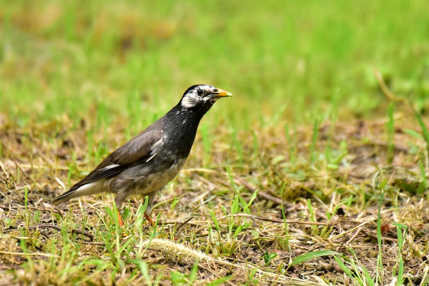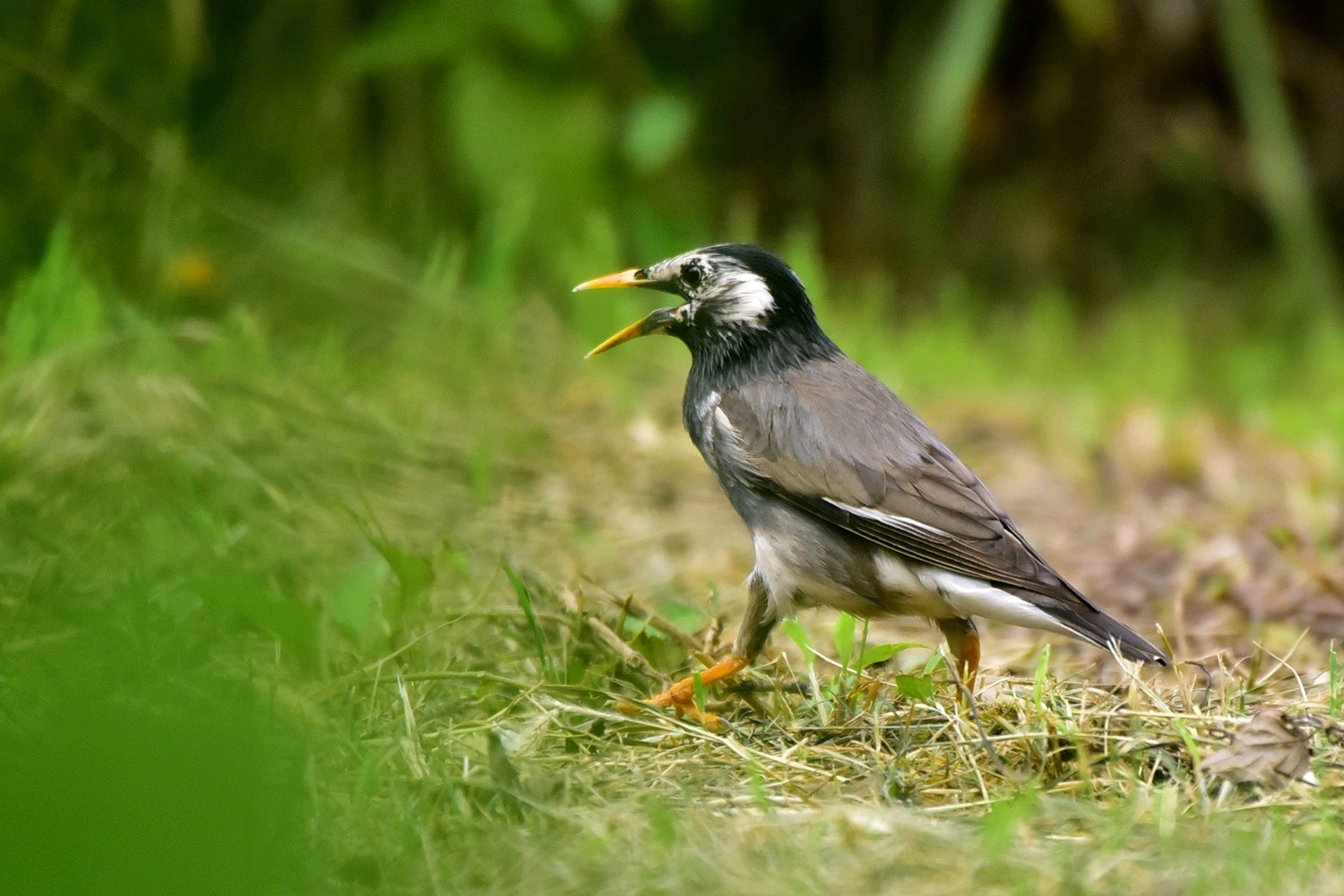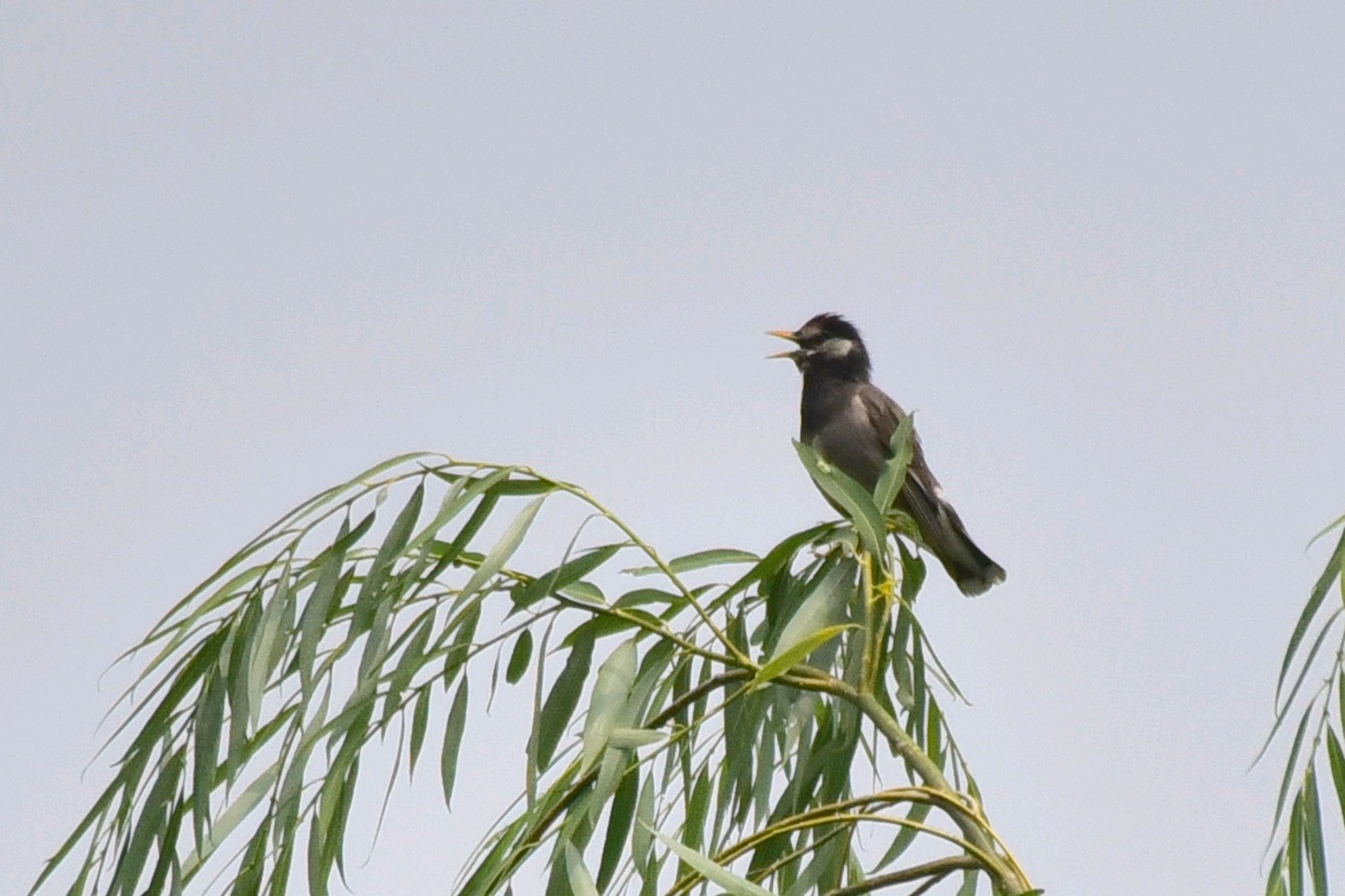 灰椋鸟是雀形目椋鸟科椋鸟属鸟类动物。其体长约20厘米,体羽大部分灰褐色;头顶和后颈黑色,前额和头侧白色,带有黑纹;喉和上胸灰黑色,雄鸟羽色较雌鸟深,头部黑色,头侧白色杂以黑纹,头顶具铜绿色光泽,并有一道白斑,除中央尾羽外,其余羽毛先端均具有白斑。灰椋鸟栖息于低山丘陵至平原的疏林、草甸或农田,常在草地、农田等开阔地上觅食,休息时栖于电线或枯枝上。灰椋鸟主食毛虫、蚂蚁、蛇、蜂、蝗虫和甲虫等,秋冬季也吃多种植物种实。