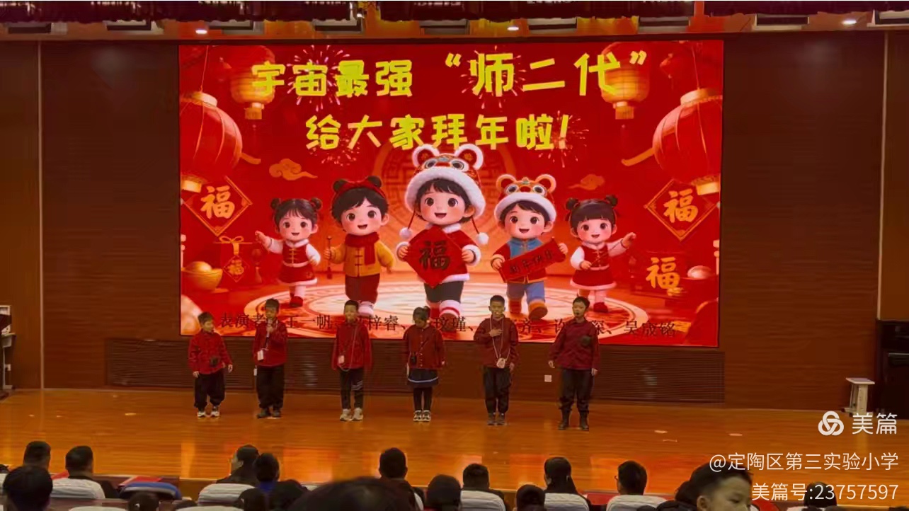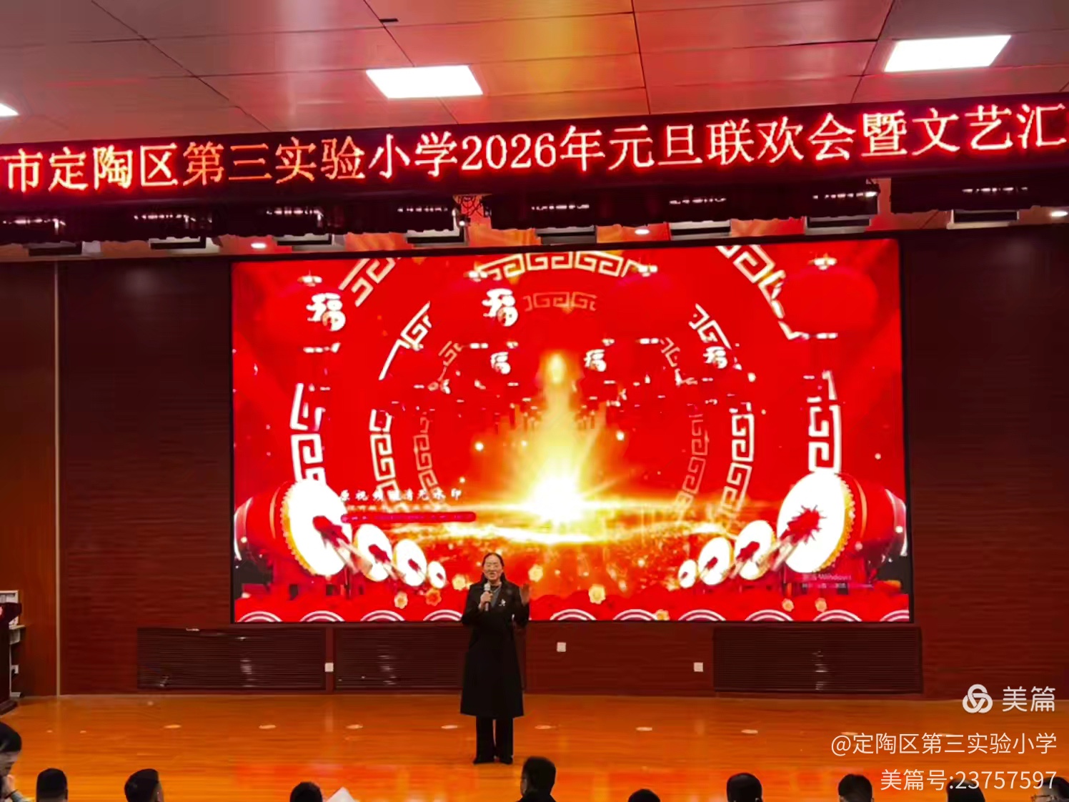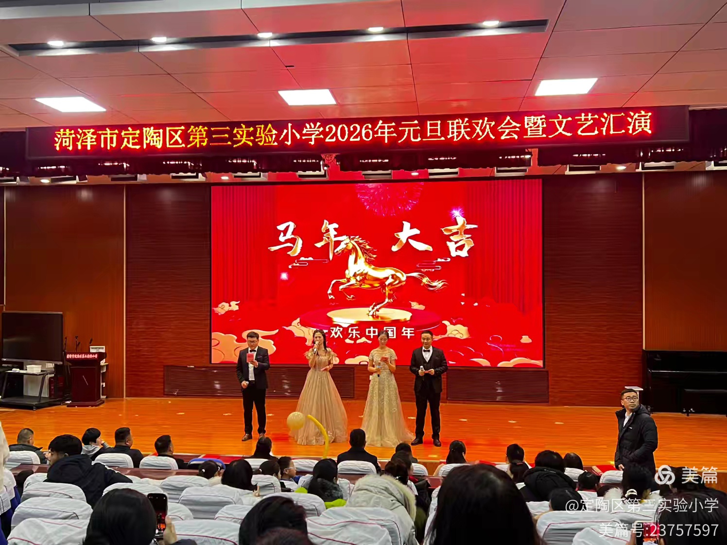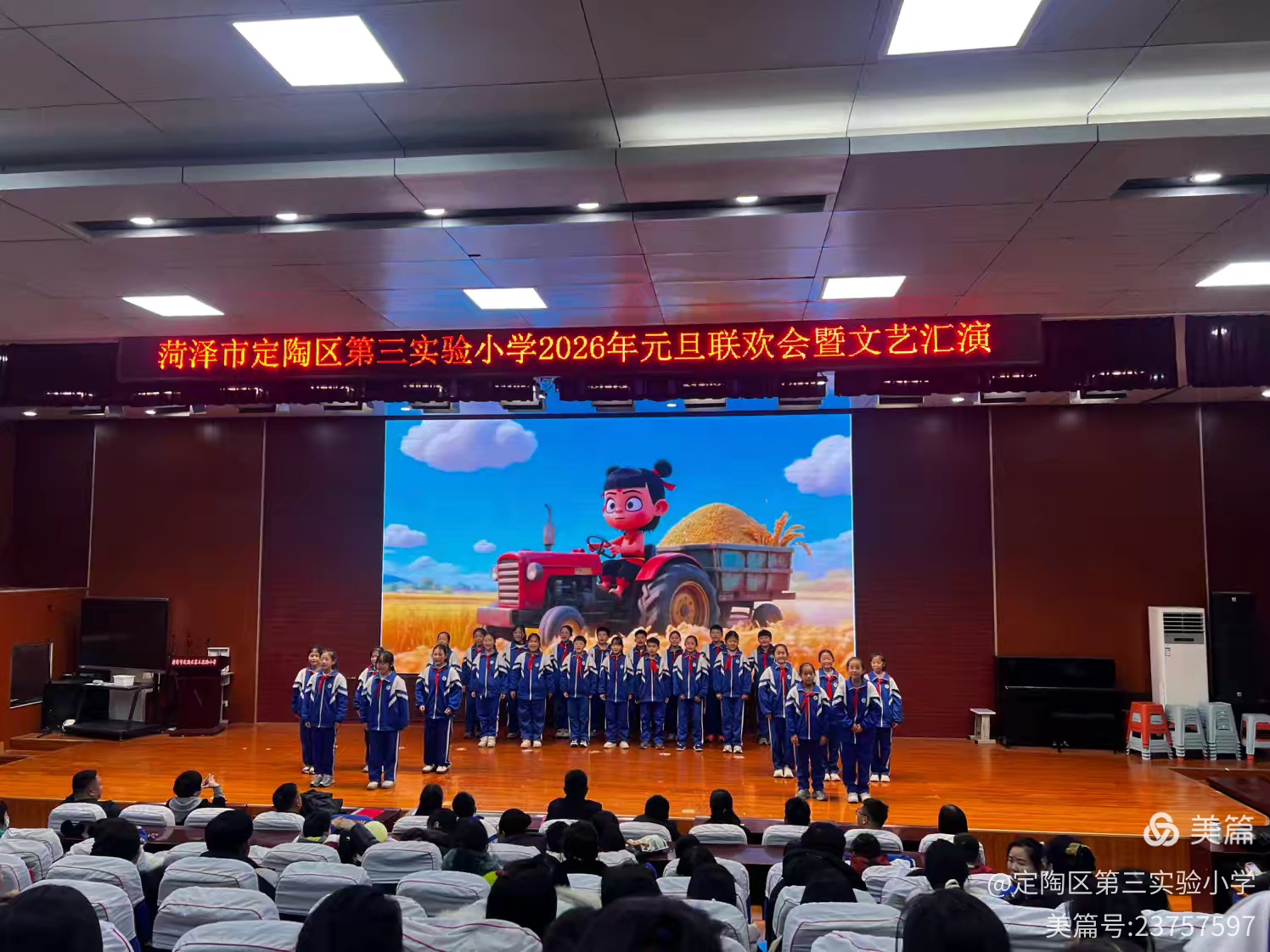 岁末暖冬,欢歌辞旧。2025年12月31日,定陶第三实验小学洋溢着喜庆氛围,“凝心聚力谱新篇,同心逐梦迎新年”2026元旦联欢活动精彩上演,全体师生欢聚一堂,共庆佳节、展望未来。