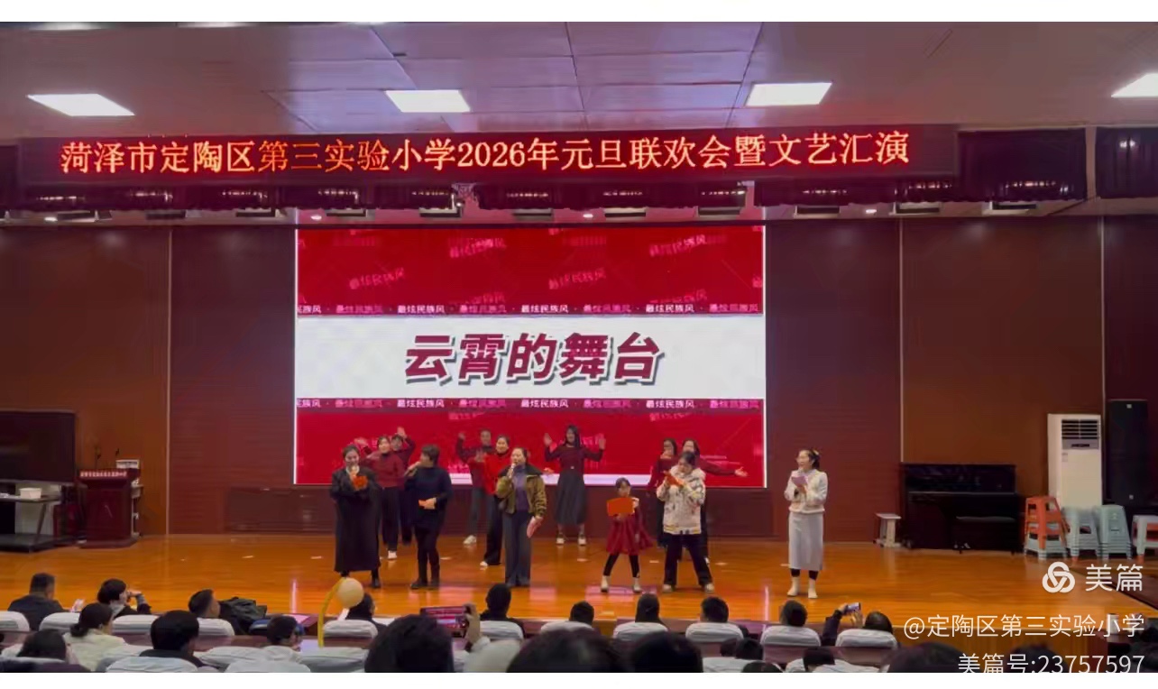 此次联欢不仅是一场视听盛宴,更是师生同心的温情相聚。活动凝聚了校园向心力,展现了师生蓬勃向上的精神风貌,也为新一年的成长之路奏响奋进序曲。全校师生将带着这份温暖与力量,携手迈向充满希望的2026年。(通讯员:菏泽市定陶区第三实验小学)
