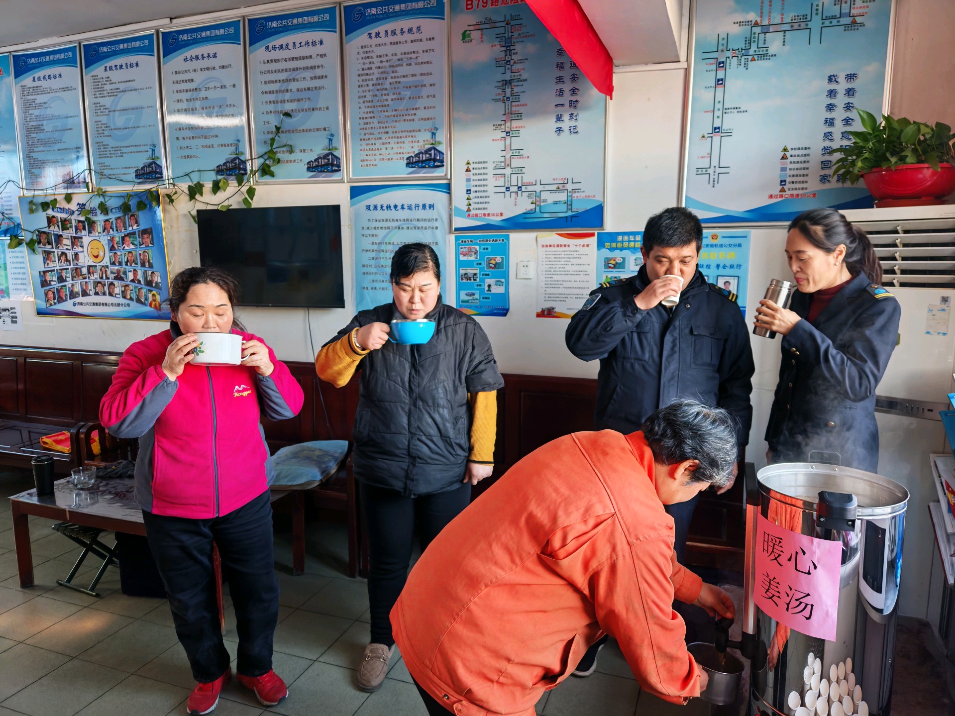 寒冬时节,为切实做好职工关爱工作,济南公交北部分公司八队工会精心熬制了红糖姜水。一碗碗热气腾腾的红糖姜水被送到一线职工手中。这不仅驱散了身体的寒气,更让大家感受到了组织的关怀,暖胃又暖心。随后,这份温暖延伸至车厢之外。济南公交善亮志愿服务队的志愿者们带着红糖姜水走向公交站台,将一杯杯热饮送到候车的市民乘客手中。从服务职工到服务乘客,八队用实际行动传递着公交温情,让这个冬天充满了爱的温度。