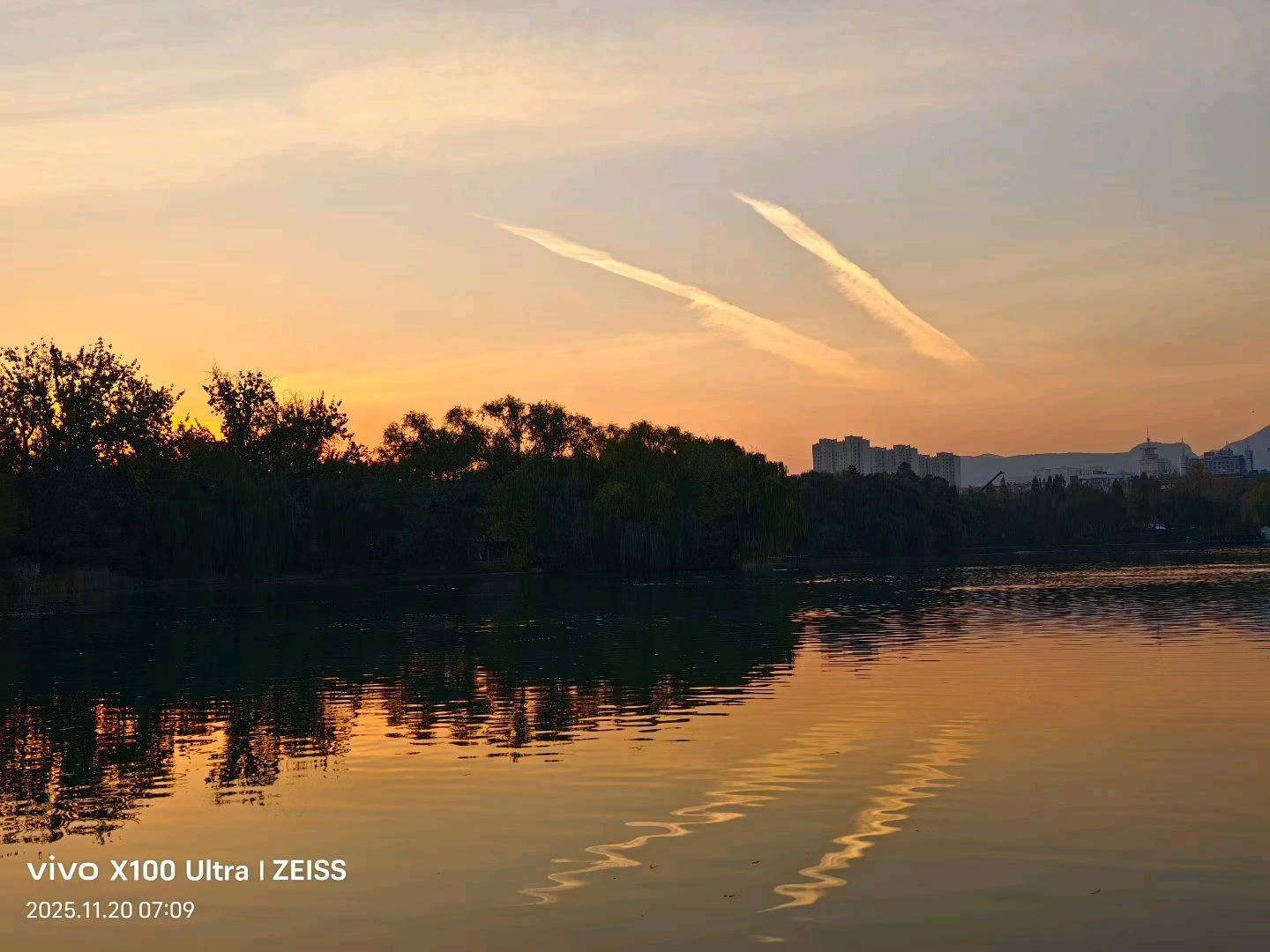 夕阳西下,留下美丽的彩云染红了天际,染红了湖水,染红了城市,大自然相映成趣,美得让人心醉,
