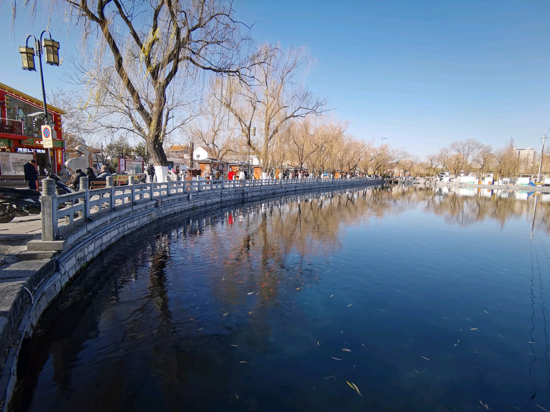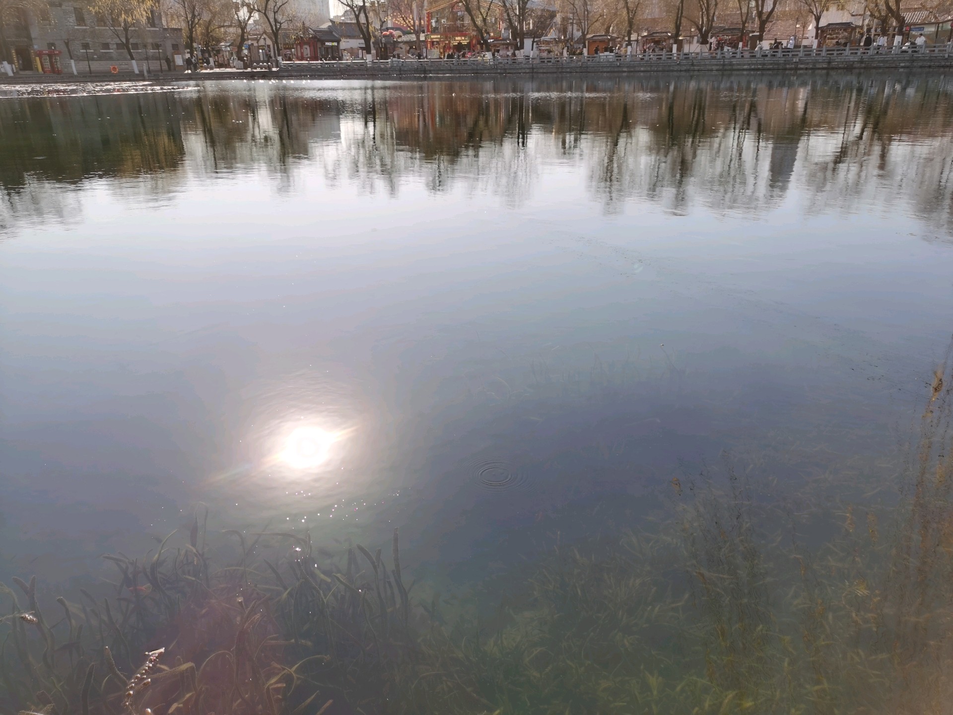 冬日里的百花洲,湖面如一块被北风擦拭过的碧玉,倒映着明清古建筑的飞檐和枯荷的剪影,在清冷的光线下泛着碎银般的光泽。