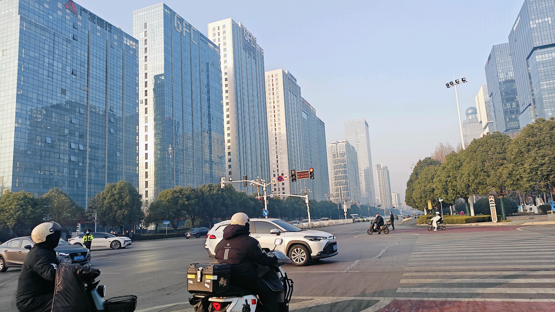 晨光刚把天际染成淡金,街道就醒了。车轮碾过微凉的柏油路,带起细碎的风,混着早点铺飘出的油条香与豆浆甜。自行车铃叮铃晃过,电动车穿梭在车流里,行人脚步匆匆,衣角沾着晨露的湿意。红绿灯交替闪烁,斑马线前,拎着早餐的上班族、送孩子上学的家长、清扫街道的环卫工,汇成一幅流动的烟火画卷,每一声鸣笛、每一句闲谈,都是清晨最鲜活的注脚。