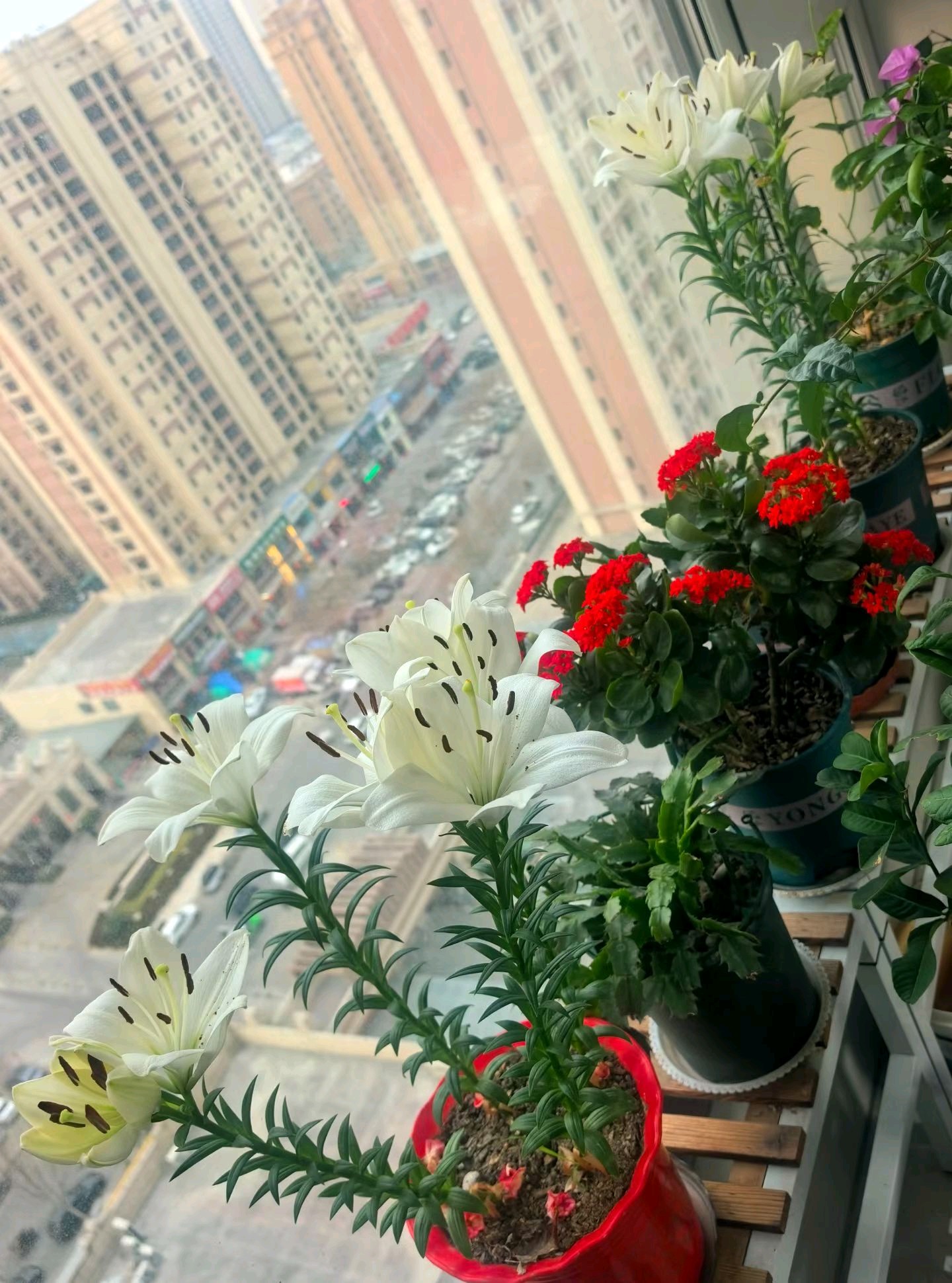 马上就进入四九了,可天气还是温暖如春,今天最高温度达到了15度,最低温度也只有零下1度,走在大街上没有寒冷的感觉,路两旁的冬青还是碧绿碧绿的,花池里的月季花有的含苞,有的怒放,公园里的绿地里的小草一片生机。家里阳台上的花卉长势良好,一天一个样,百合、刺梅、长寿花竞相开放,真是花的世界。