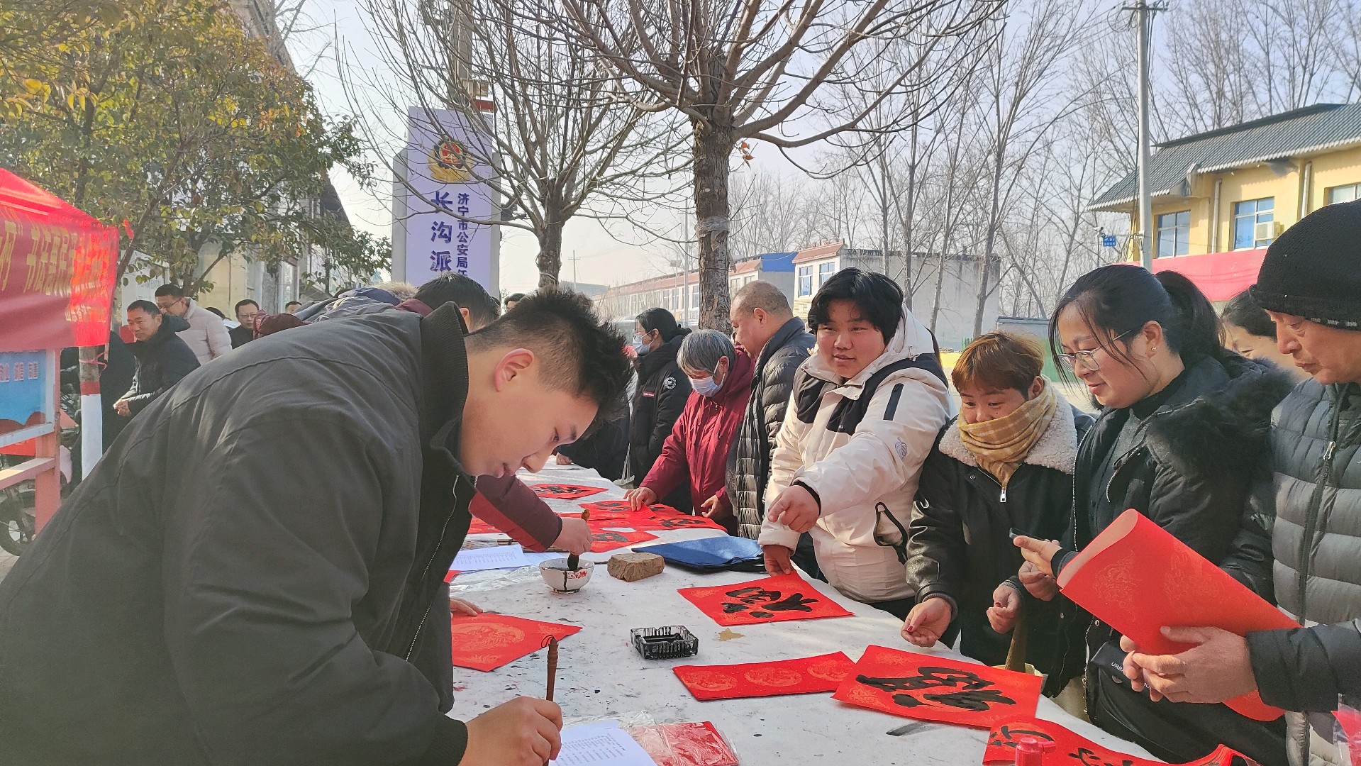 冬日暖阳,街头喜庆。任城区长沟镇举办“万福迎春”书法惠民活动,为人民群众送上了一份新春文化大礼。活动现场,书法家们妙笔生花,将美好的新春祝福化作一幅幅寓意吉祥的春联和一个个饱满有力的“福”字,送入寻常百姓家。