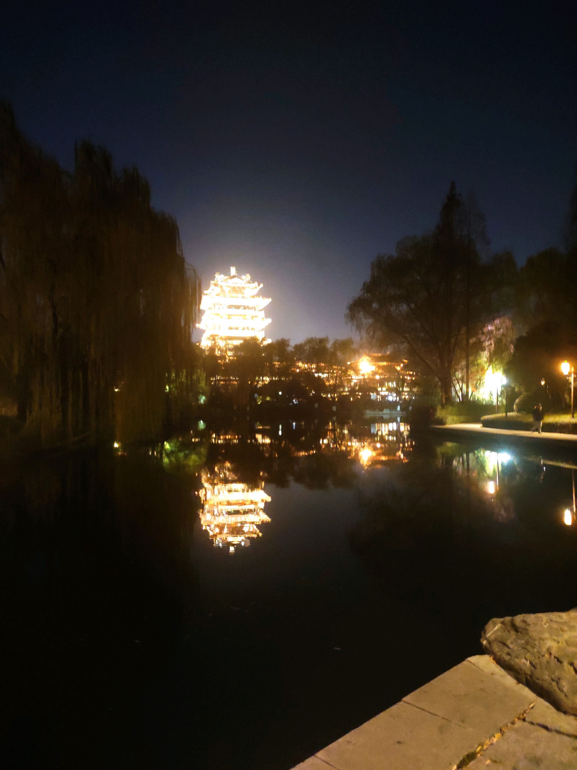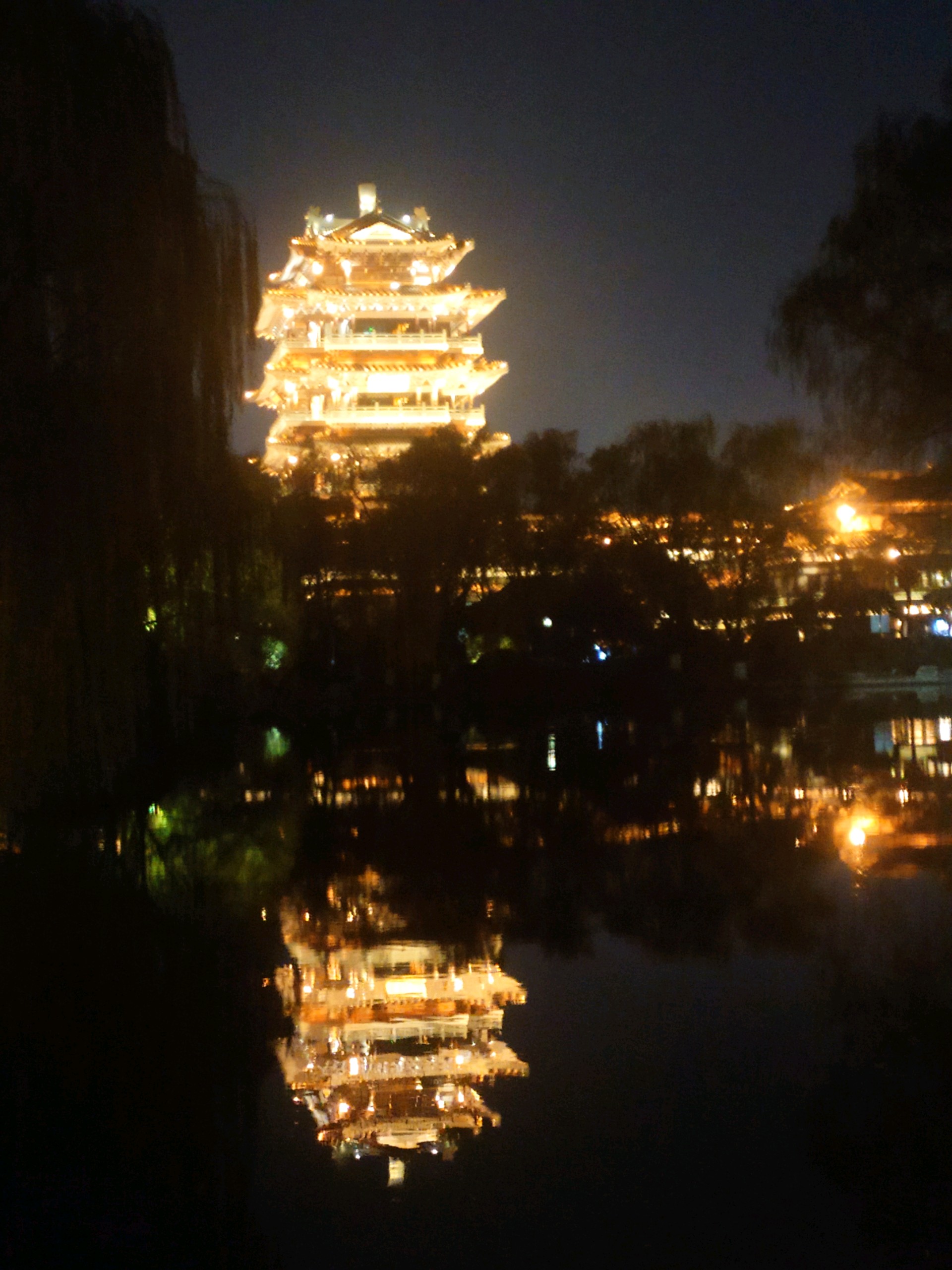 美丽的灯光秀将大明湖装扮的璀璨夺目,美不胜收。