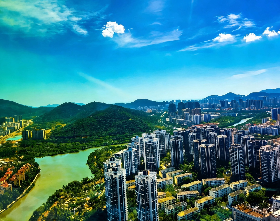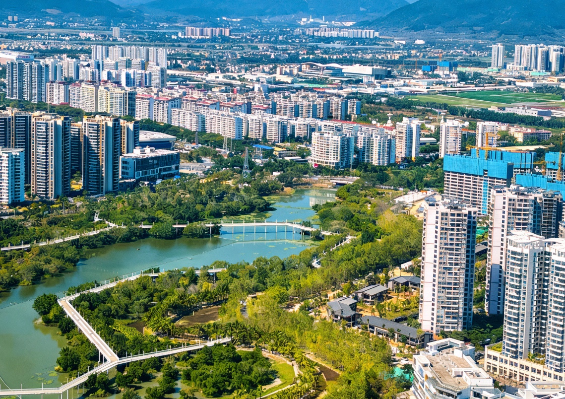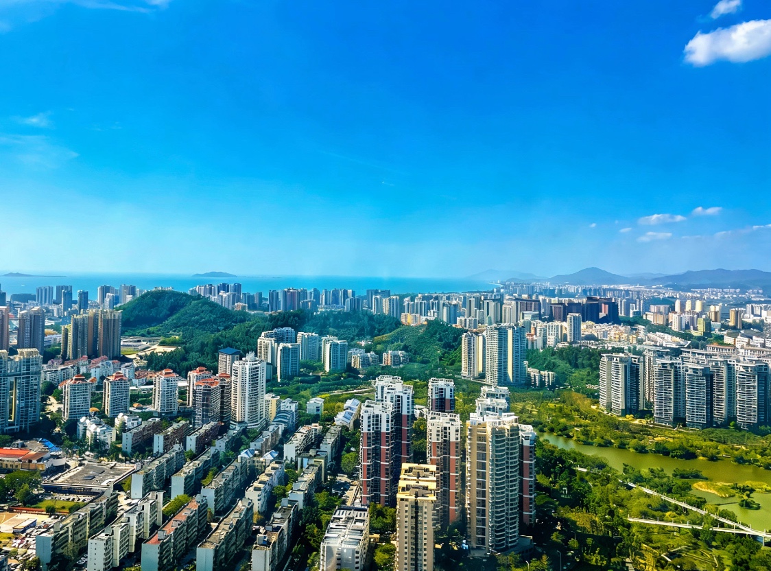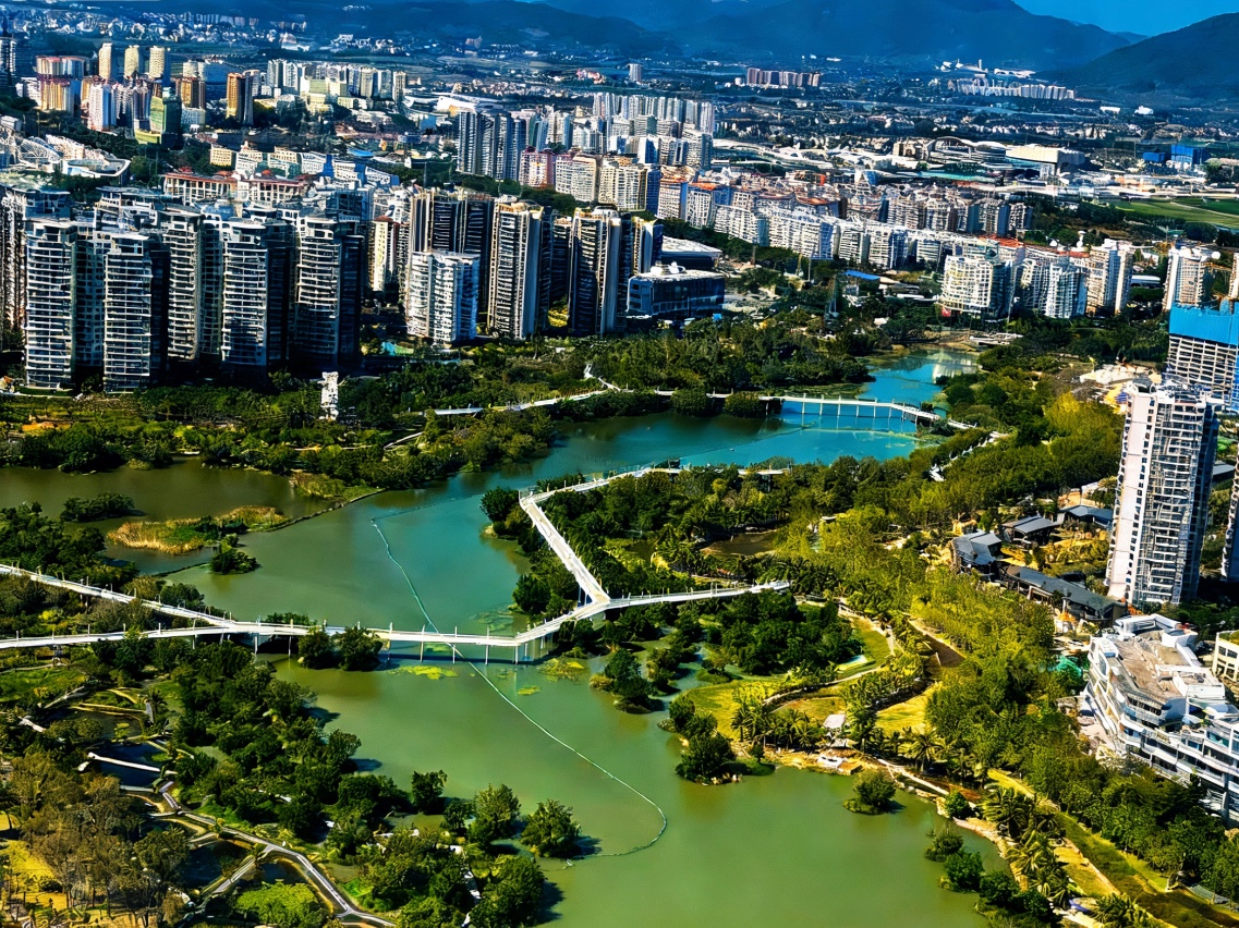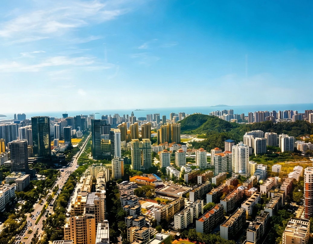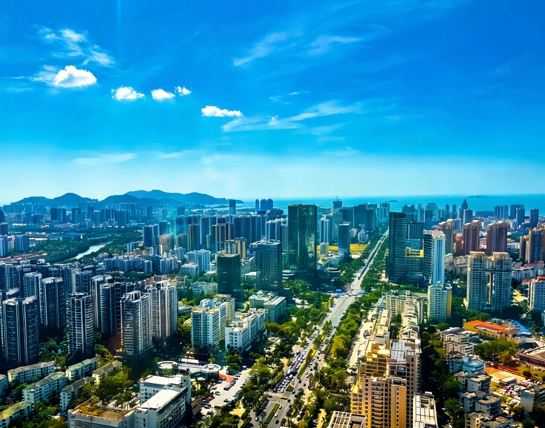 阳光洒在海湾,高楼耸立,绿树成荫,漫步在城市街头,感受生活的美好。