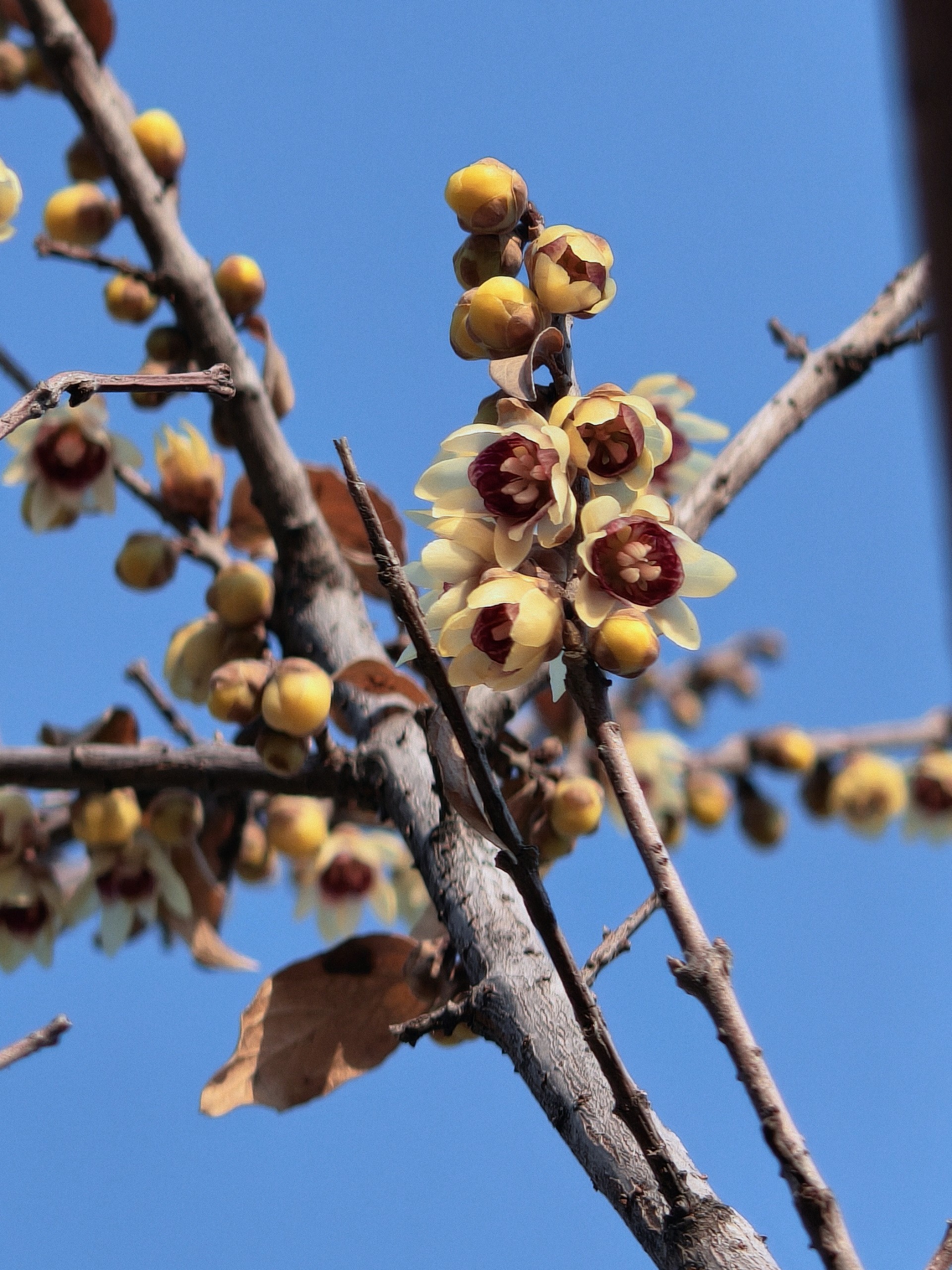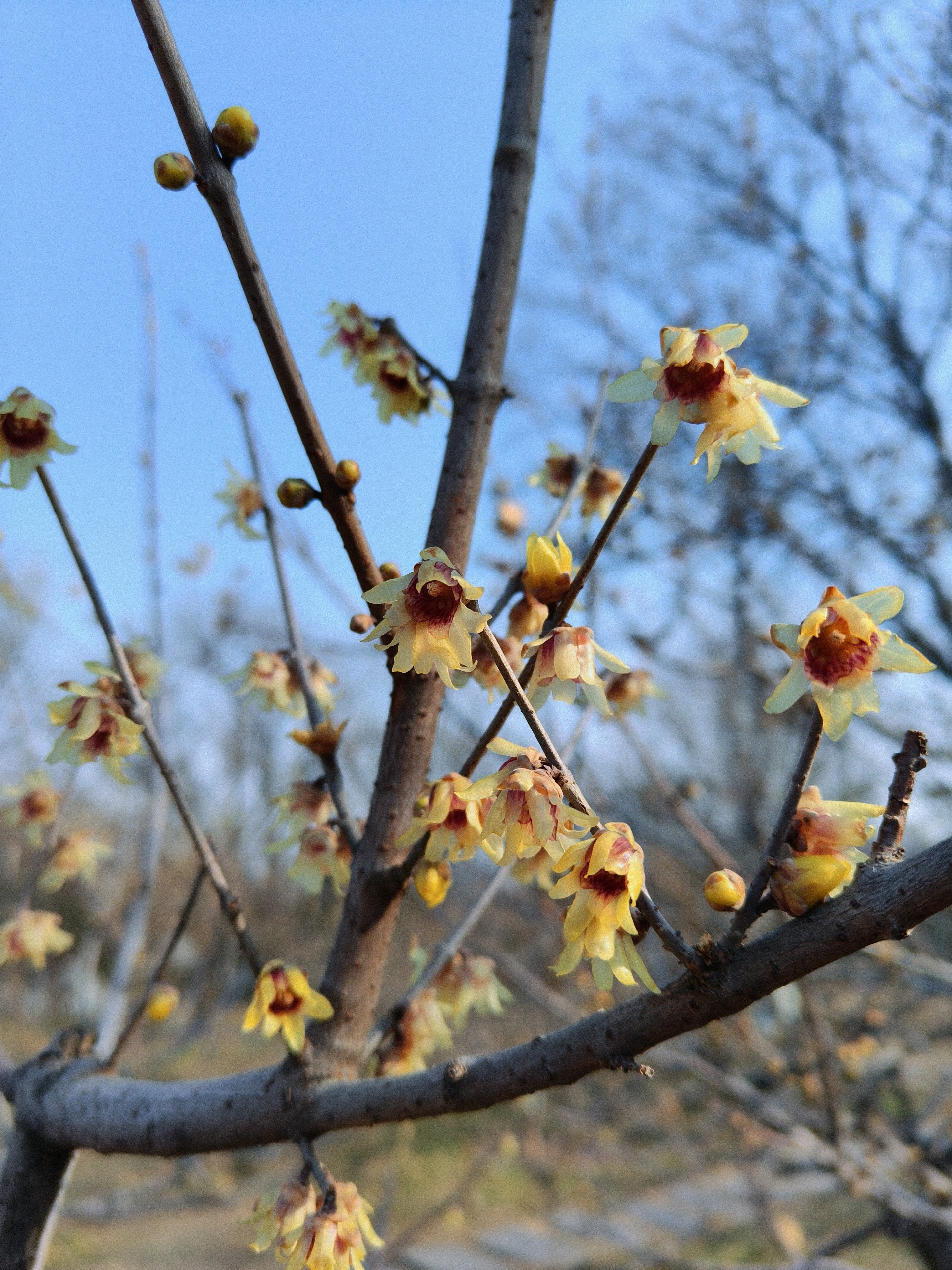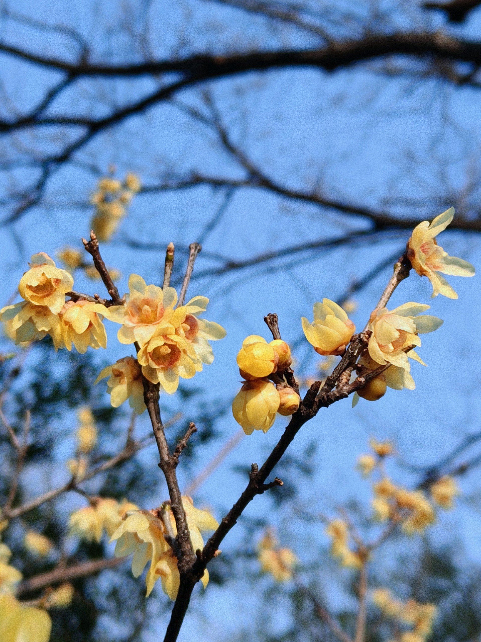 千佛山公园腊梅花开香满园,此时的季节,正是腊梅花开的盛期,赏梅拍花花正当时,在蓝天的映衬下金黄灿灿的小花开满了枝头树梢,拍出来好美!