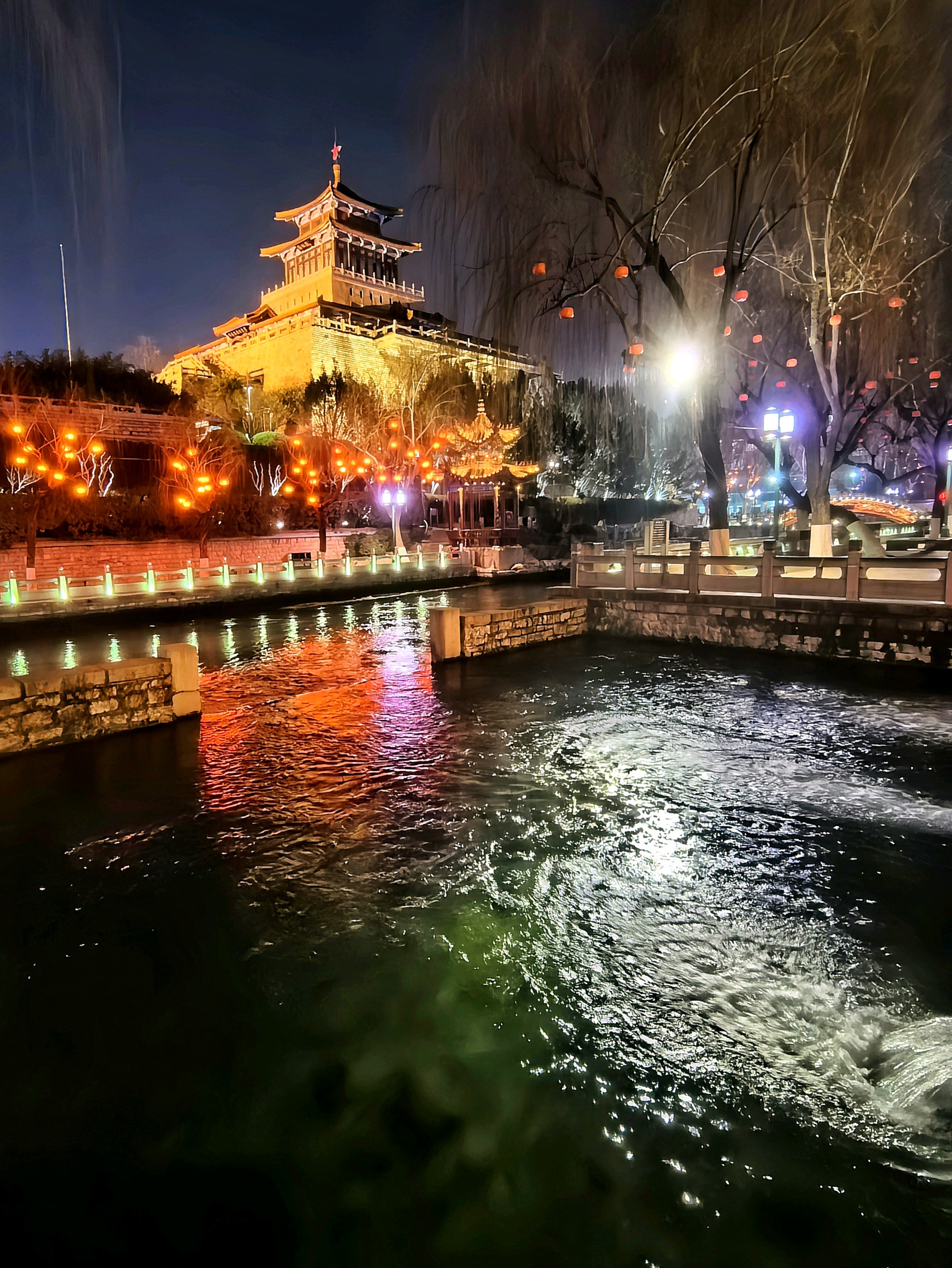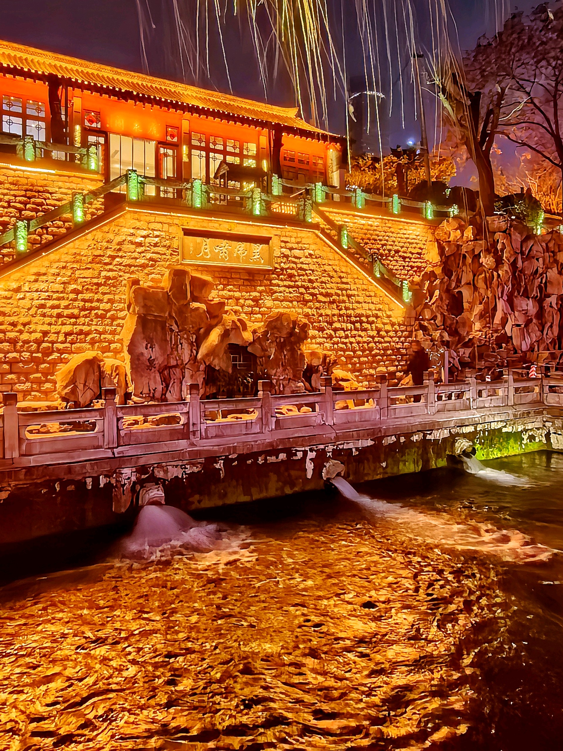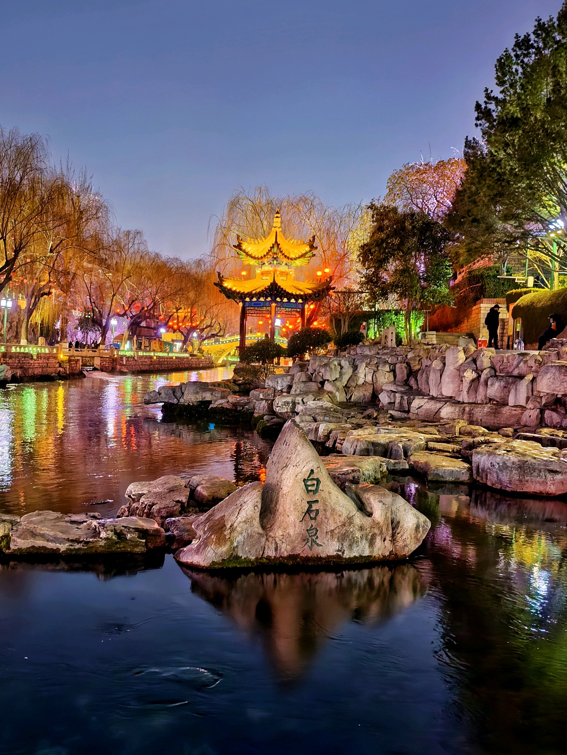 夜落护城河,灯映泉城夜。解放阁的金辉漫过夜空,白石泉的清波漾着琉璃色,琵琶桥在霓虹里晕开一片流光,透明的池底锦鲤还未入睡。冬夜的济南,是泉水织就的绮梦,是灯火酿成的温柔。