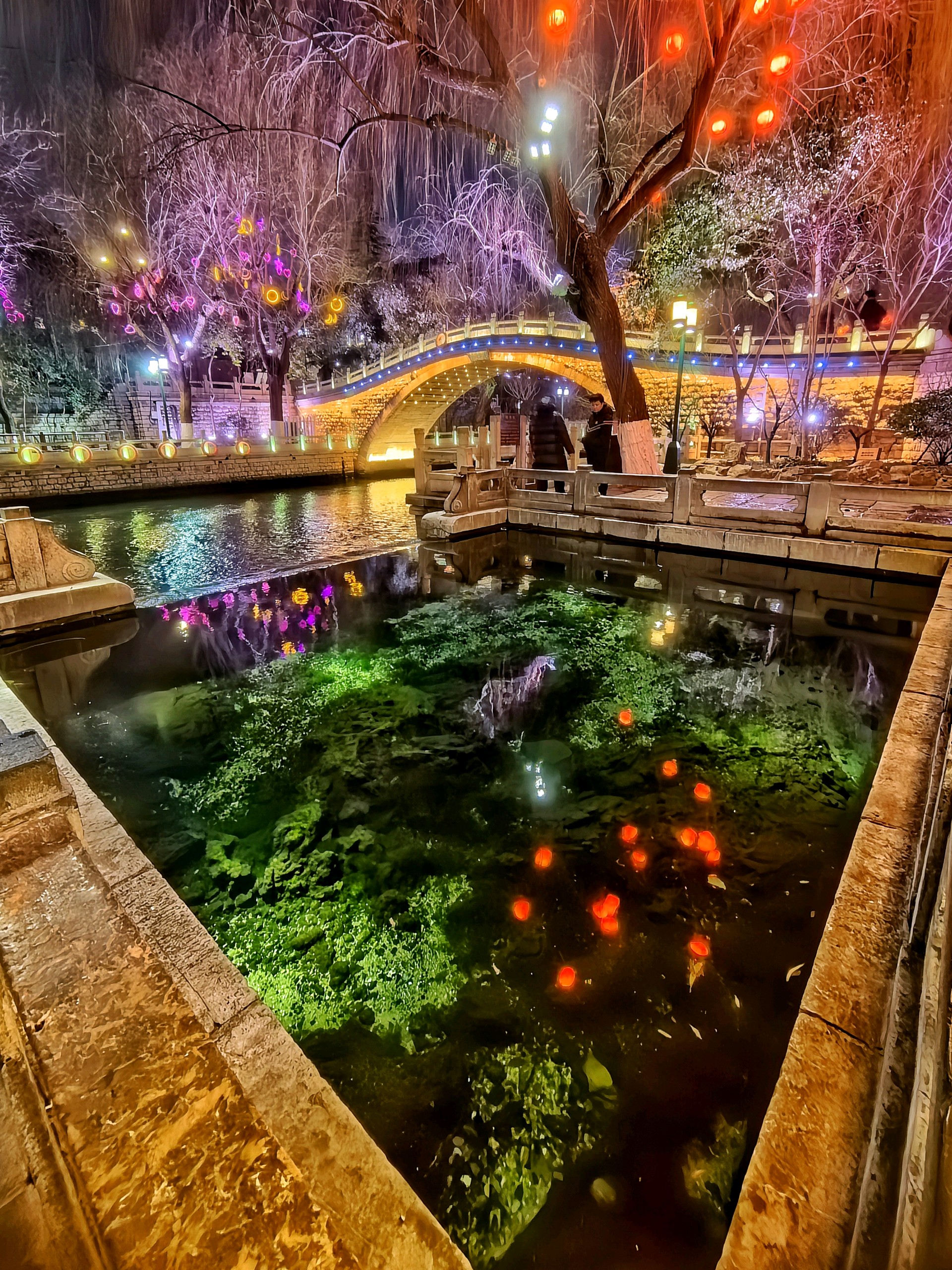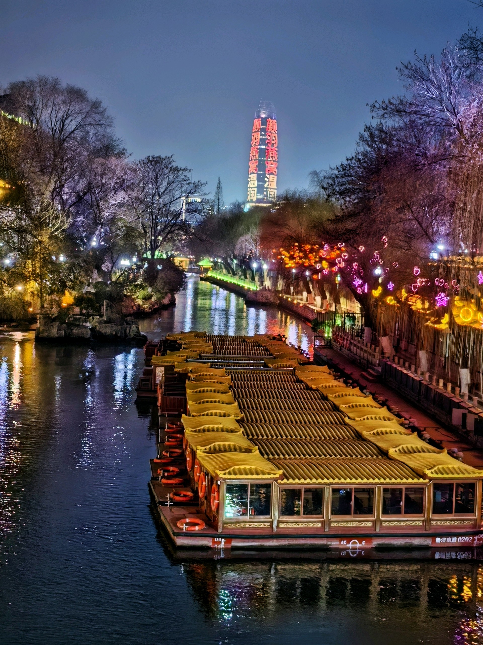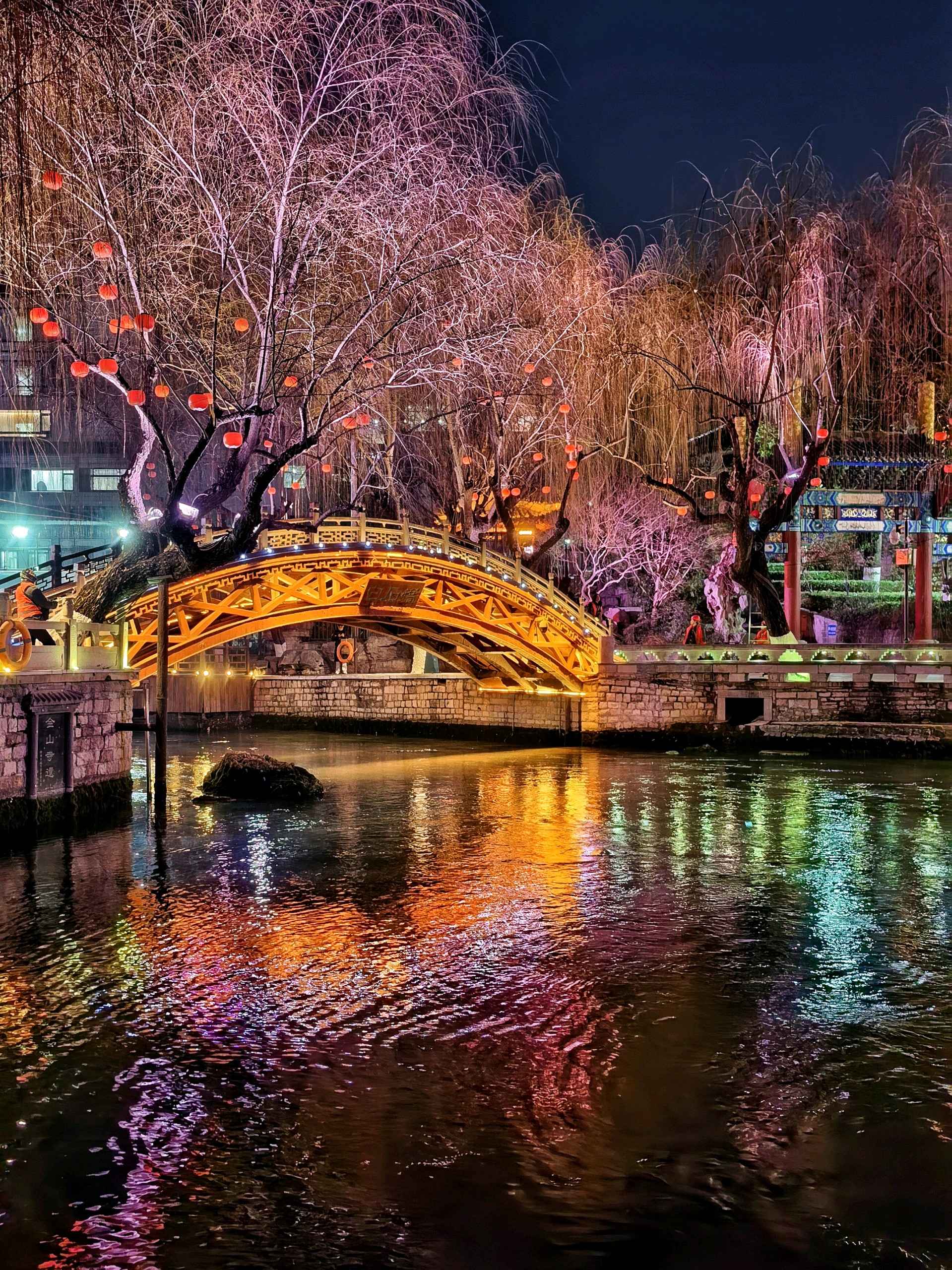 夜落护城河,灯映泉城夜。解放阁的金辉漫过夜空,白石泉的清波漾着琉璃色,琵琶桥在霓虹里晕开一片流光,透明的池底锦鲤还未入睡。冬夜的济南,是泉水织就的绮梦,是灯火酿成的温柔。